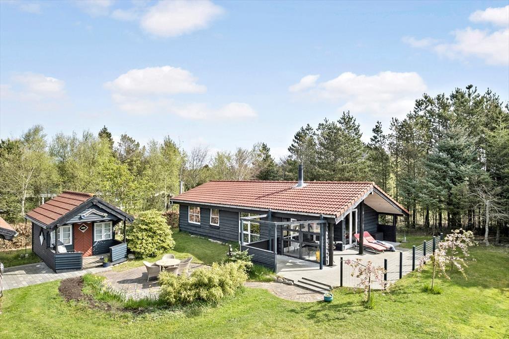Sommerhuset ligger i grønne og rolige omgivelser på en lukket vej, og rundt om bebyggelsen breder den skønneste natur sig. Vester Thorup Klitplantage indbyder til både vandre- og cykelture – uanset om du bare vil ud for at have lidt frisk luft, eller om du vil bruge timevis på at følge stierne, nyde skovens dufte og lytte til fuglesang. Der er for øvrigt både naturlegeplads og hundeskov tæt på sommerhuset, og Vesterhavet kan du også nå til fods. For eksempel kan du begive dig hen til Thorup Strands landingsplads, og hvis du er heldig, står du på stranden, når kutterne kommer ind. Det er nemlig noget af et syn, når de store både trækkes helt op på land med ophalingsspil. Frisk fisk kan du købe hos det lokale fiskehus, som for øvrigt også har et spisehus, hvis du vil have maden serveret.