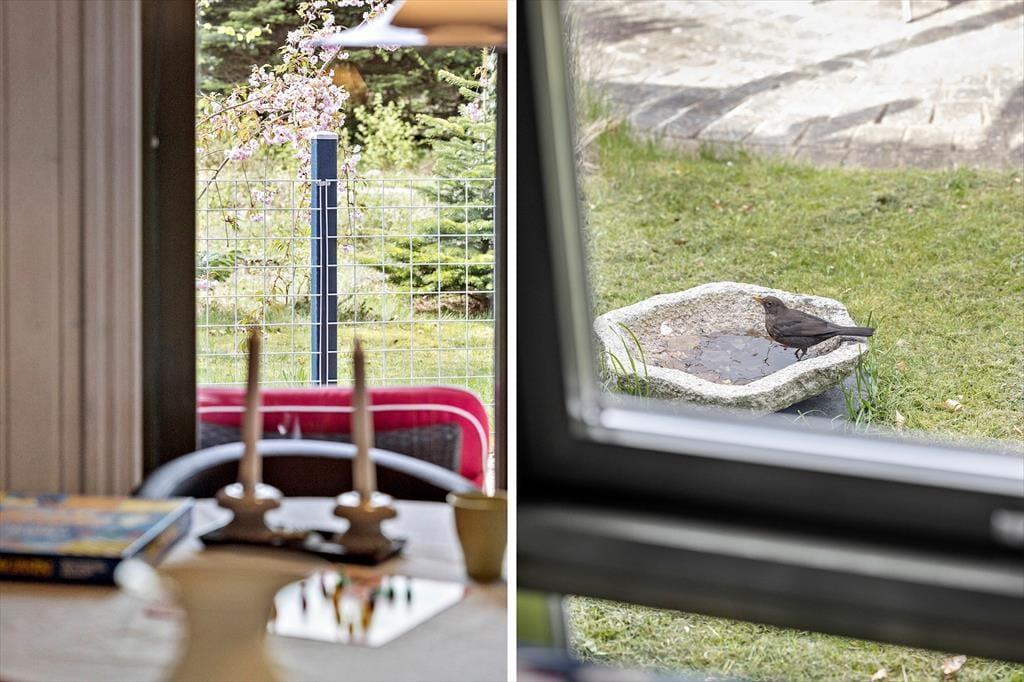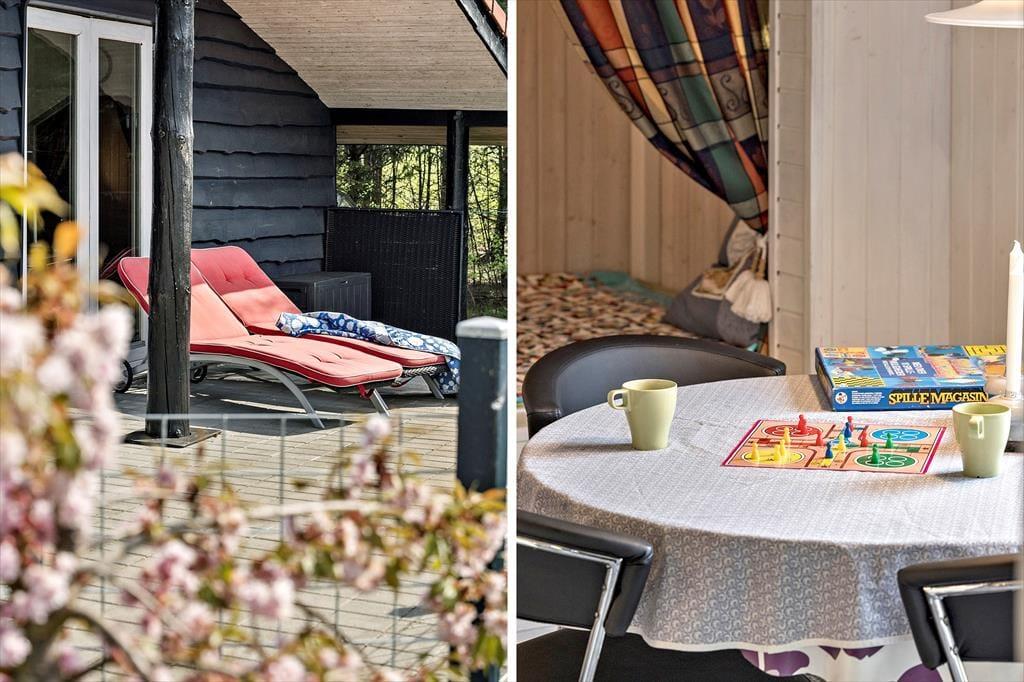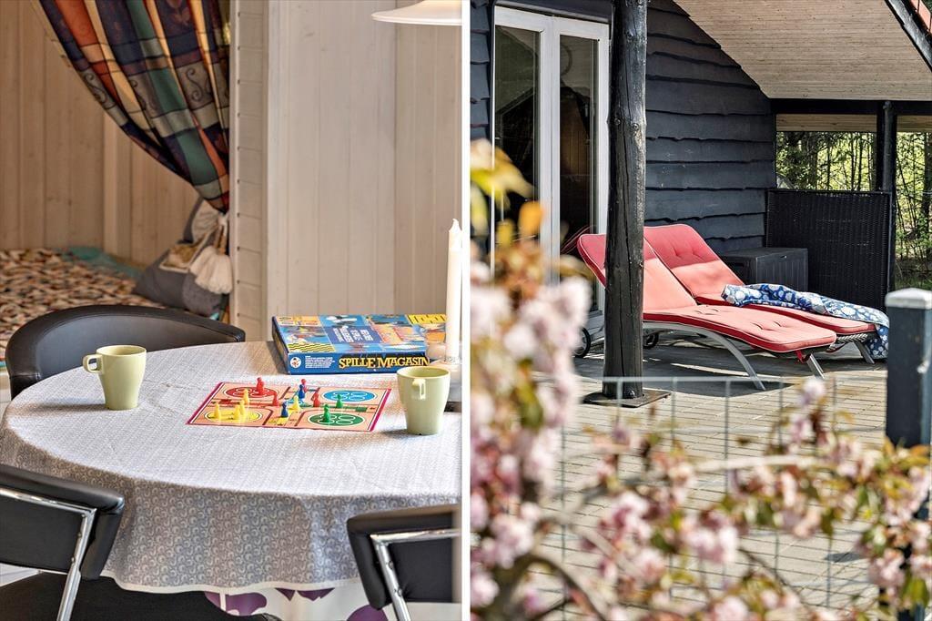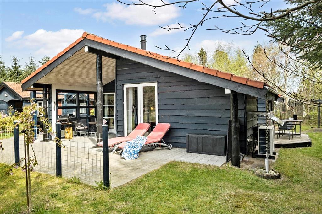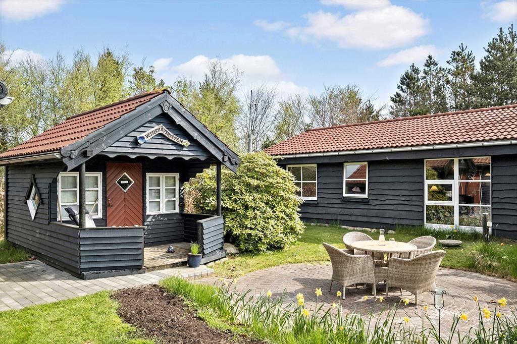 Den 1314 m2 store grund er helt indhegnet, så hvis du har taget hunden med på ferie, kan den fint gå løs og hygge sig sammen med familien i de grønne omgivelser. Rundt omkring i den ugenerede have er der dejlige opholdspladser og solkroge at vælge imellem, inklusiv et overdækket terrasseareal i forlængelse af sommerhuset. Måske er det her, I skal sidde og nyde de lyse aftener, hvis vejret er alt for godt til at gå indenfor, selvom duggen snart falder? Til bilen er der for øvrigt carport, hvis du ikke bare parkerer den i indkørslen.