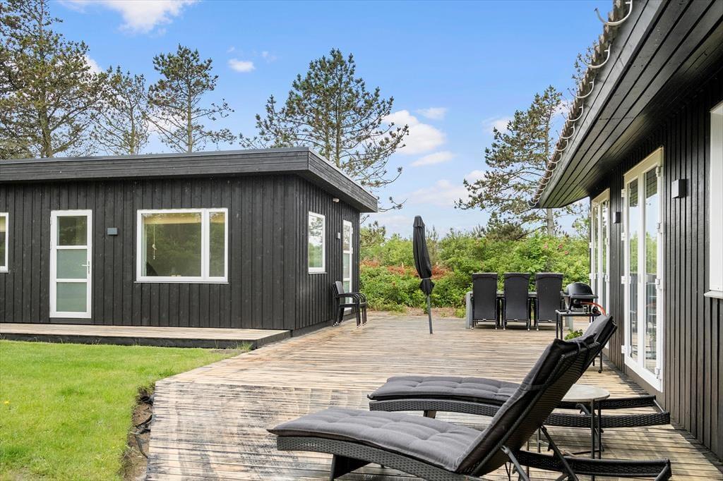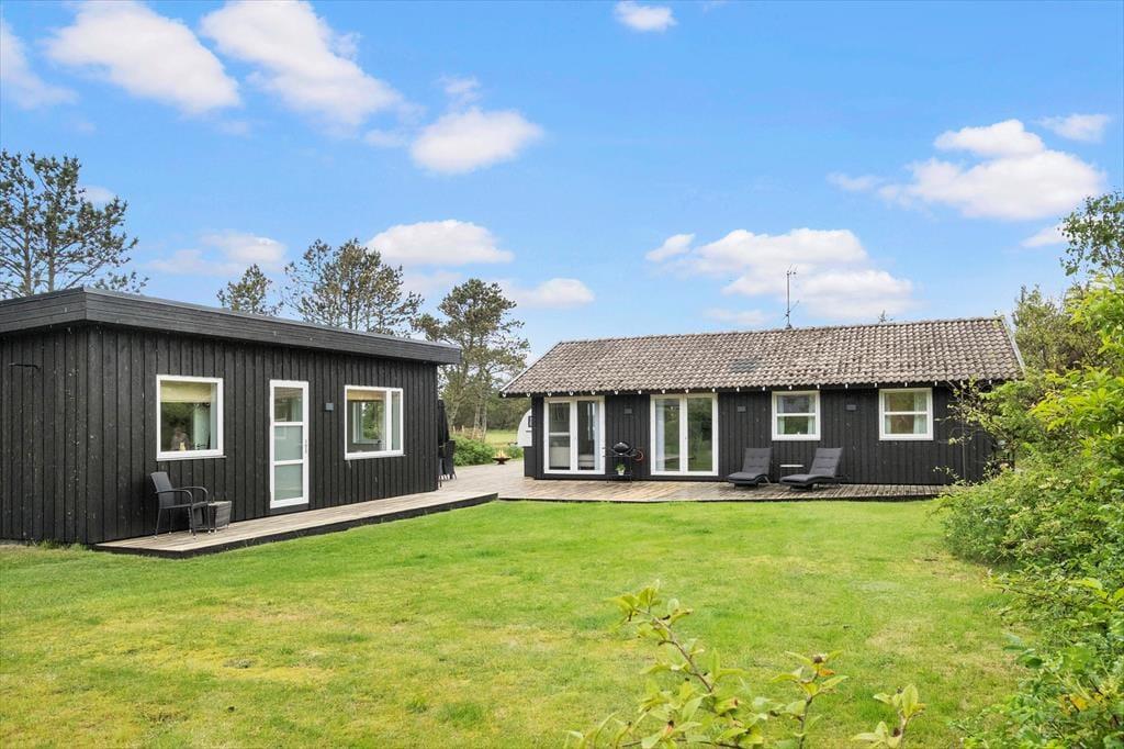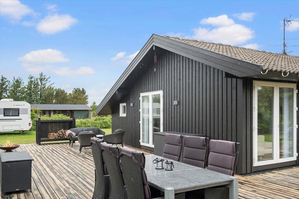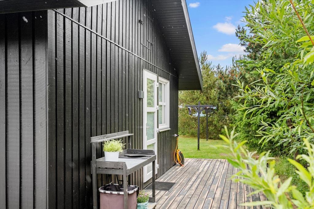 Den store terrasse er en skøn forlængelse af sommerhusets indendørs opholdsmiljø, og når solen skinner over Thorup Strand, kommer du sikkert til at tilbringe mange timer herude i de idylliske omgivelser. Der er flere komfortable havemøbler at vælge imellem, og med bålfad, gasgrill, parasol og deslige er der sørget for, at du kan få alt det bedste ud af sommeren. På græsplænen har familiens legebørn god plads til at boltre sig, og hvis du har hund med på ferien, er der hegn og pæle til rådighed, så du kan lukke et område af til dit firbenede familiemedlem.