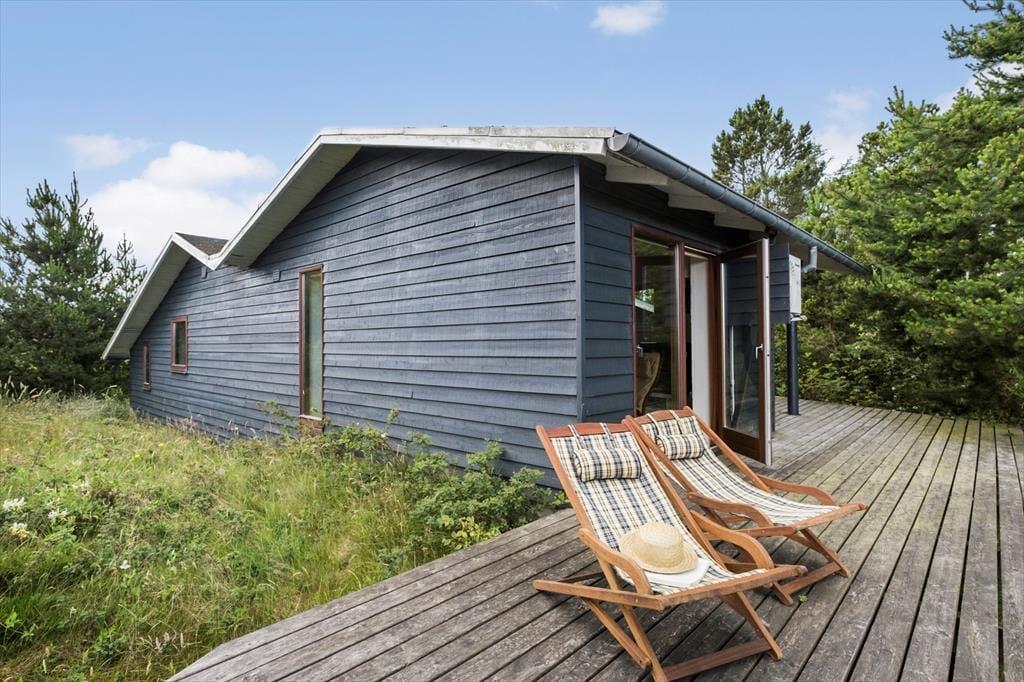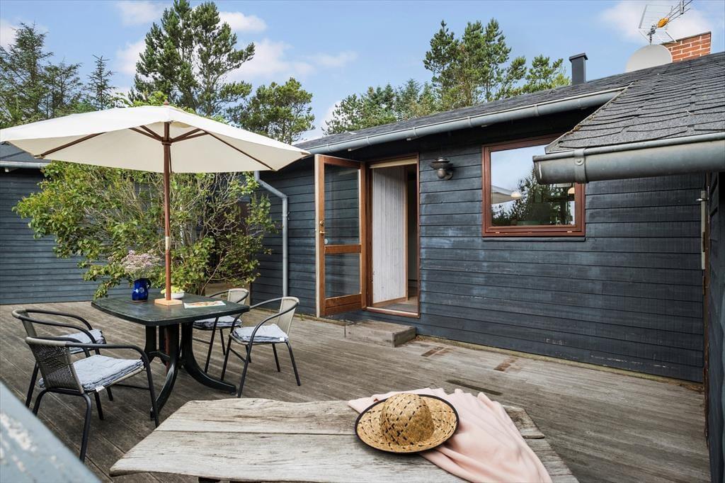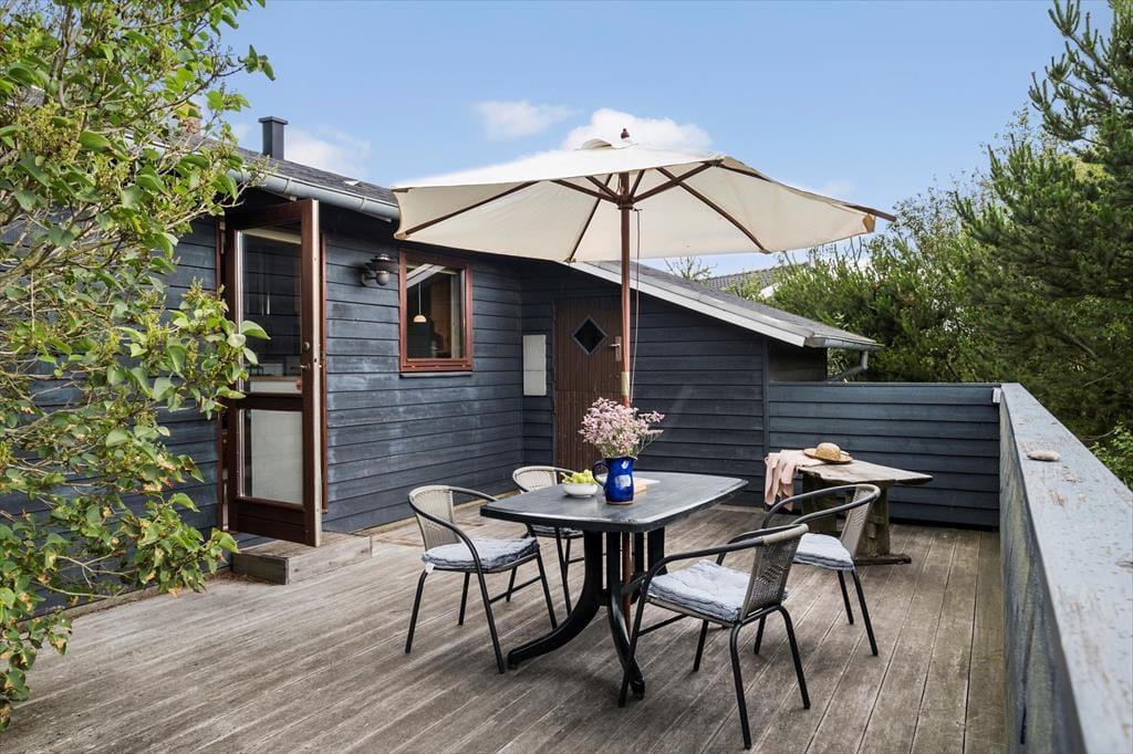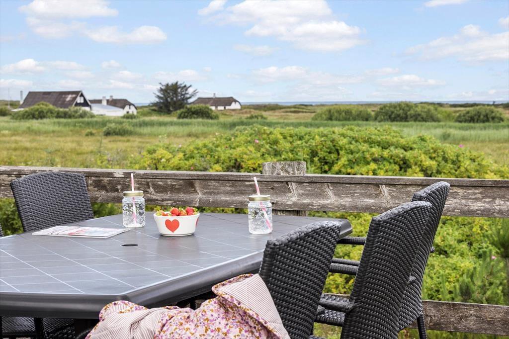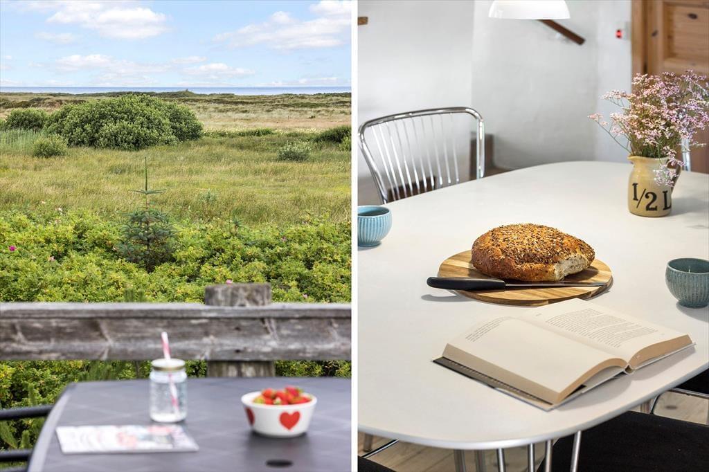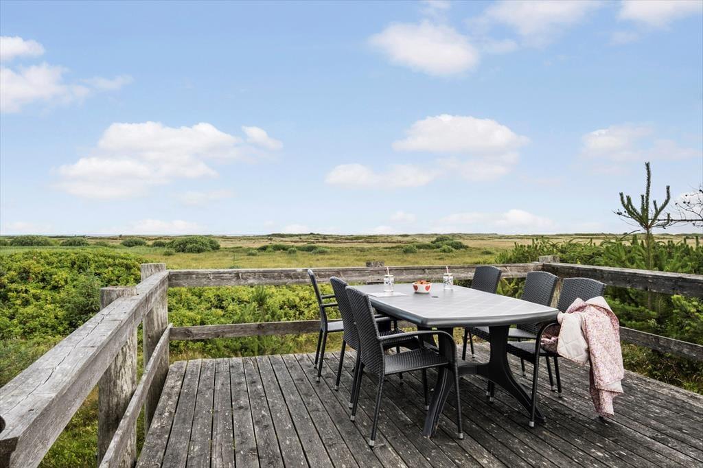 Her kan du virkelig dyrke ferielivet under åben himmel. Huset har flere skønne terrasser, der giver dig mulighed for at finde sol eller læ dagen igennem. Den hævede terrasse er et helt særligt sted – her kan du nyde måltider med udsigt til både havet og det smukke klitlandskab. På den store naturgrund er der plads til at slappe af i liggestole, drikke morgenkaffen i fred og ro eller samle familien til grillhygge. Her er omgivelserne som perfekte til sommeraftener, fuglesang og frisk havluft.