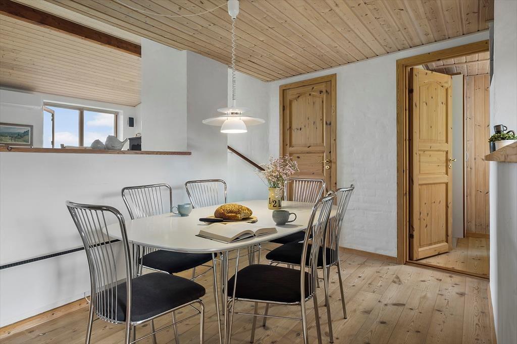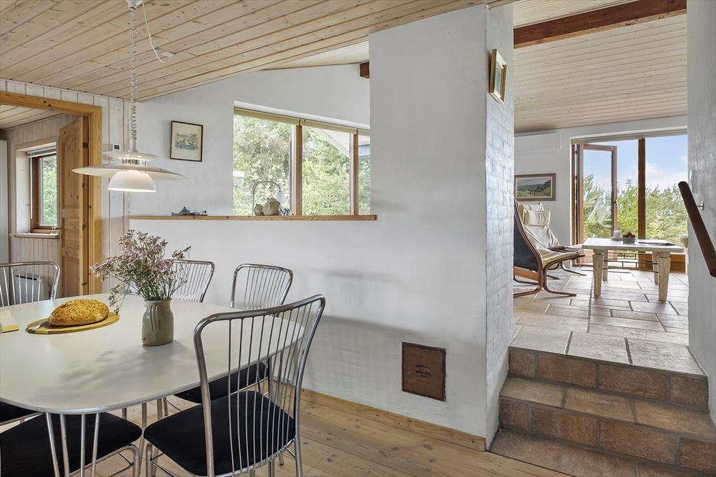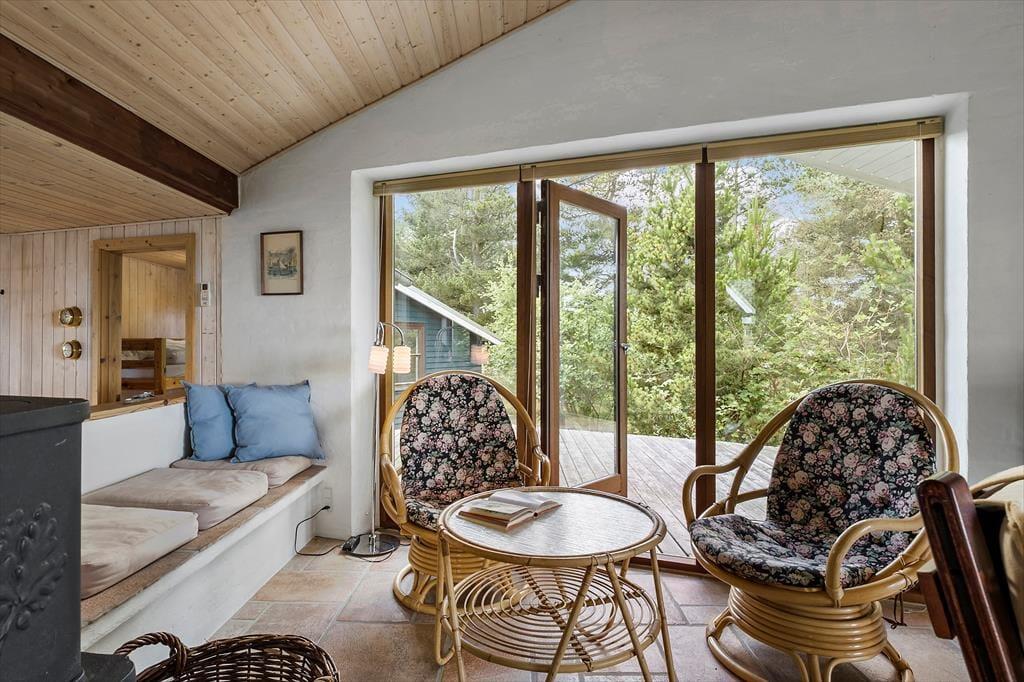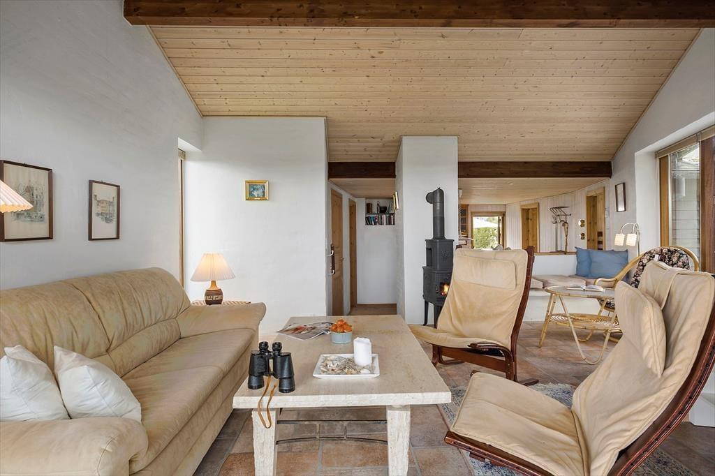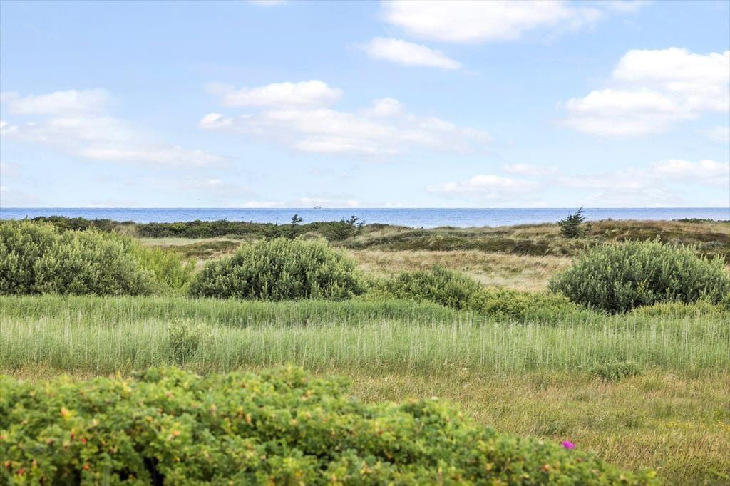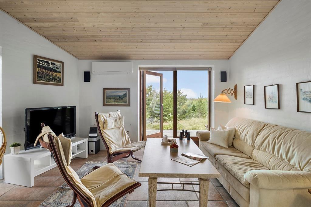 Her kan du virkelig dyrke ferielivet under åben himmel. Huset har flere skønne terrasser, der giver dig mulighed for at finde sol eller læ dagen igennem. Den hævede terrasse er et helt særligt sted – her kan du nyde måltider med udsigt til både havet og det smukke klitlandskab. På den store naturgrund er der plads til at slappe af i liggestole, drikke morgenkaffen i fred og ro eller samle familien til grillhygge. Her er omgivelserne som perfekte til sommeraftener, fuglesang og frisk havluft.