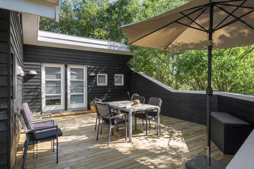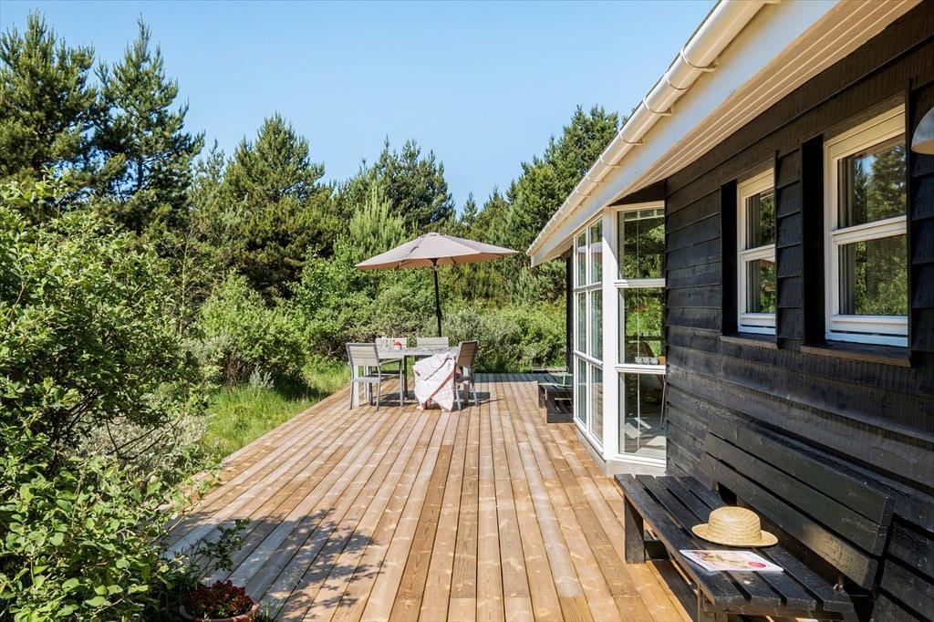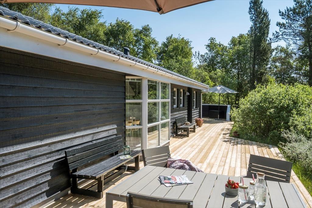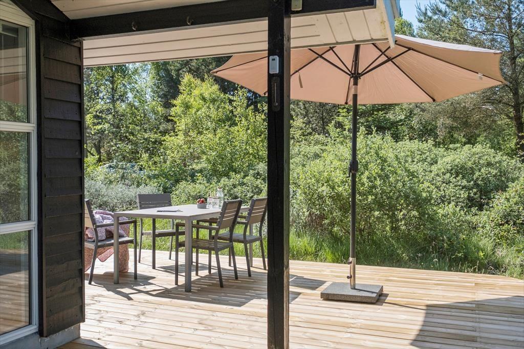 Udendørslivet er en særlig fornøjelse her, hvor husets terrasse og havemøbler indbyder til afslapning under åben himmel. Den rummelige terrasse er det ideelle sted at nyde sommerens lyse aftener med et glas vin eller et godt måltid, mens naturens lyde skaber en fredfyldt atmosfære. I løbet af dagen kan du følge skovens stille liv og fuglenes sang tæt på, og børnene kan boltre sig på grunden, der nærmest bliver en del af plantagen. Omgivelserne skaber en naturskøn ramme om ferien, uanset om du slapper af eller vil udforske området.