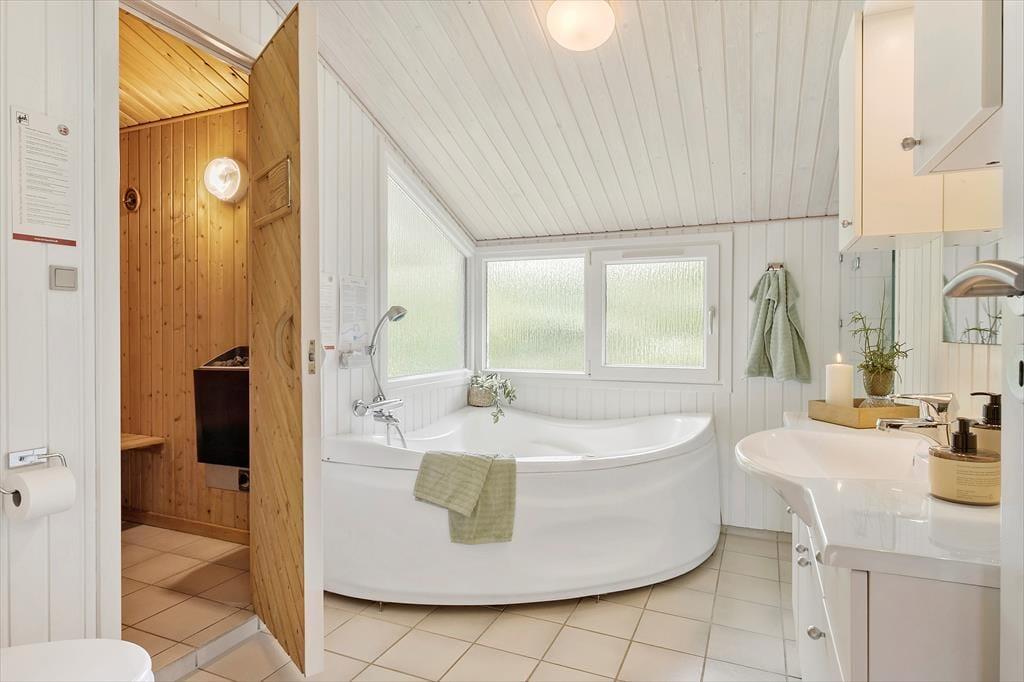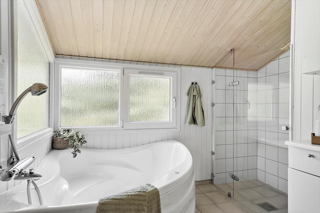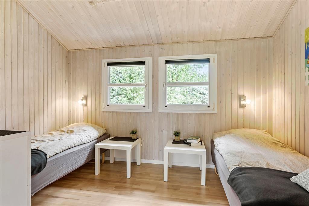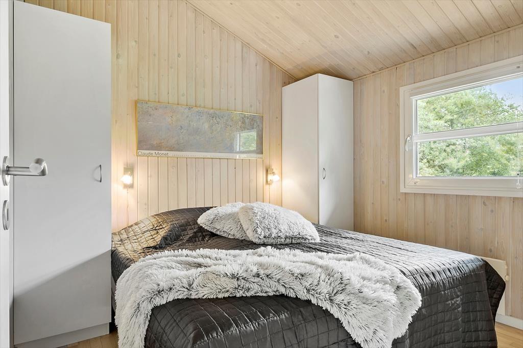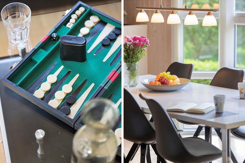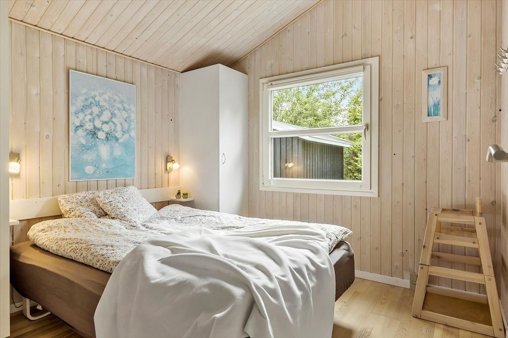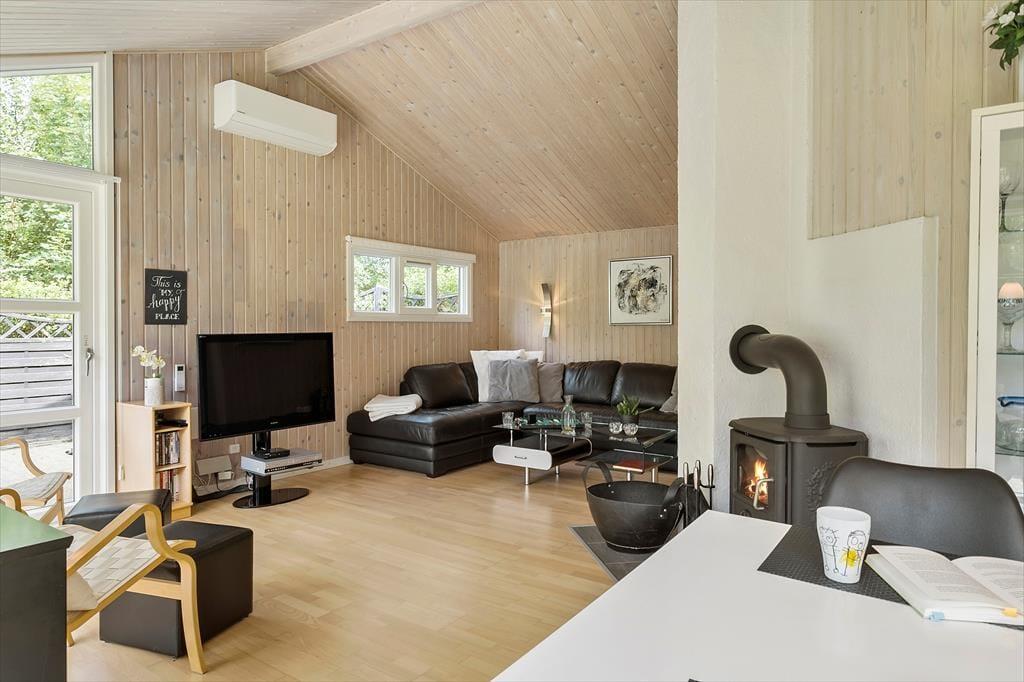 Inden døre kan det tydeligt mærkes, at der er lagt vægt på at skabe en tjekket feriebolig, hvor man både kan slappe af og hygge sig. De sociale stunder kan foregå i opholdsrummet, der er dejligt stort og stemningsfuldt med lyse trælister på væggene, høje vinduespartier, brændeovn og loft til kip. Her i rummet er køkkenet integreret med stuen, så selv når I forbereder aftensmaden, kan I tage del i familiehyggen. Det bløde sofahjørne nær fladskærmen er et herligt sted at slappe af – med mindre I er mere i humør til et spabad og en tur i saunaen på husets lækre badeværelse. Og når det er ved at være sengetid, kan I se frem til en god nats søvn på de tre soveværelser, hvoraf to er indrettet med dobbeltseng og det tredje med to enkeltsenge.