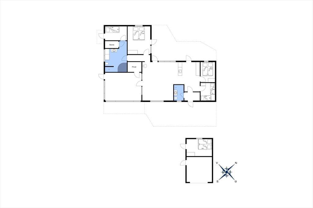 Sommerhuset er omgivet af 3 skønne terrasser, som giver mulighed for altid at finde læ og sol. Terrassen ved indgangen er aflukket. Dette kombineret med den betagende udsigt over landskabet med kig til havet, den store naturgrund med græsplæne samt masser af plads til leg og spil, giver virkelig mulighed for at alle i familien er sikker på en dejlig ferie ved Vesterhavet.