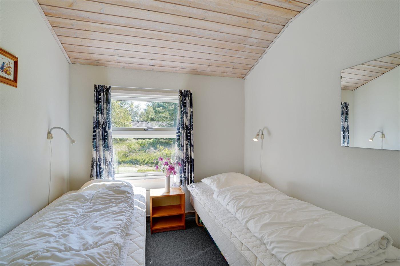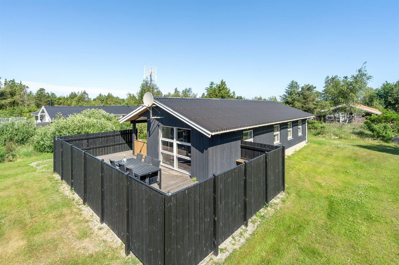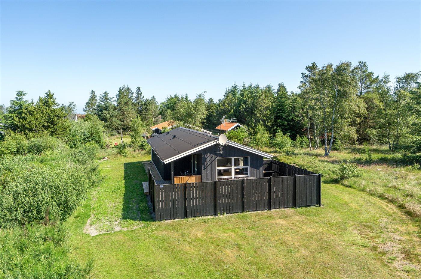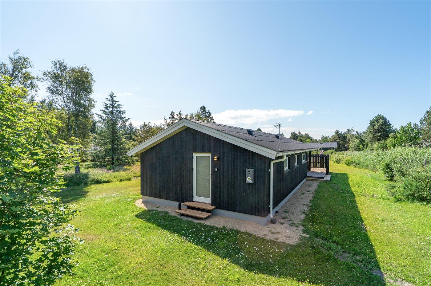 Dette velholdte sommerhus i træ fra 1987 ligger på en naturgrund i nærheden af fiskerlejet Thorup Strand. Åben og overdækket terrasse med havemøbler. Huset er pænt indrettet med ludbehandlede vægge og lofter samt tæpper på gulvene. Badeværelse med gulvvarme og bruseniche. Køkkenet er kombineret med opholdsstuen og bl.a. udstyret med komfur med keramiske kogeplader. Viktualierum med vaskemaskine. Sovepladserne fordeler sig på 3 soveværelser; 1 med dobbeltseng og 2 med hver 2 enkeltsenge. Der er installeret en energibesparende varmepumpe. sommerhuset ligger i et attraktivt område med fredede arealer. Campingplads i nærheden med svømmehal m.m.