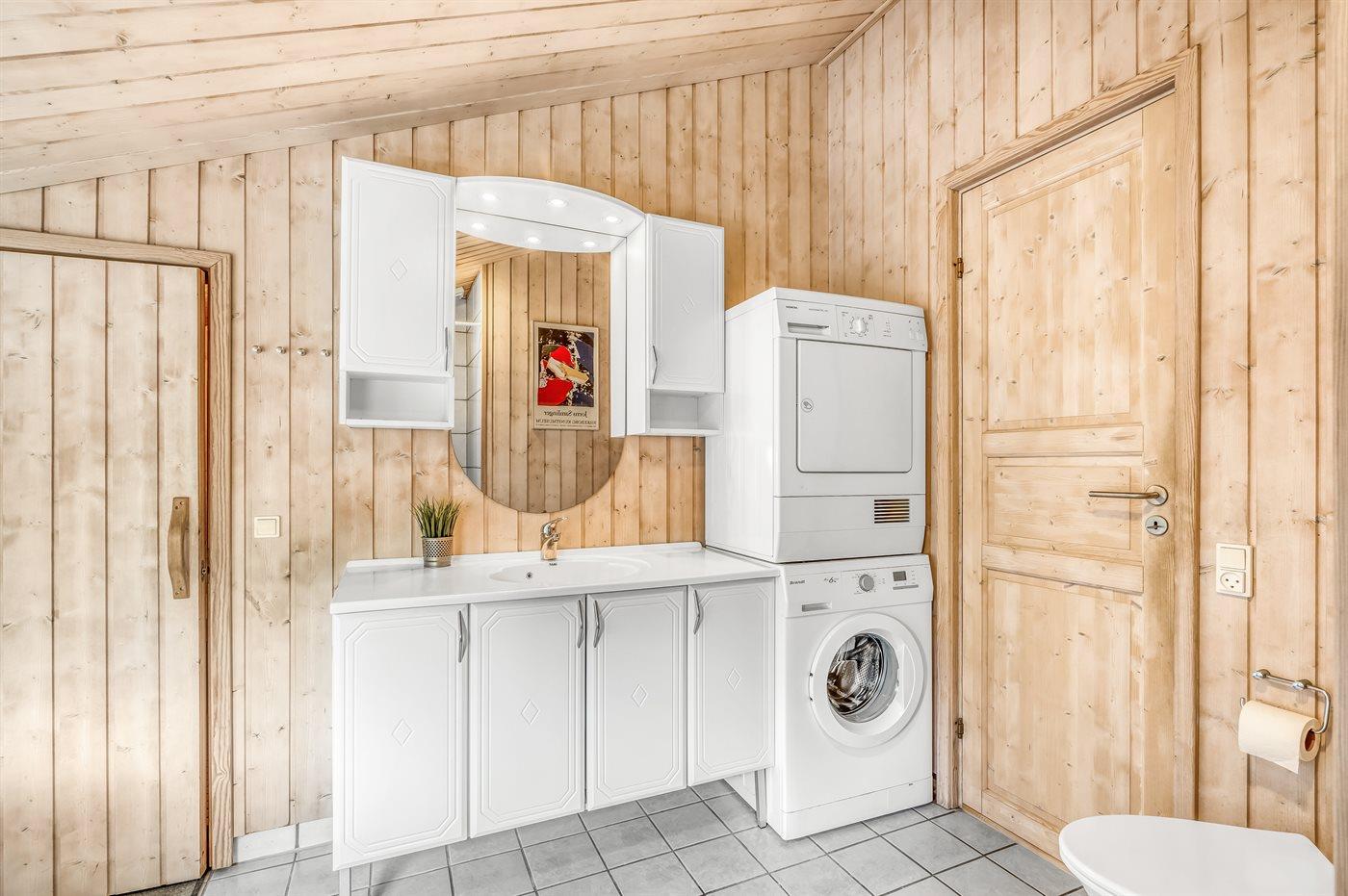 Der er 2 badeværelser med bruseniche og 2 toiletter. Der er gulvvarme på 2 badeværelser. I saunaen er der mulighed for afslapning.