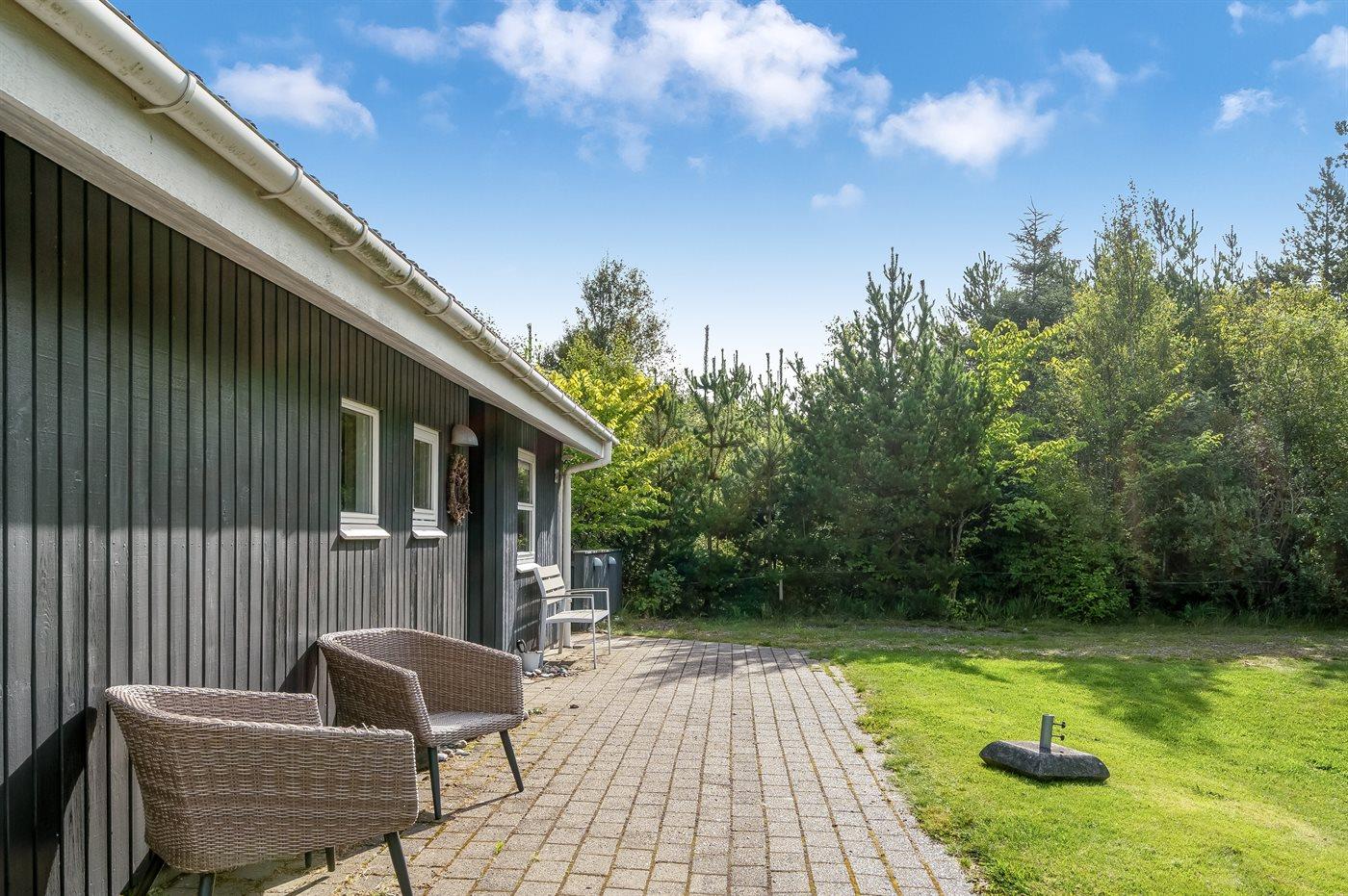 Ferieboligen er beliggende på en 1300 m² stor naturgrund. Der er 800 m til havet. Nærmeste forretning er beliggende i en afstand af 2000 m. Der er en golfbane i en afstand af 10000 m. Til ferieboligen hører 35 m² terrasseareal. Desuden er der 6 m² overdækket terrasse. Der er redskabsrum. Gynge. Sandkasse. Grill til rådighed. Der er installeret stik til opladning af elbil. Type 2 stik. Med 11 kW ladeeffekt. Parkering ved ferieboligen.