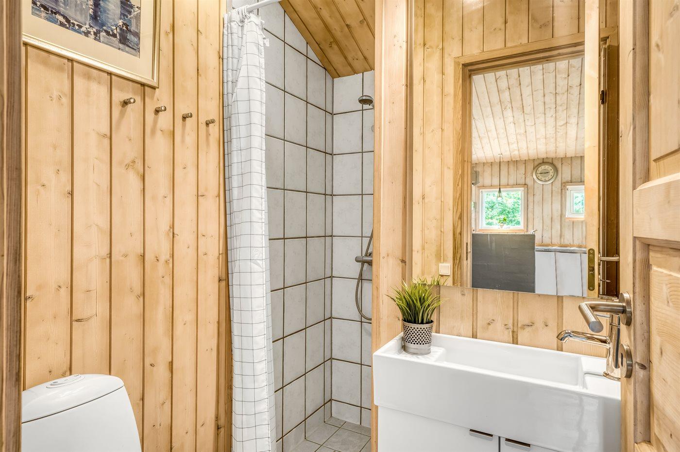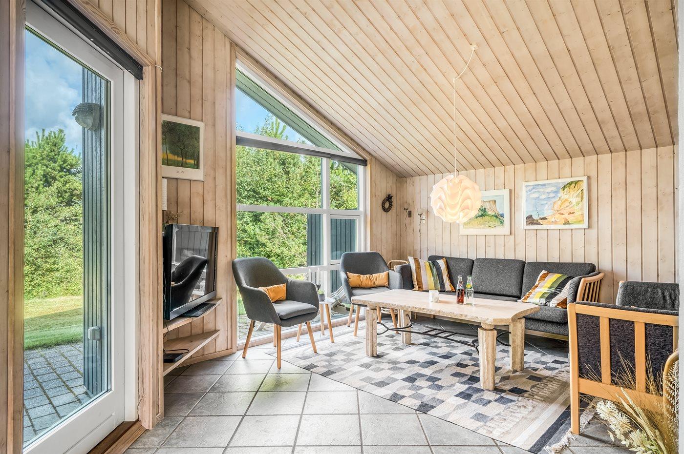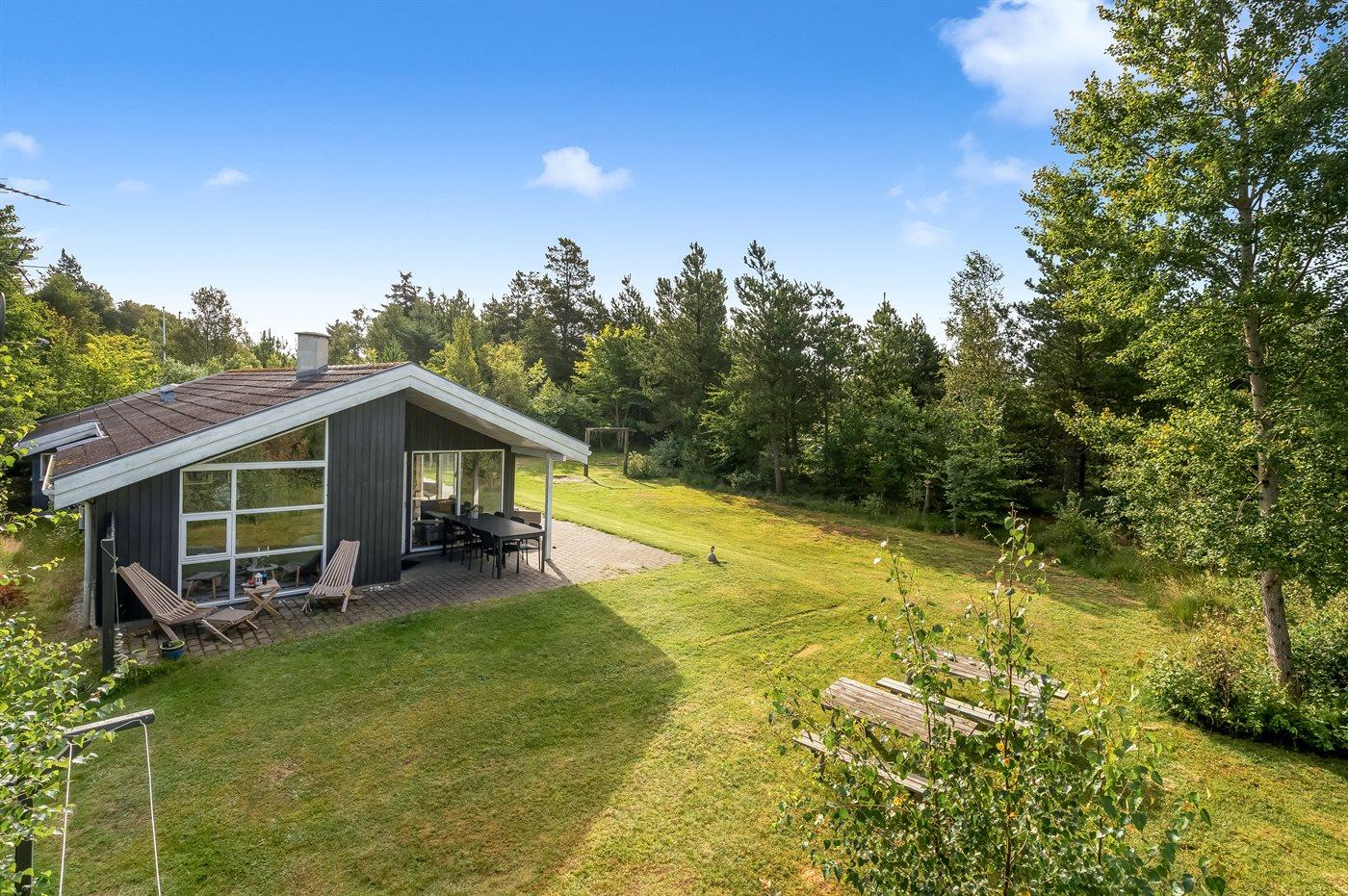Et stort og flot sommerhus beliggende på en skov-/naturgrund i rolige og ugenerte omgivelser. Til huset hører såvel åbent som overdækket terrasseareal med havemøbler – hvor man kan nyde timer i det fri med en god bog eller en kryds og tværs. Der findes et redskabsrum til opbevaring af cykler o.l.