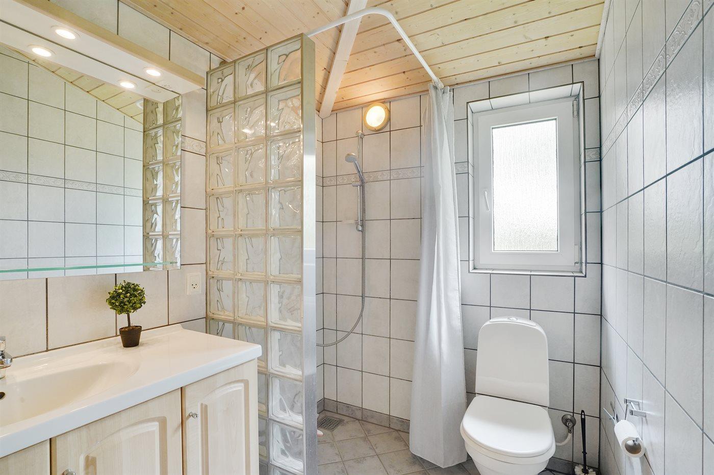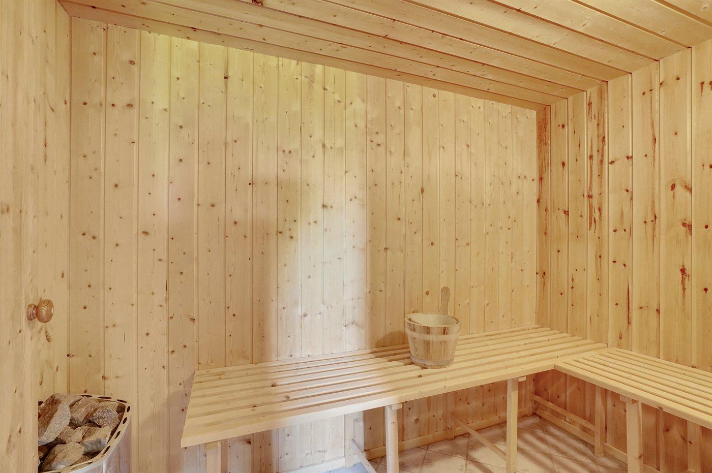 Der er 2 badeværelser med bruseniche og 2 toiletter. Der er gulvvarme på 2 badeværelser. I saunaen er der mulighed for afslapning.