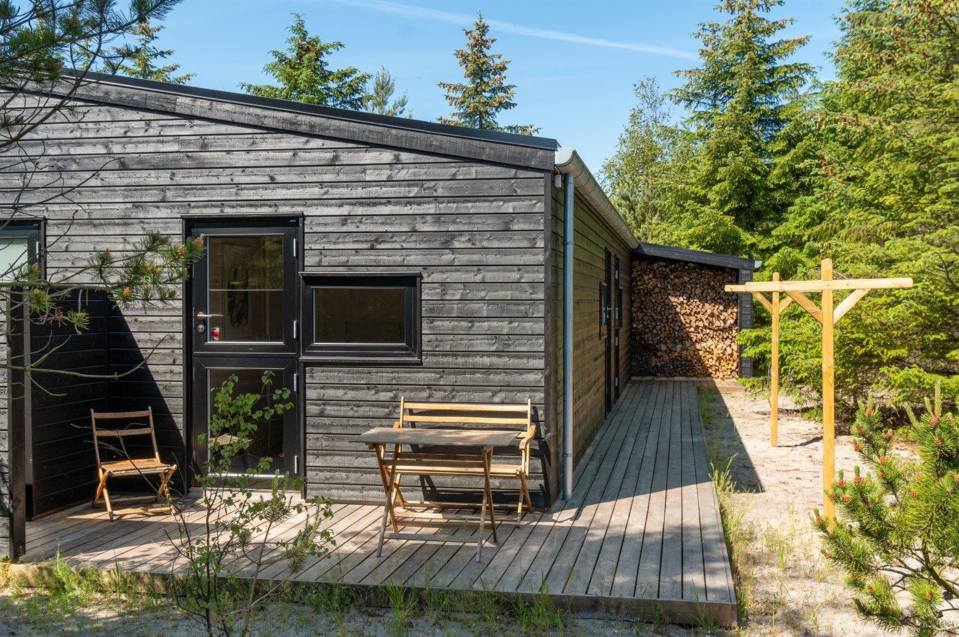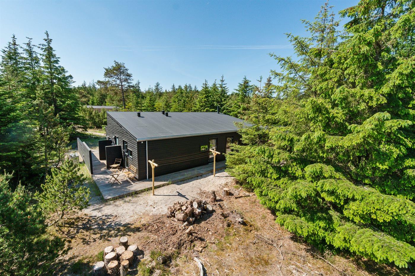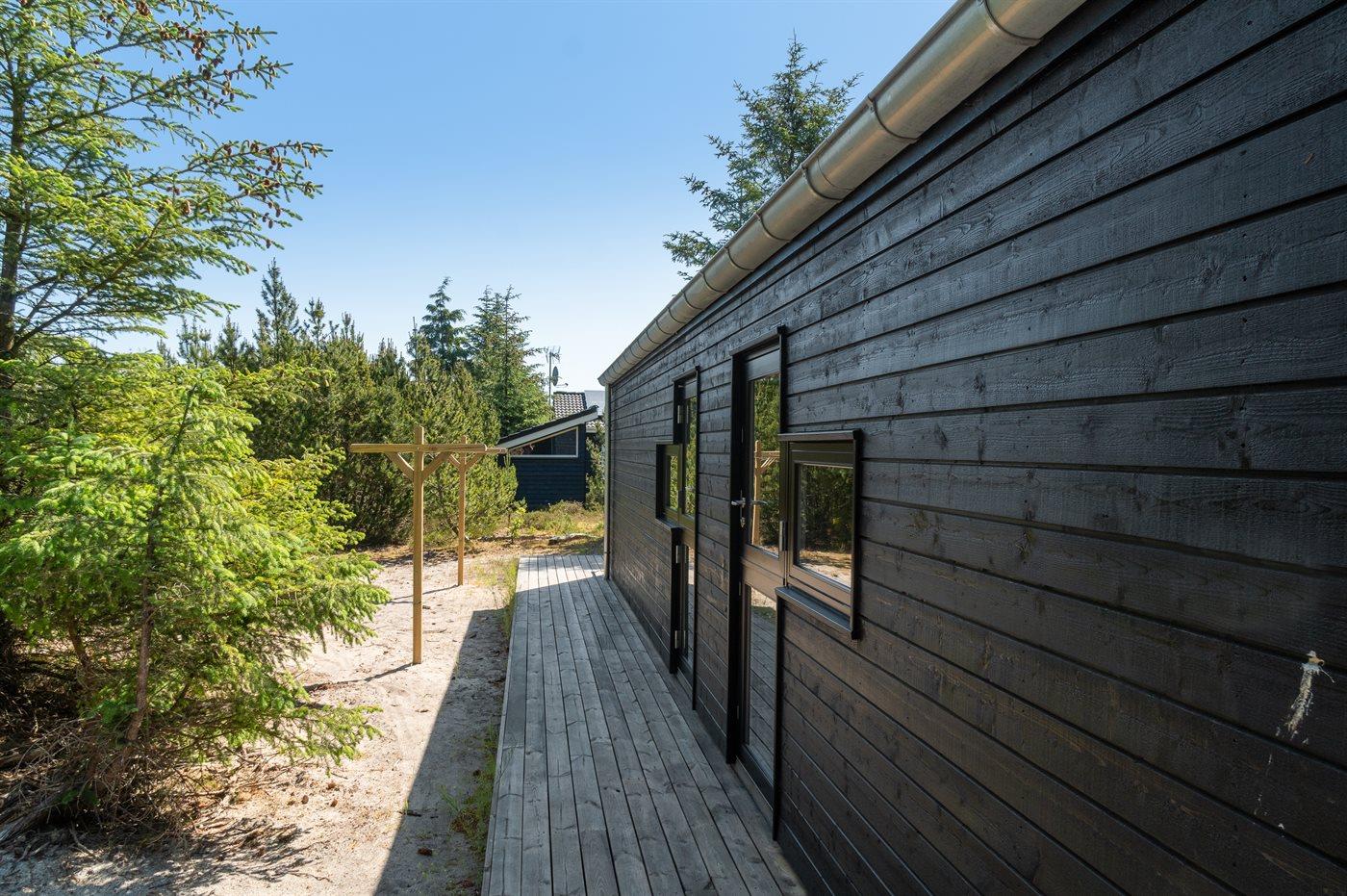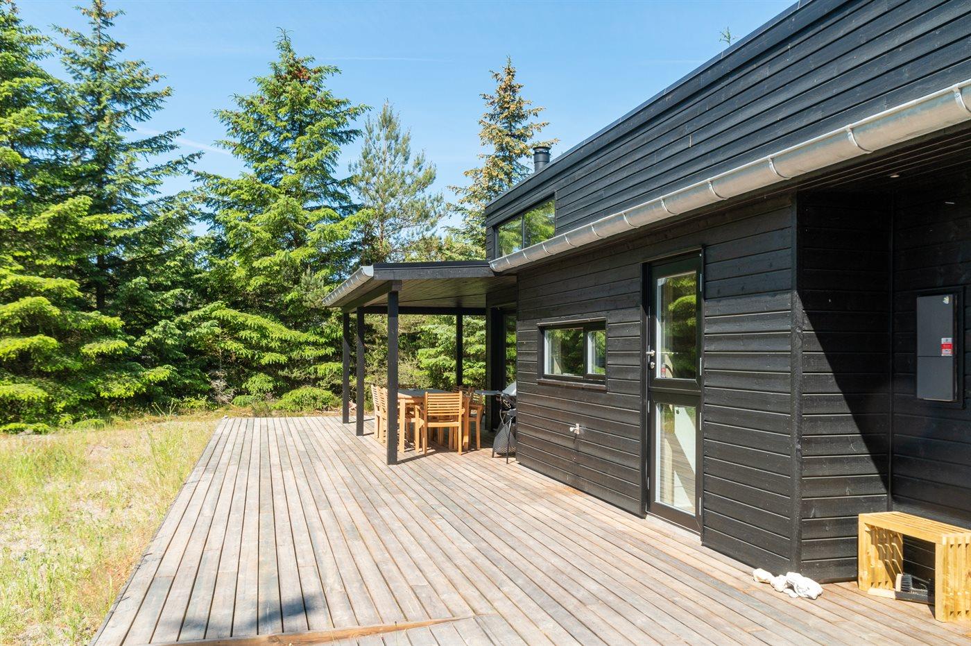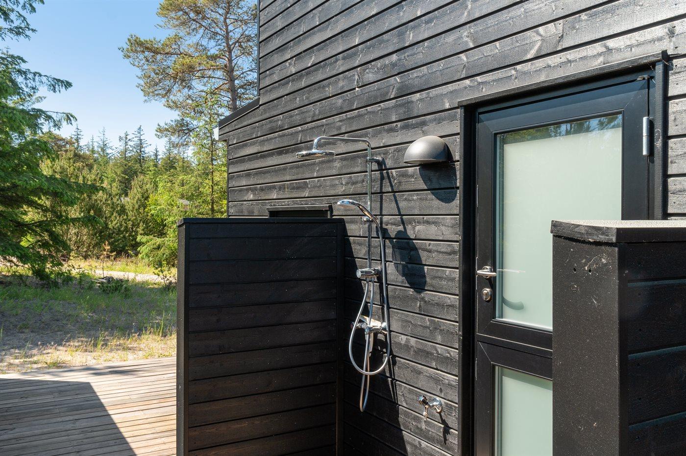 Ferieboligen er beliggende på en 1200 m² stor naturgrund. Der er 1300 m til havet. Nærmeste forretning er beliggende i en afstand af 5000 m. Der er en golfbane i en afstand af 10000 m. Til ferieboligen hører åbent terrasseareal. Desuden er der overdækket terrasse. Der ligger en legeplads i en afstand af 1500 m. Udendørs bruser. Grill til rådighed. Der er installeret stik til opladning af elbil. Type 2 stik. Med 22 kW ladeeffekt. Parkering ved ferieboligen.
