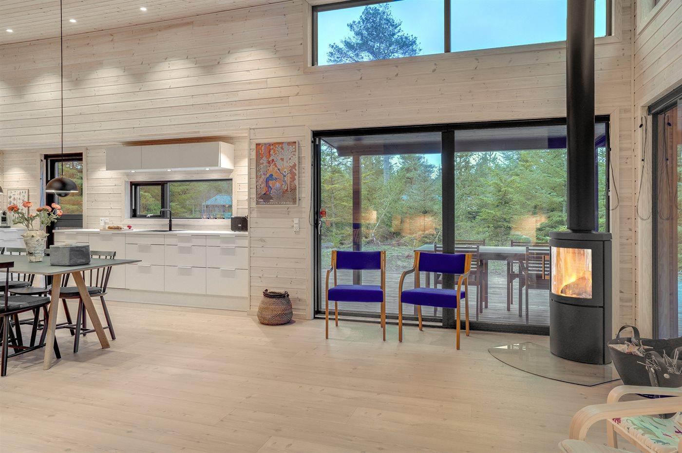 Sommerhuset egner sig til 7 personer samt 1 barn op til 3 år. Ferieboligen er på 107 m² og er bygget i 2022. Det er ikke tilladt at medbringe husdyr. Ferieboligen er udstyret med 1 energivenlig luft til vand varmepumpe. Hele ferieboligen har gulvvarme. Ferieboligen har vaskemaskine. Tørretumbler. Frysekapacitet på 84 liter. Der er desuden brændeovn. Til de små er der 1 stk. barnestol.