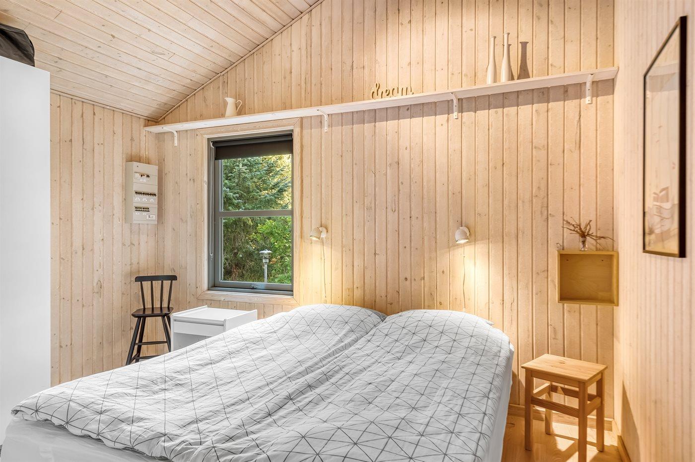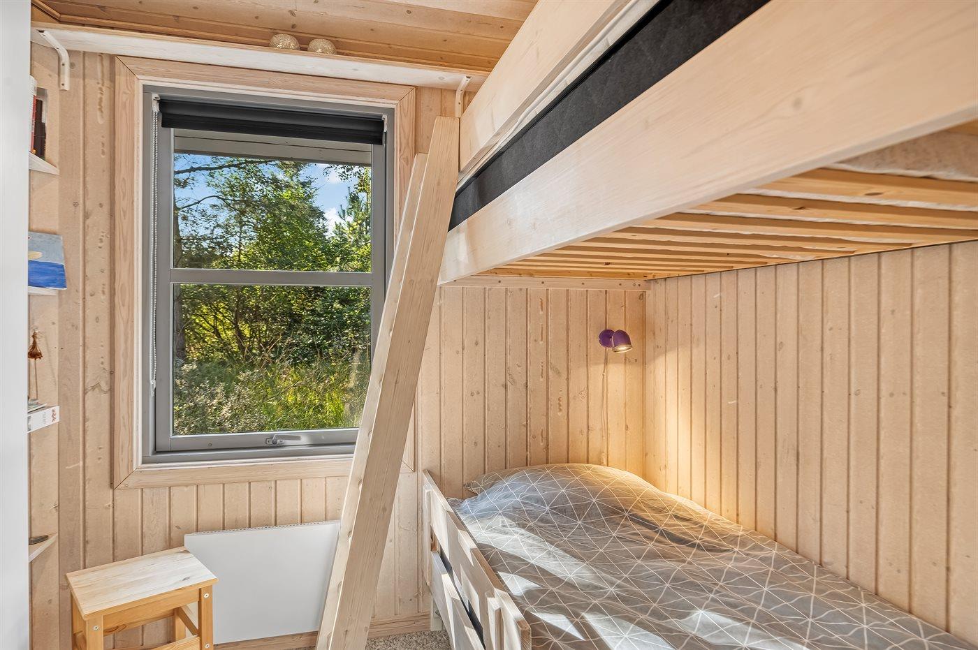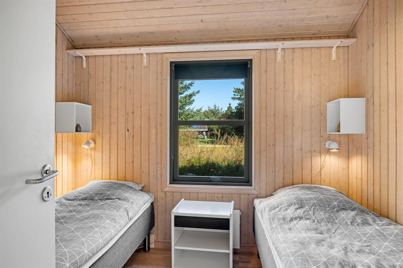 Der er i alt 3 soveværelser. Sovepladserne fordeler sig på: 2 sovepladser i dobbeltseng. 2 sovepladser i enkeltsenge. 2 sovepladser i køjeseng. Derudover er der 1 stk. barneseng.