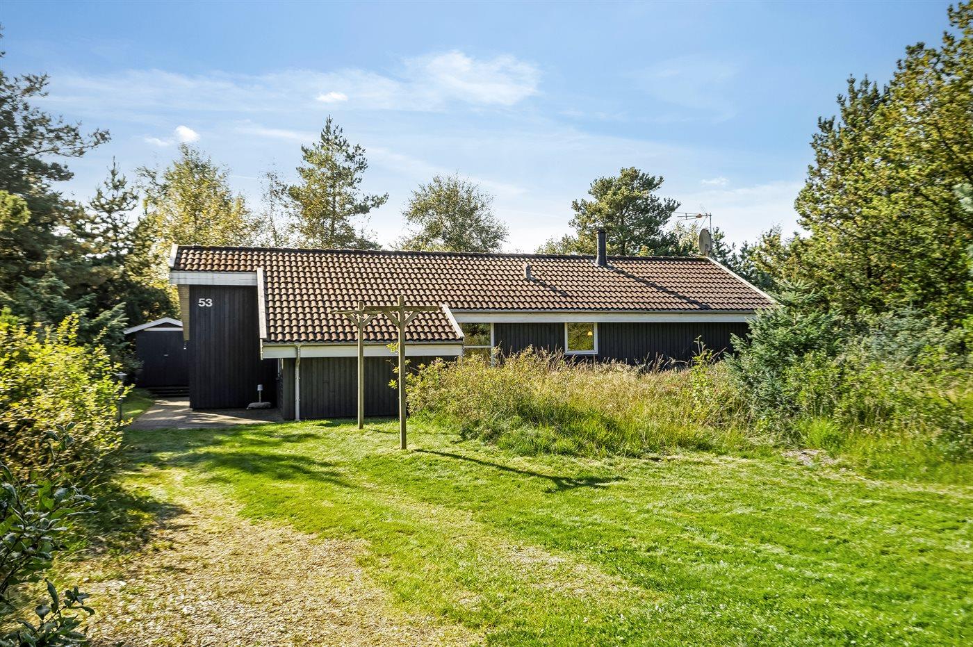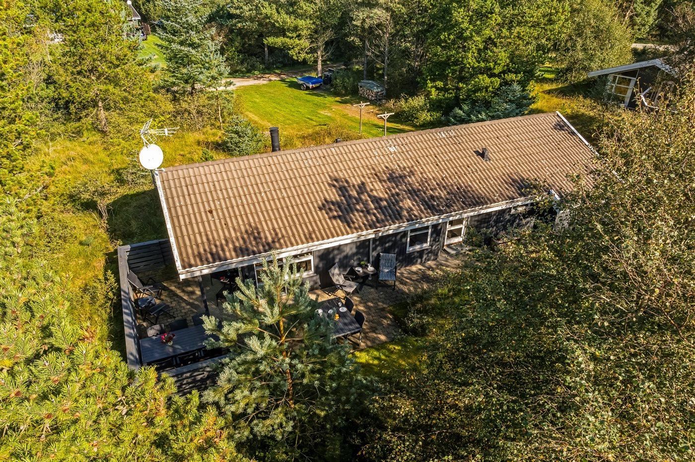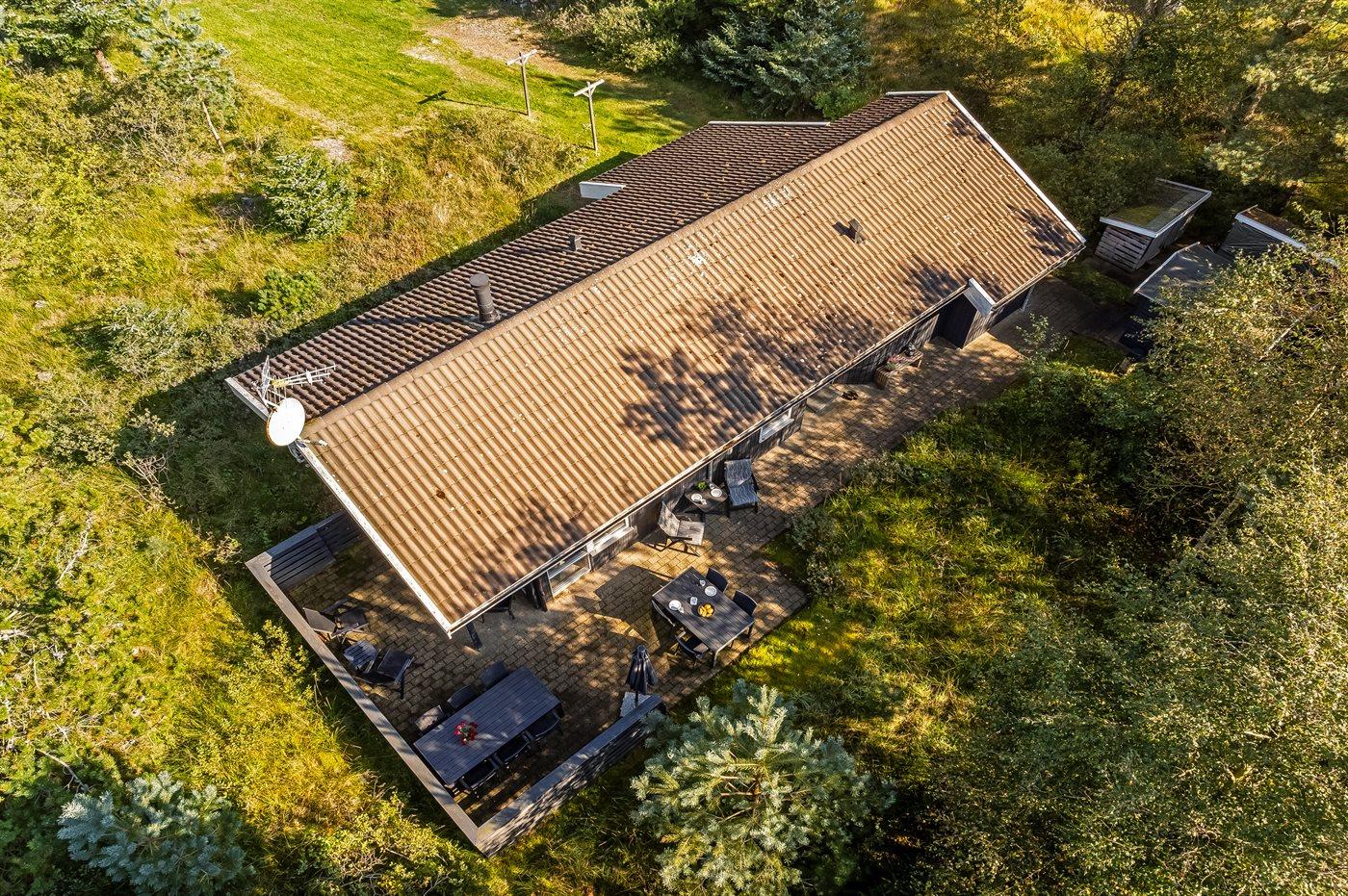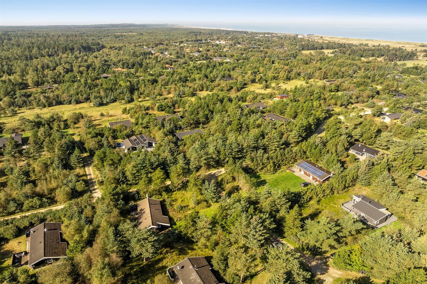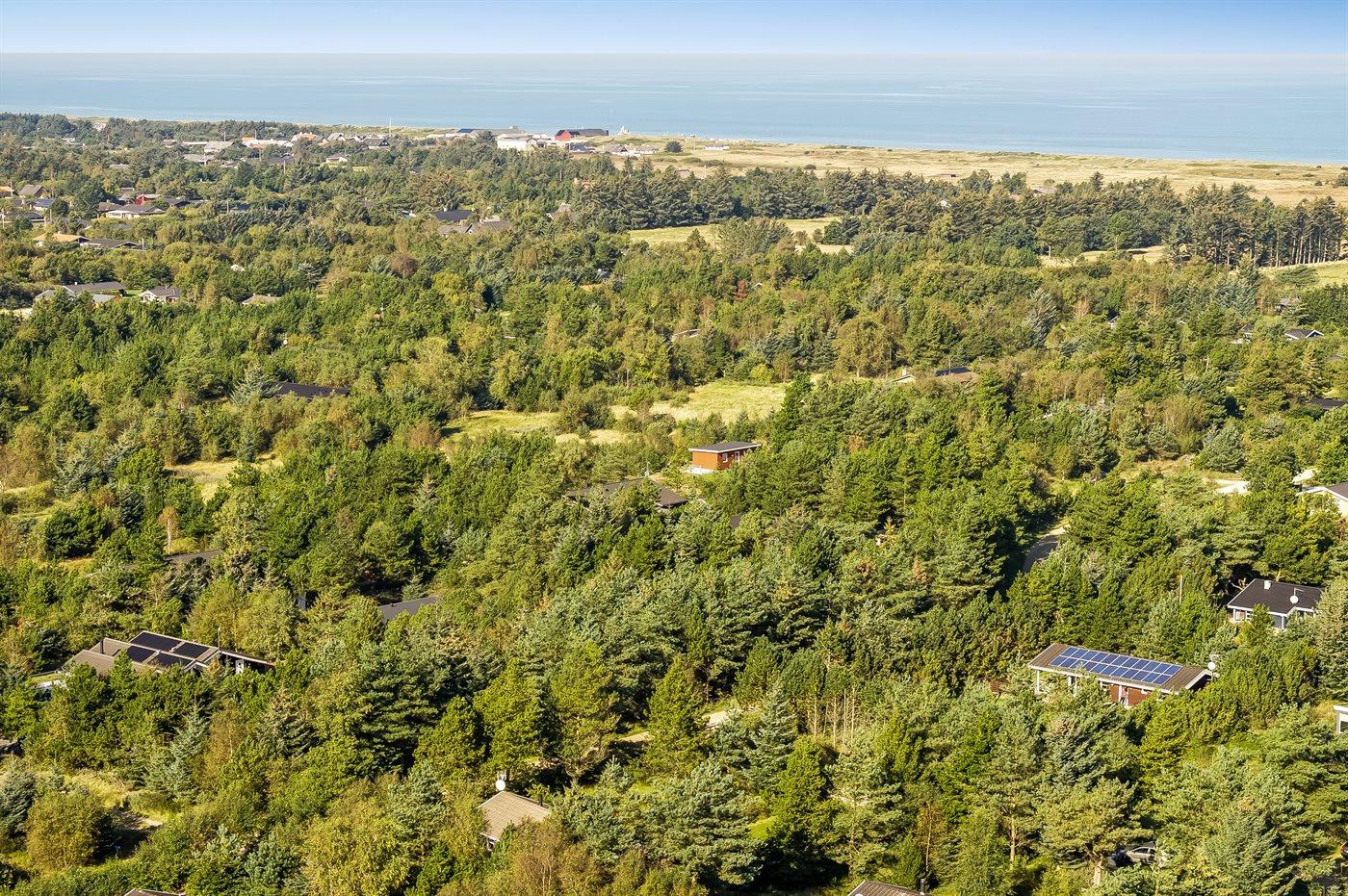 Ferieboligen er beliggende på en 951 m² stor naturgrund. Der er 900 m til havet. Nærmeste forretning er beliggende i en afstand af 4000 m. Til ferieboligen hører åbent terrasseareal. Desuden er der overdækket terrasse. Der er redskabsrum. Parkering ved ferieboligen.