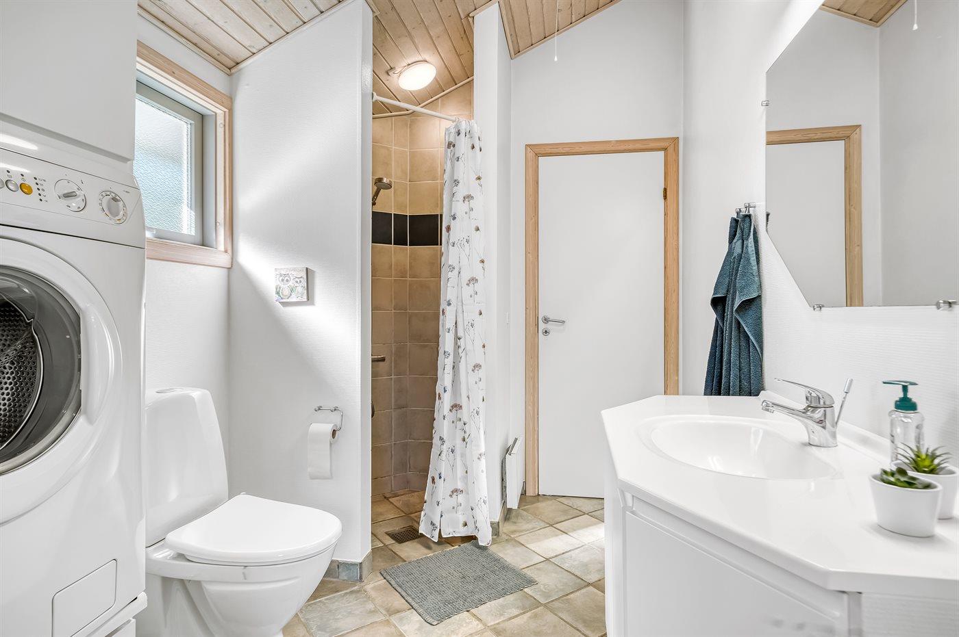 Der er 1 badeværelse med bruseniche og 1 toilet.. Der er gulvvarme på 1 badeværelse. I saunaen er der mulighed for afslapning.