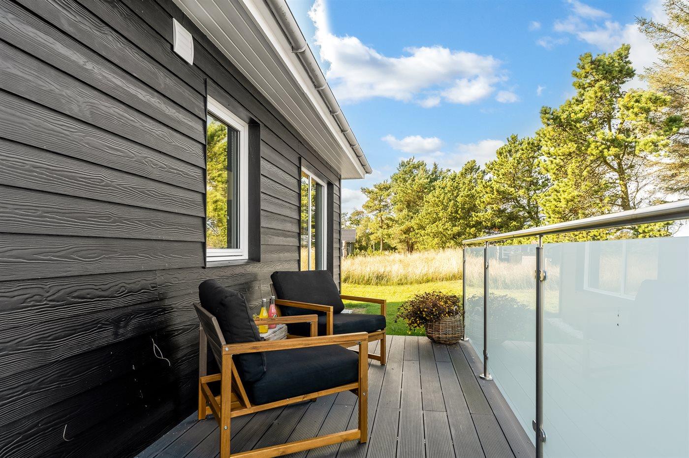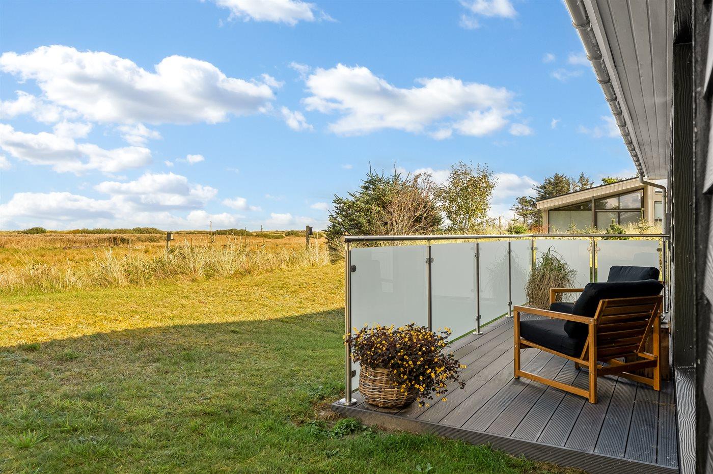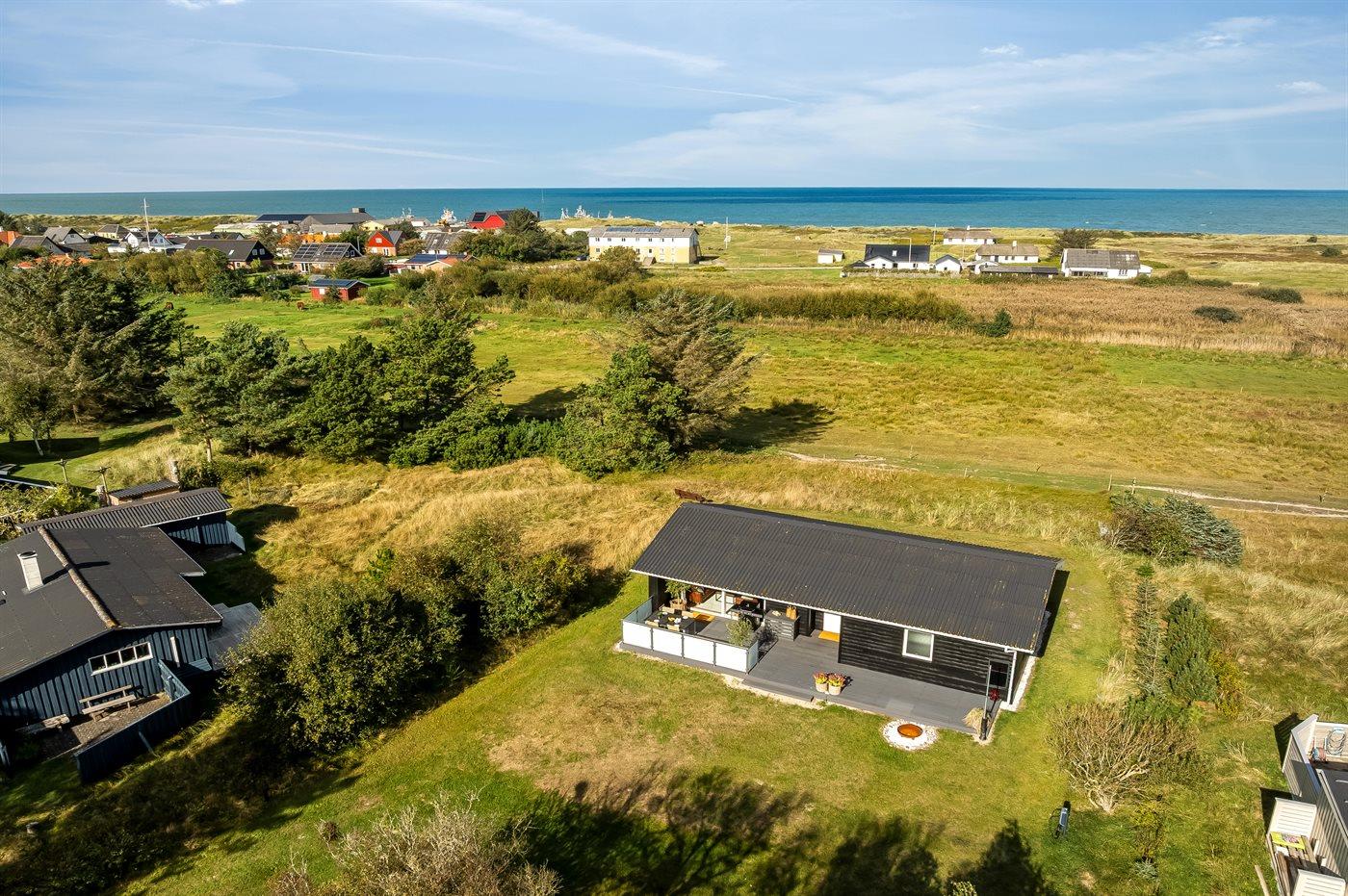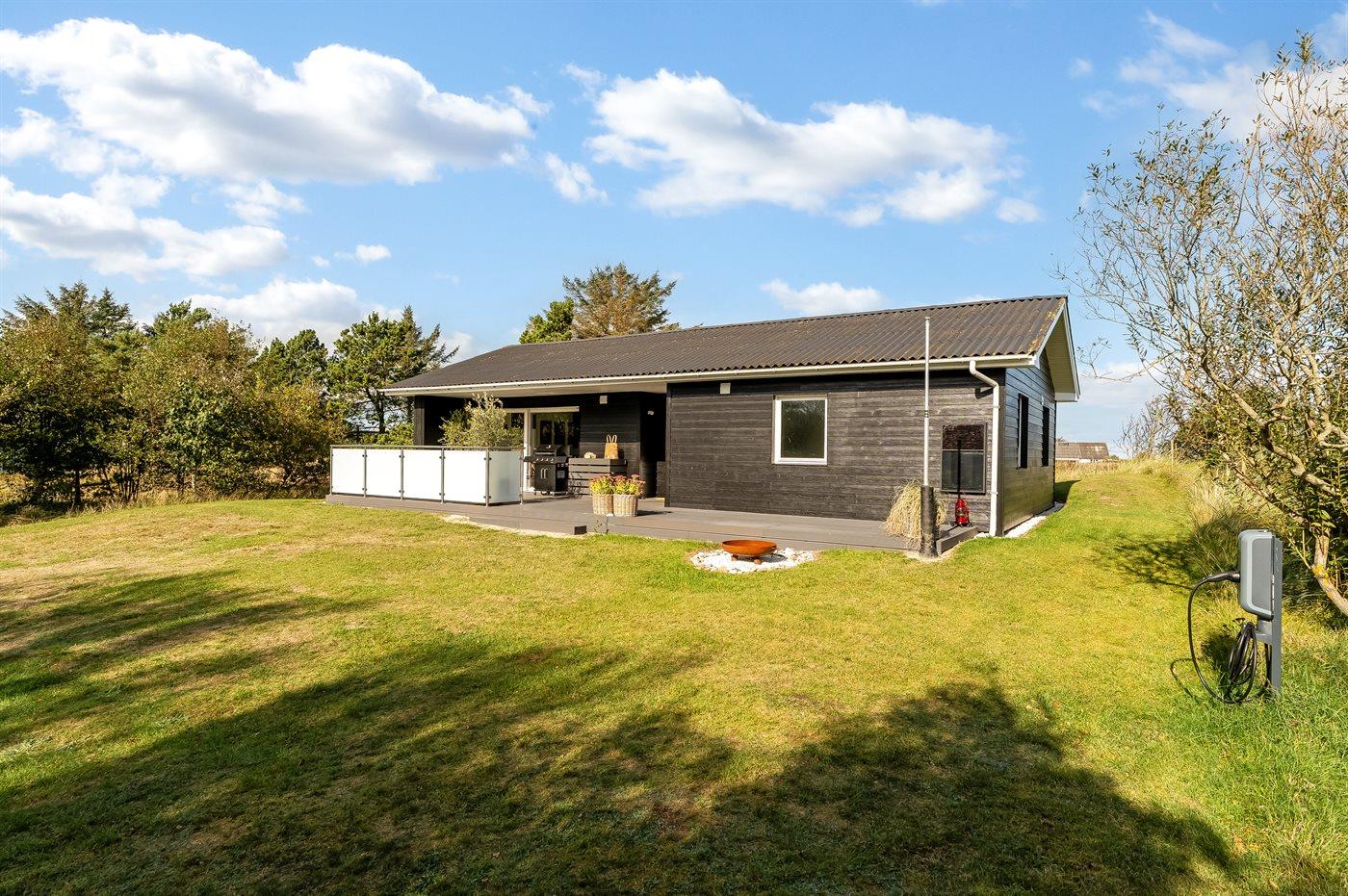 Ferieboligen er beliggende på en 1252 m² stor naturgrund. Der er 500 m til havet. Nærmeste forretning er beliggende i en afstand af 3000 m. Til ferieboligen hører åbent terrasseareal. Desuden er der overdækket terrasse. Der er redskabsrum. Der ligger en legeplads i en afstand af 500 m. Bålsted. Grill til rådighed. Der er installeret stik til opladning af elbil. CEE stik. Parkering ved ferieboligen.