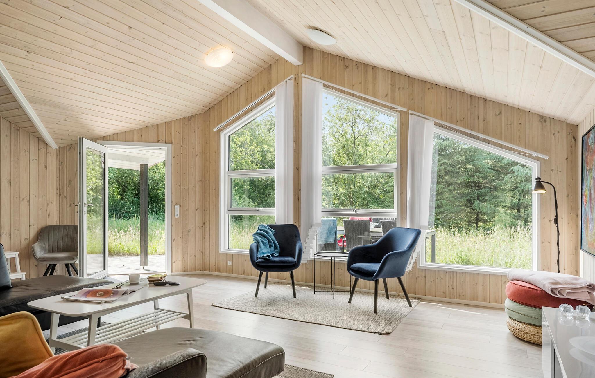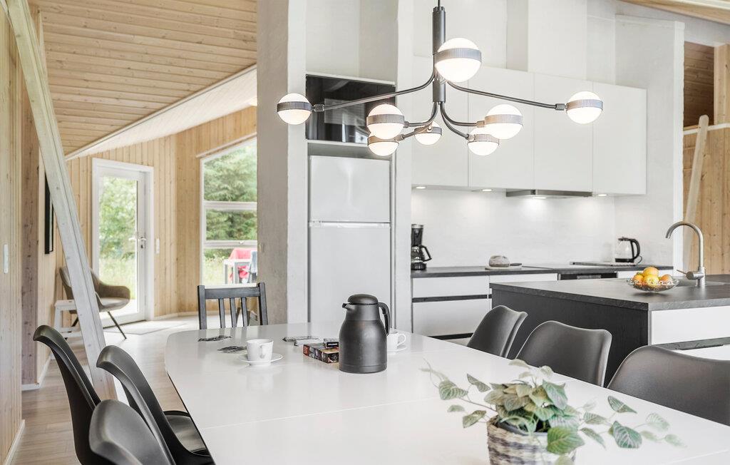 Dette lyse og rummelige feriehus ligger på en rolig, grøn naturgrund og forkæler jer med et indbydende og komfortabelt møbleret interiør. Glæd jer til hyggelige måltider i den åbne stue, hvor store vinduer giver jer udsigt over haven. Forkæl jer selv med nogle afslappende øjeblikke i saunaen eller spabadet, mens børnene leger med legeredskaberne, og andre laver mad i køkkenet.
