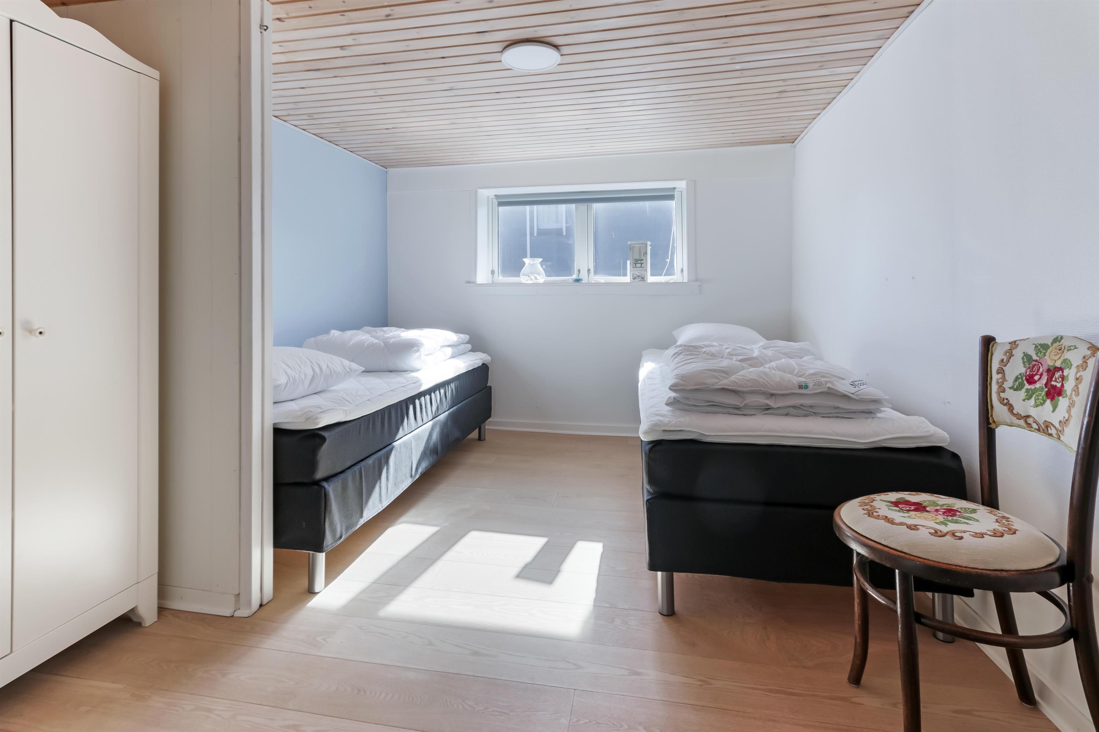 Sovepladserne fordeler sig på tre store soverum: