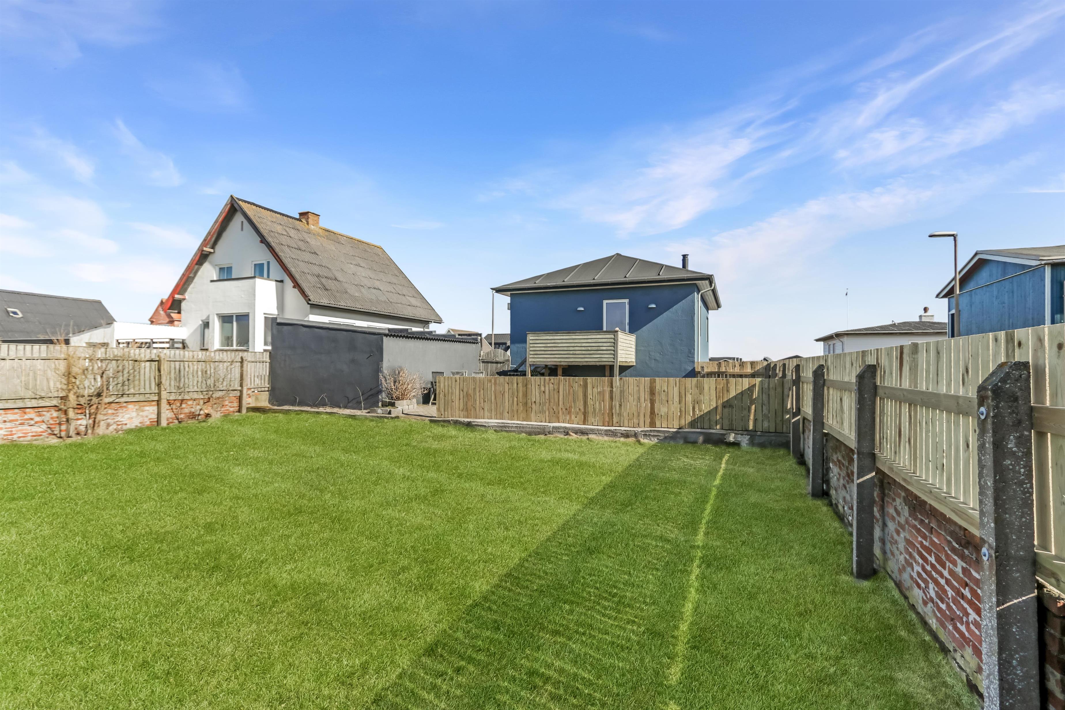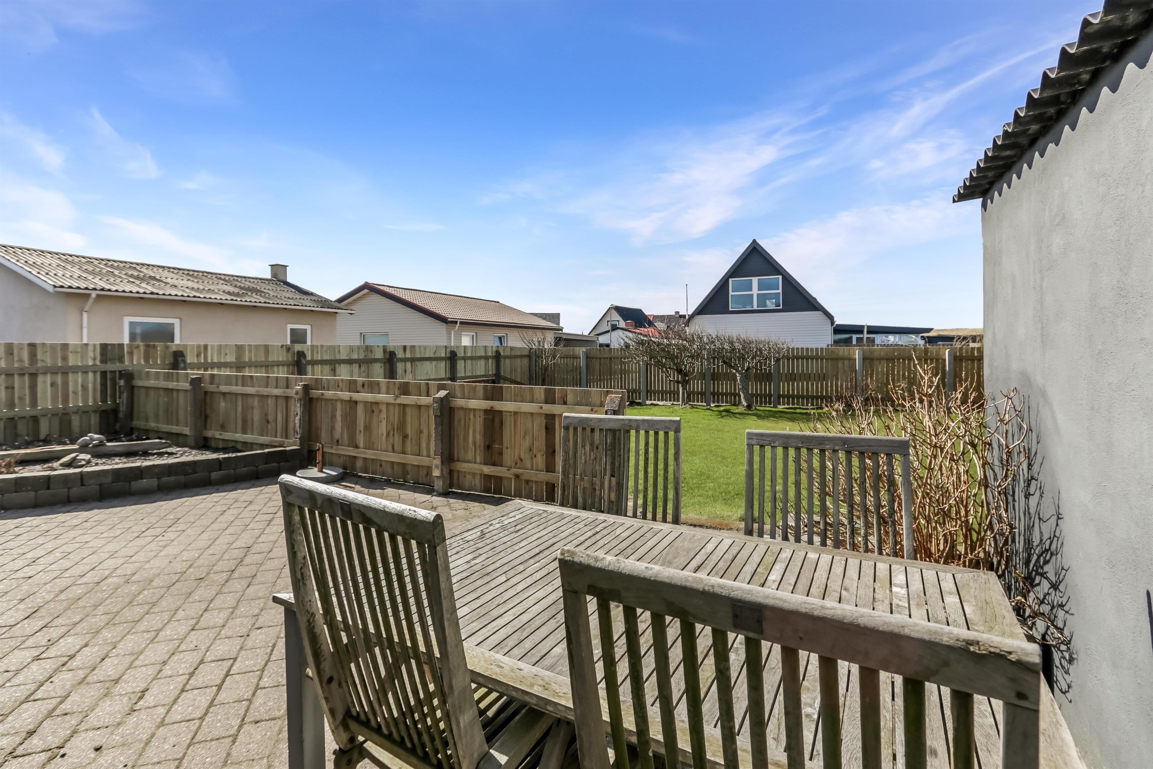 Huset ligger på en 440 m² stor, indhegnet grund, hvilket gør det ideelt for både børn og rolig udeliv. Nyd solen på den store lukkede terrasse med havemøbler og grill, mens aftensmaden tilberedes i den friske havluft.