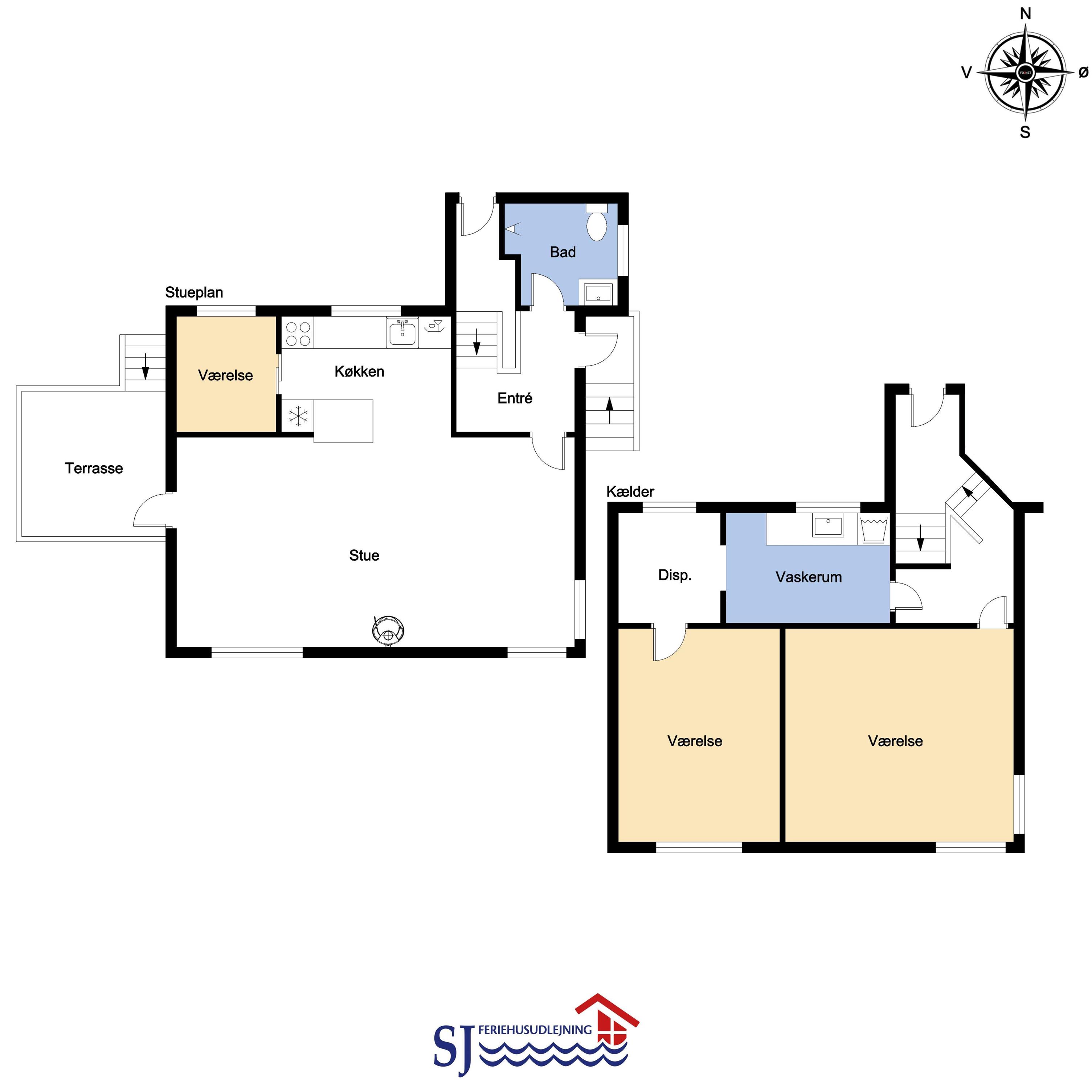 2 værelser 1 DS og 2S