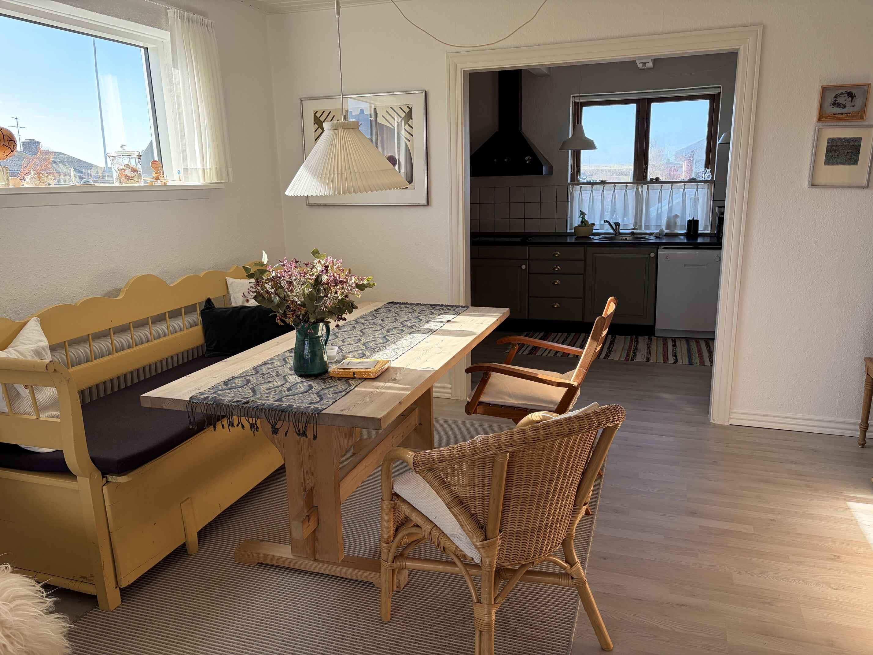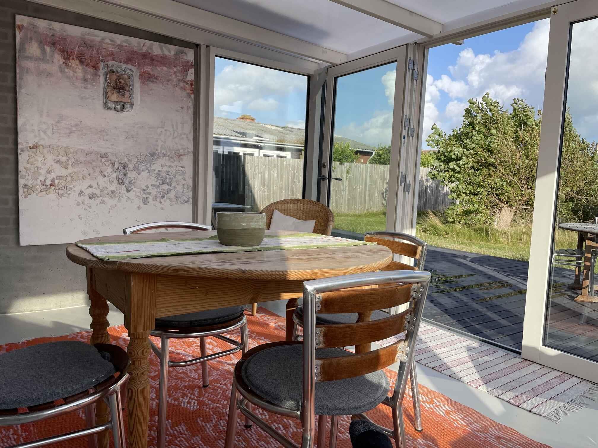 Stort charmerede sommerhus med gå afstand til den sikreste og bedste strand på vestkysten samt til byens mange spændene aktiviteter og spisesteder. Vi har gjort os umage med at gøre huset til et rart sted at være med kunst og keramik. Der er en lukket have mod sydvest med en stor træ terrasse, der giver mulighed for at værne om privat livet og i læ for vesten vinden. Efter en tur i vandet er det muligt at bruge udebruseren på terrassen. Vi elsker vores udestue, hvor der selv på en regnvejrsdag er varmt og hyggeligt. Lærkevej 7 er et hus som det er godt at være i hele året, både på de solrige dage samt på dage med regn og rusk. Huset er stort med mange hyggekroge, hvor der er plads til at være sammen; men som også giver mulighed for at kunne trække sig. På 1 .sal er der brændeovn i den store stue. Huset er opvarmet med fjernvarme og selvfølgelig opvarmet til at I kommer. VARME ER INCL. Der er sove rum både i stueetagen og på 1 sal. Vi bestræber os på , at der ved ankomst er adgang til basis ting i huset - kaffe , salt ,mel , sukker, m.m. og håber at I også efterlader lidt til de næste gæster. Vi har 3 cykler til fri afbenyttelse. Det er gæsternes eget ansvar at holde cyklerne kørende. Huset er et perfekte udgangspunkt for at benytte sig af naturen omkring Thyborøn,- med rig mulighed for at bade, fiske samt besøge museer i byen og i oplandet. Det er også muligt at tage en PUCK maxi tur med besøg på det lokale værtshus - Kahytten, og hvem har ikke hørt om det berømte Sneglehus - hvor vi kan anbefale deres hjemmelavede kringle til eftermiddags kaffen. I Thyborøn er der også et større badeland med tilbud til store og små. Der er ikke langt til National park Thy med båden til Aggertange, eller en tur til Lemvig med lokal toget VLTJ , og til Borgbjerg fyr i nærheden af kunsterkolonien ved Fjaltering. Obs, udlejes ikke til erhversmæssigt brug.