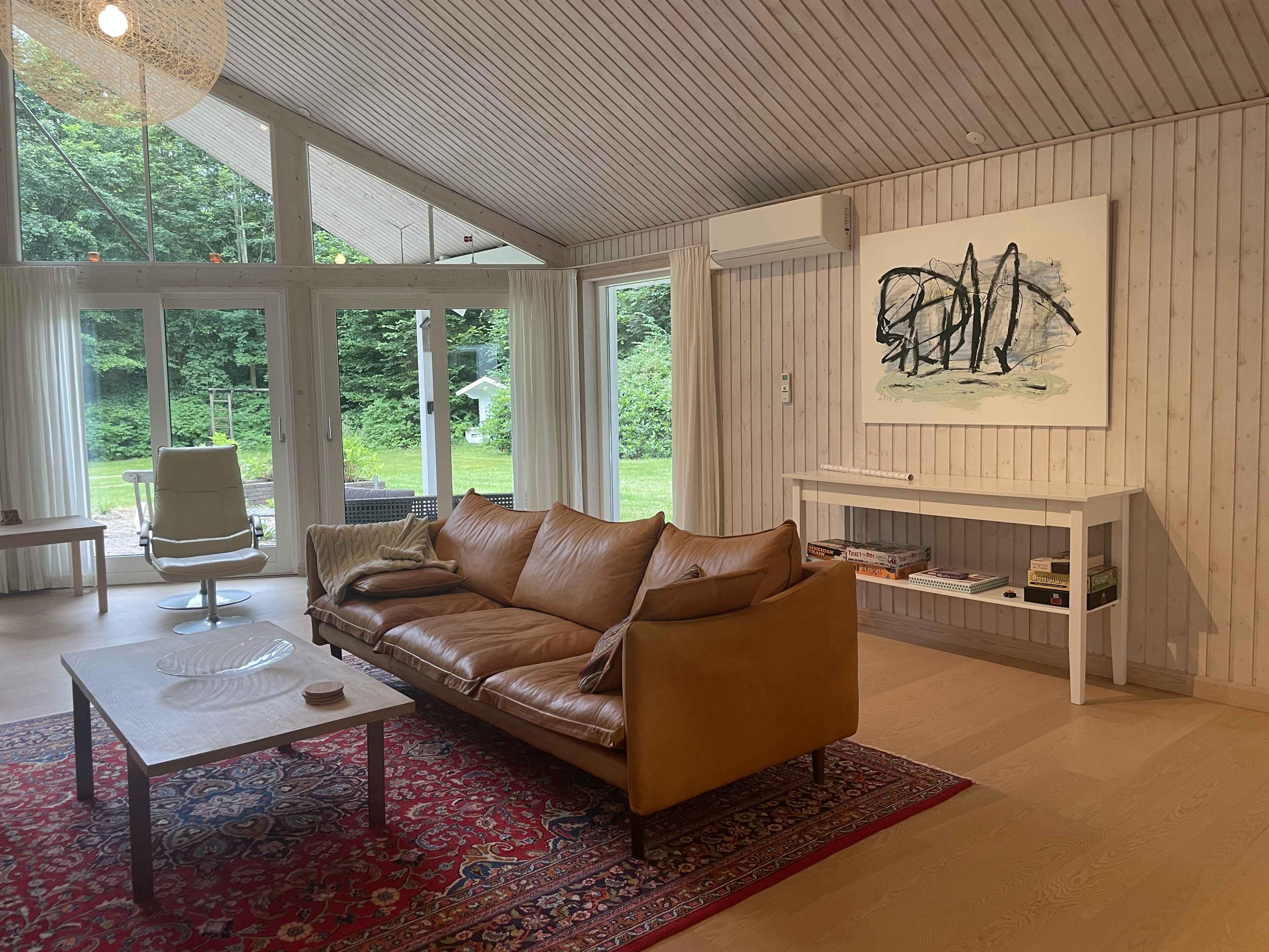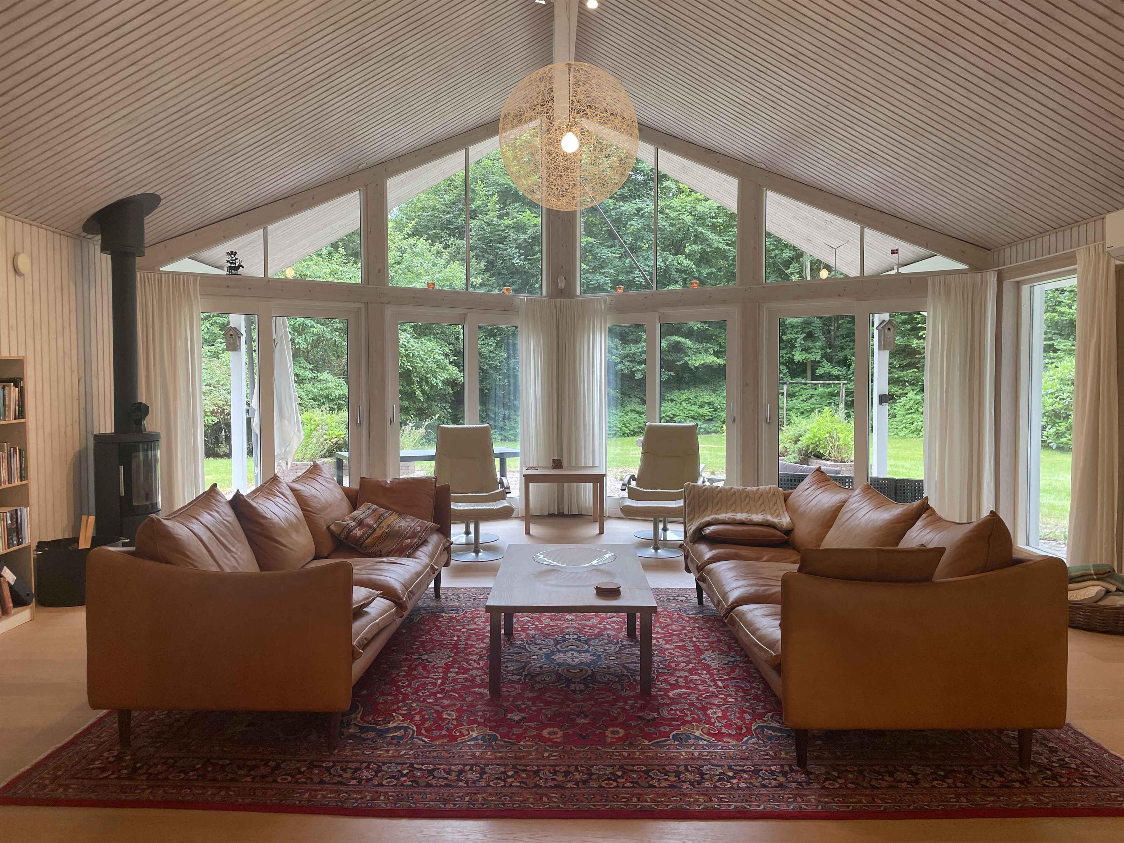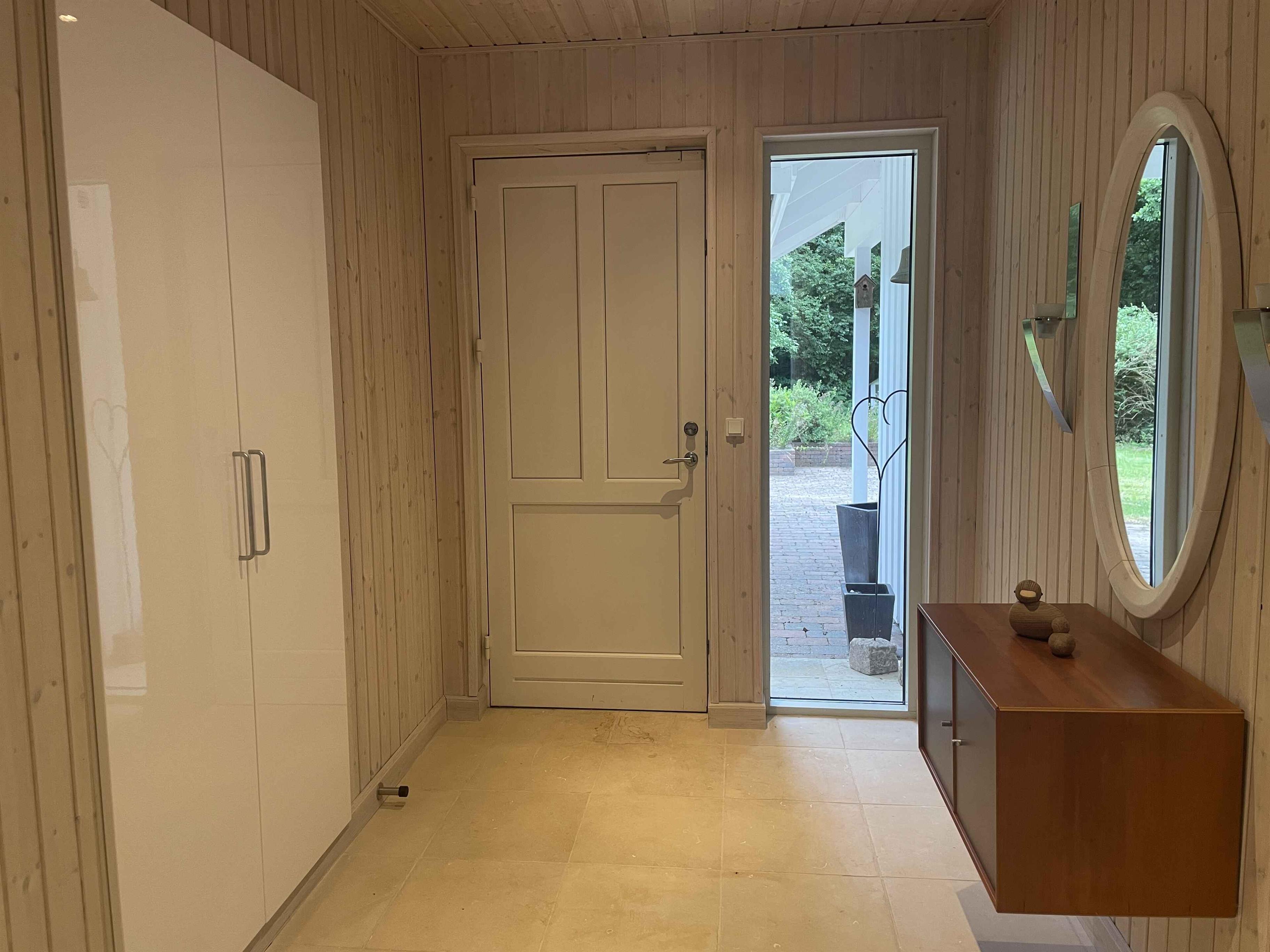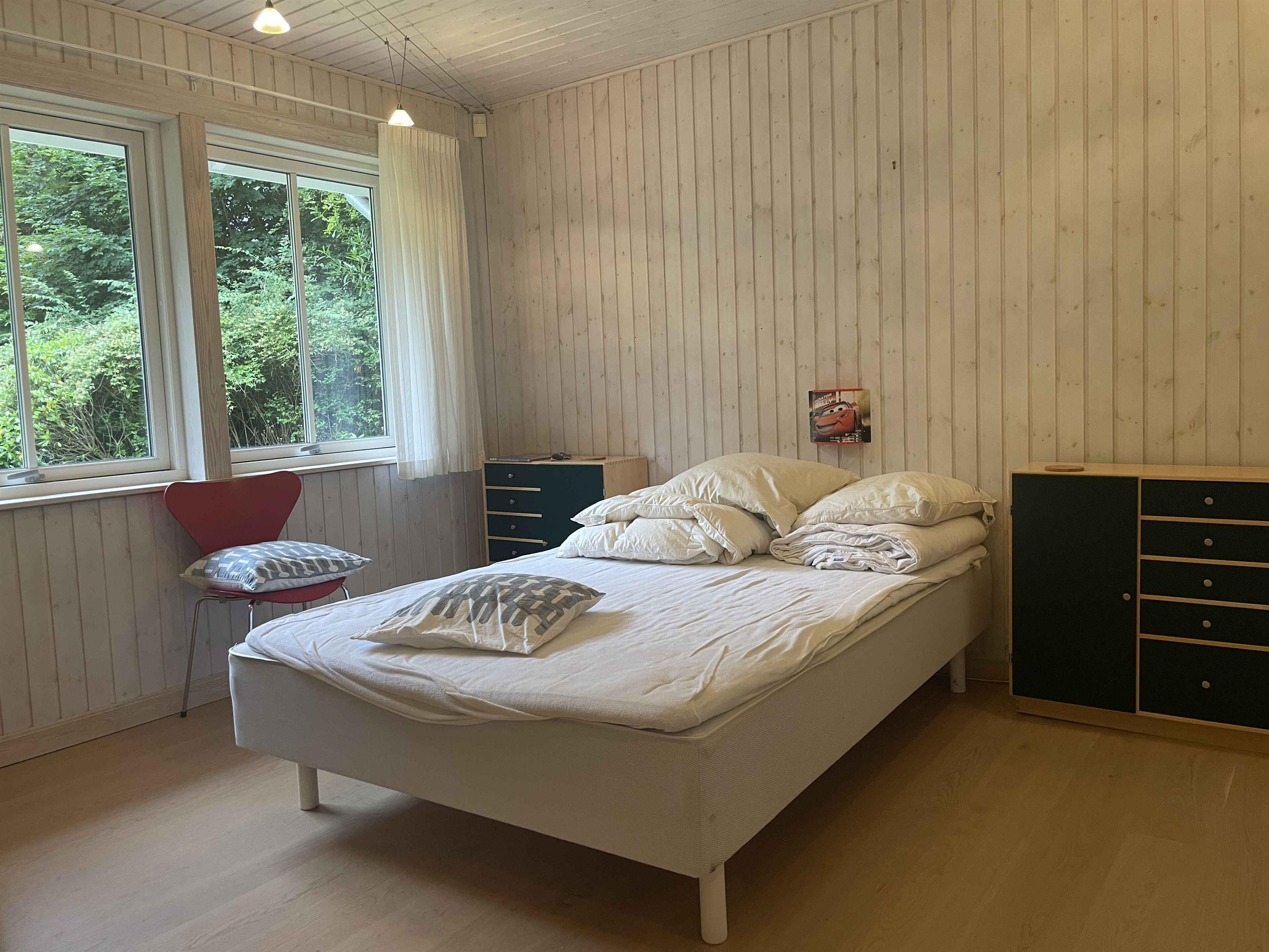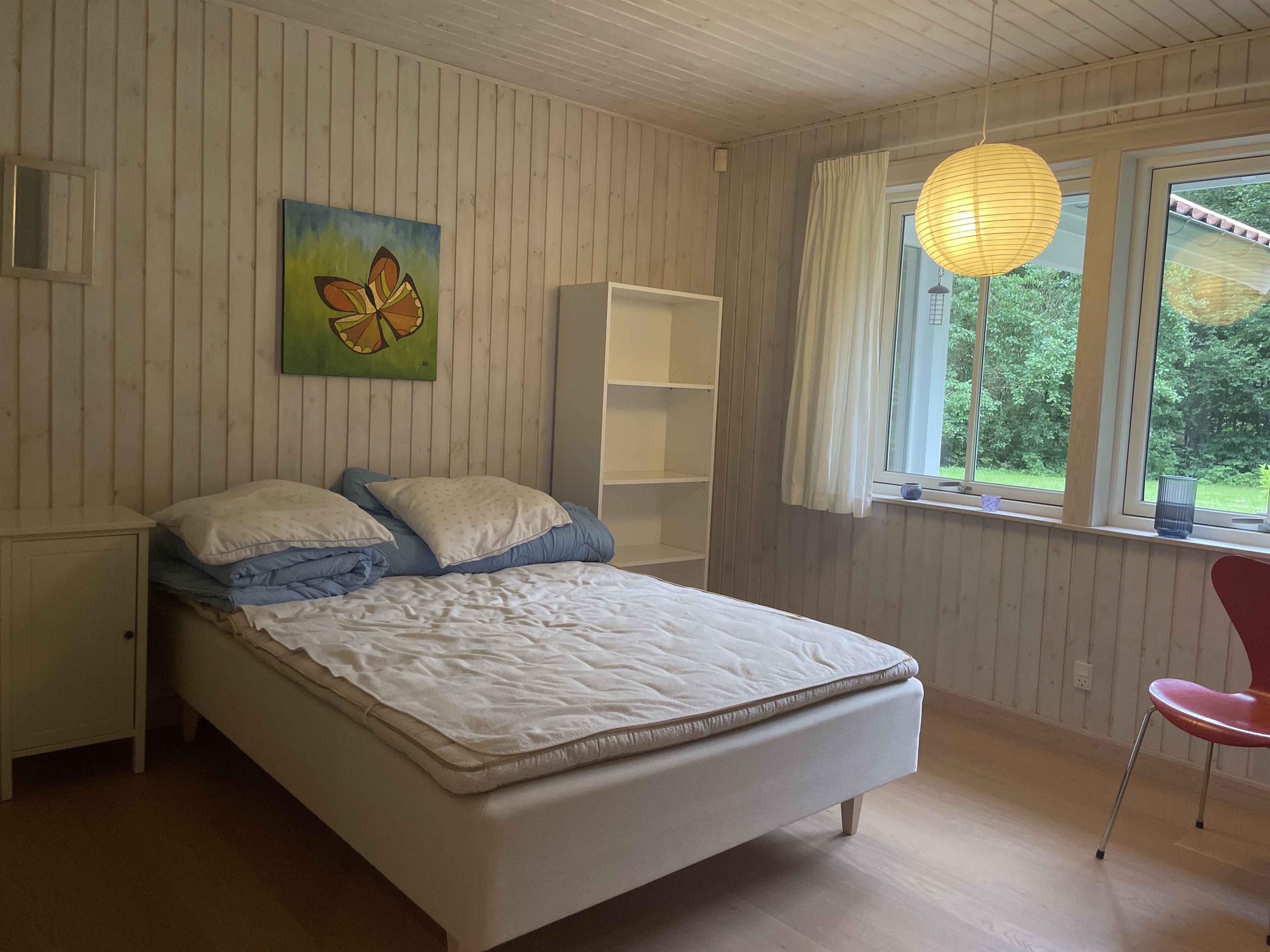 Et dejligt, rummeligt sommerhus med plads til nærvær og afslapning. De 300 m² rummer seks separate soveværelser med i alt seks sovepladser, hvilket gør huset oplagt til to familier, der rejser sammen. Her er tænkt på ro, hygge og samvær frem for skærme og elektronik. Huset ligger i et stille område med fredelige omgivelser og god plads både inde og ude. Den store terrasse, grillplads og den velholdte have indbyder til udendørsliv og lange sommeraftener. En rummelig udestue giver mulighed for at forlænge dagen, også når vejret er skiftende. Indendørs er huset fuldt møbleret med alt, hvad man har brug for. Et stort spisebord samler gæsterne til fælles måltider, mens sofaer og loungestole giver plads til afslapning. Der er tv-rum, wifi og klassiske brætspil til de stille aftener. Området omkring huset er rigt på naturoplevelser. Tæt på finder du skove, stier og en sø, der indbyder til gåture og udsigtspauser. Kysten ligger blot 6 km væk med flere hyggelige strande og småbyer, der er perfekte til en dagsudflugt eller en is i solen. Det er et oplagt sted til ferie, hvor tempoet sænkes, og der er tid til at være sammen. Uanset om du vil udforske naturen eller bare nyde roen hjemme, danner huset og omgivelserne en ideel ramme om en afslappet og indholdsrig ferie. Obs, udlejes ikke til erhversmæssigt brug.