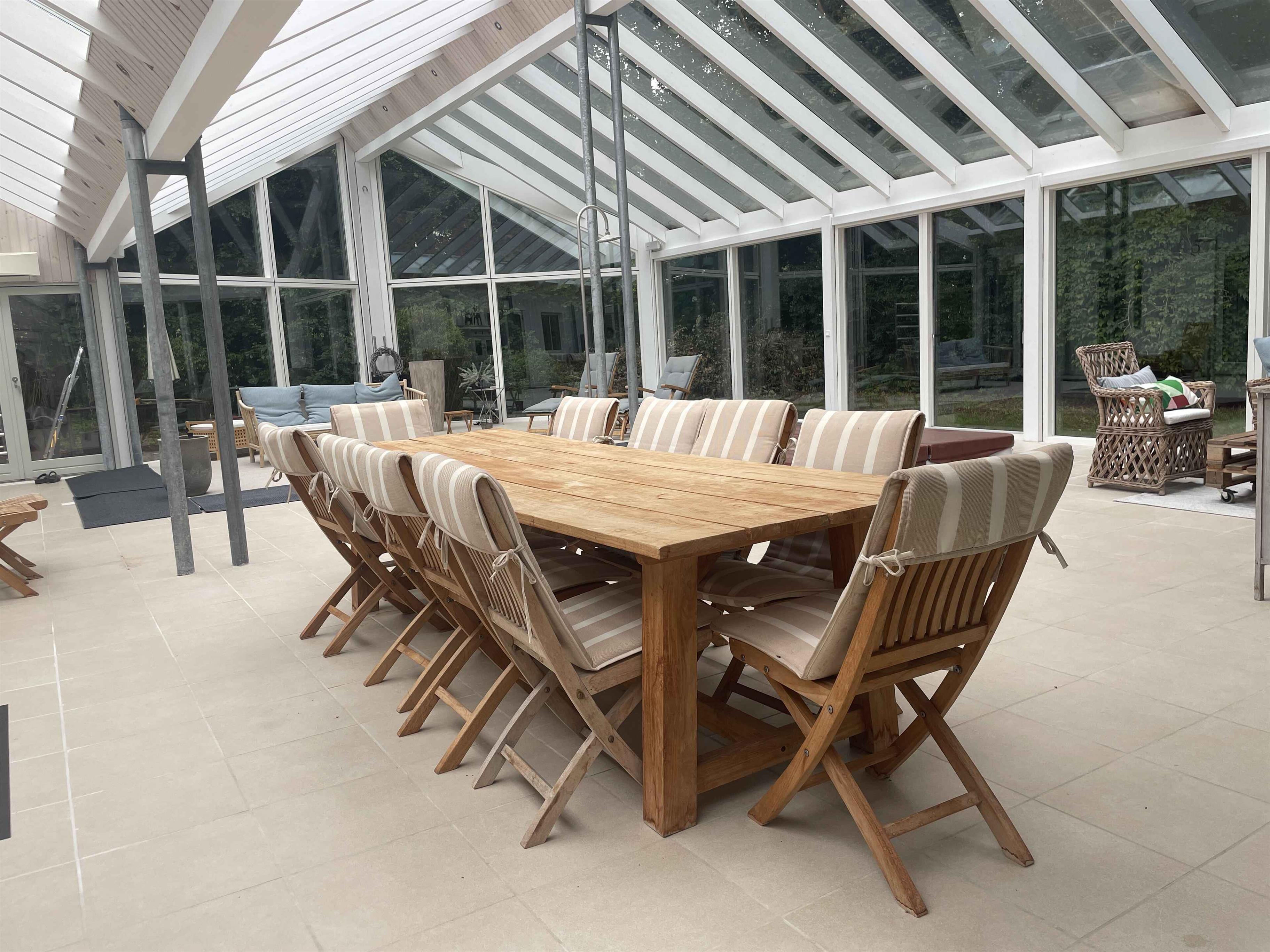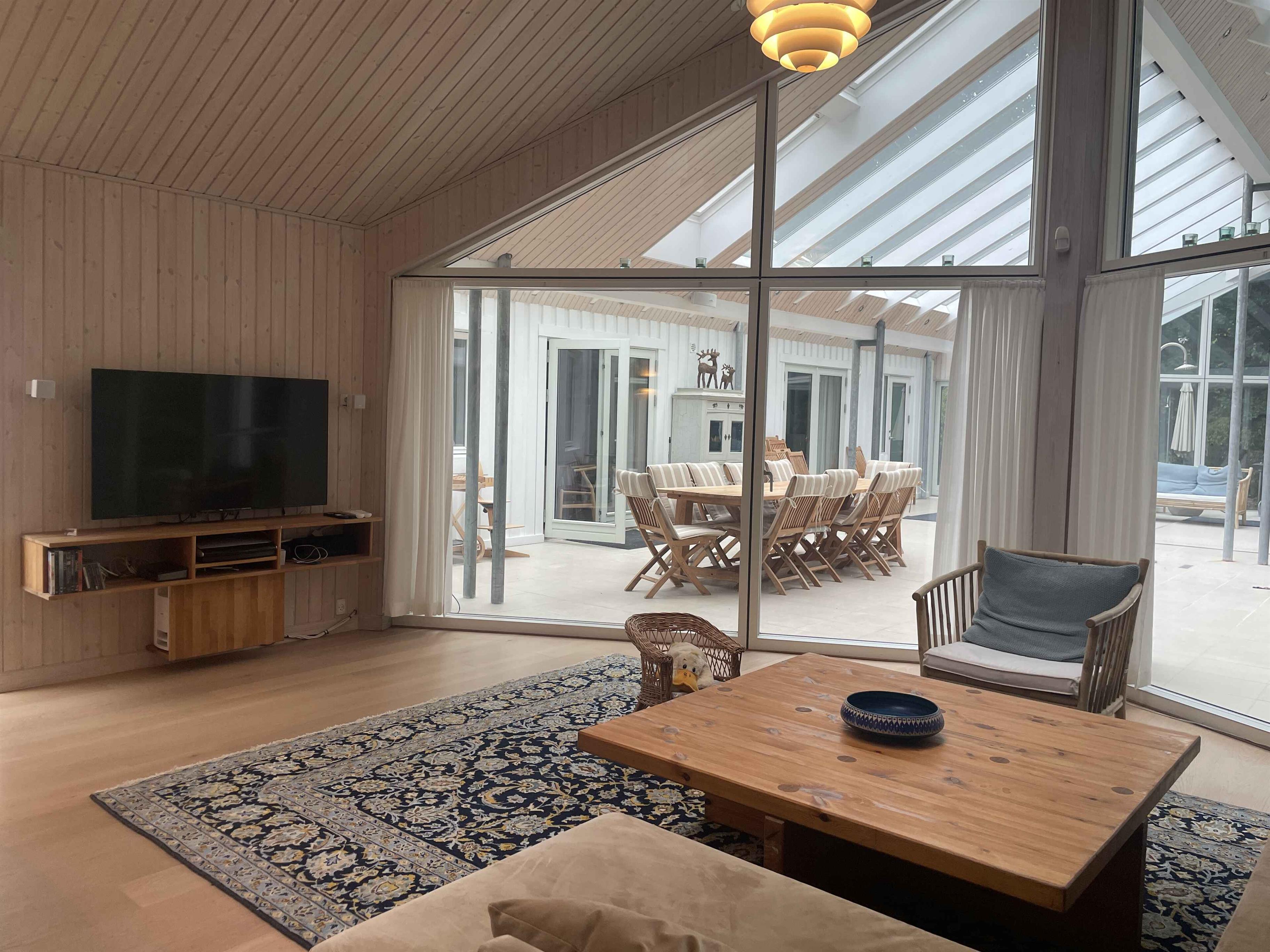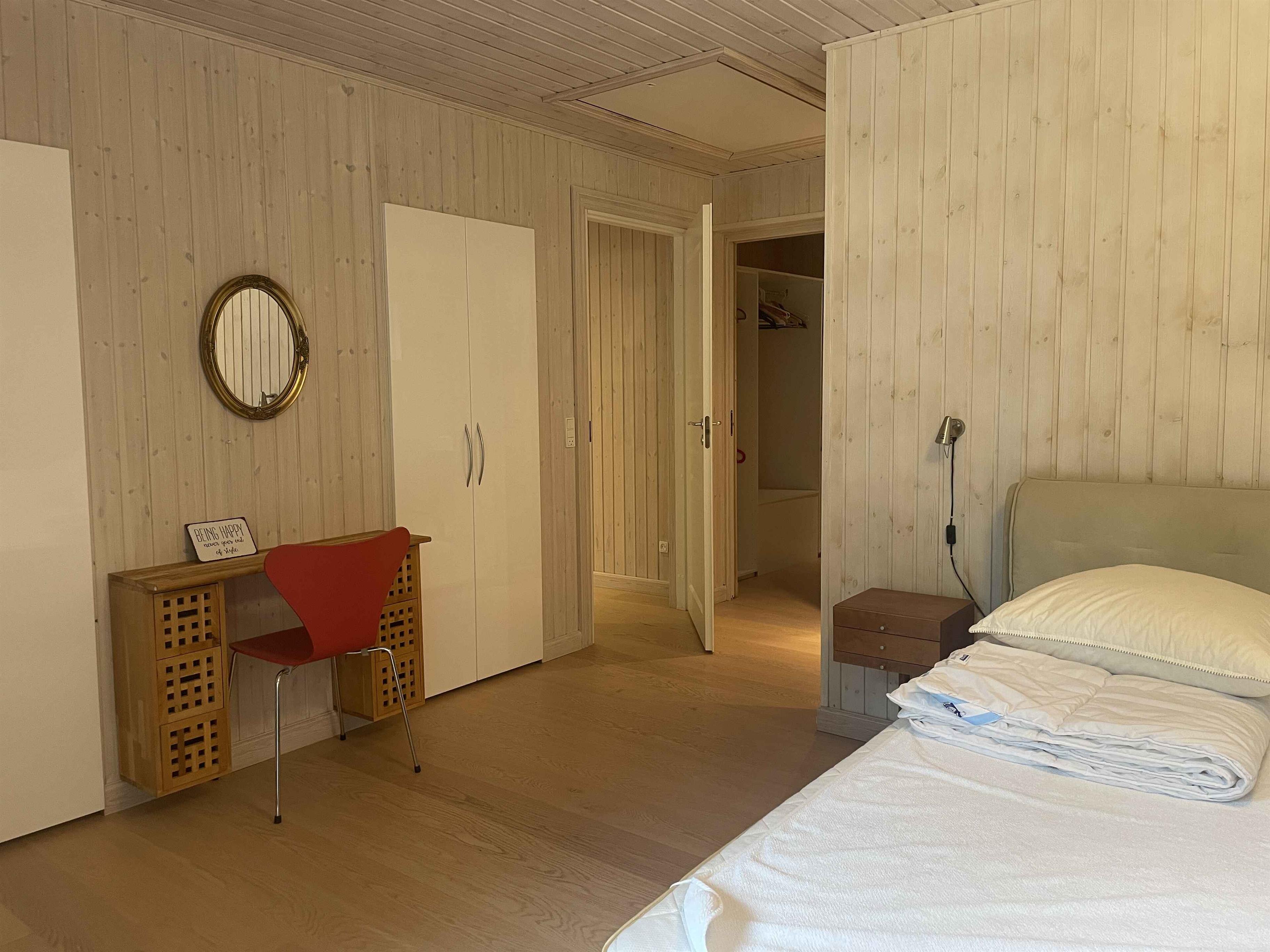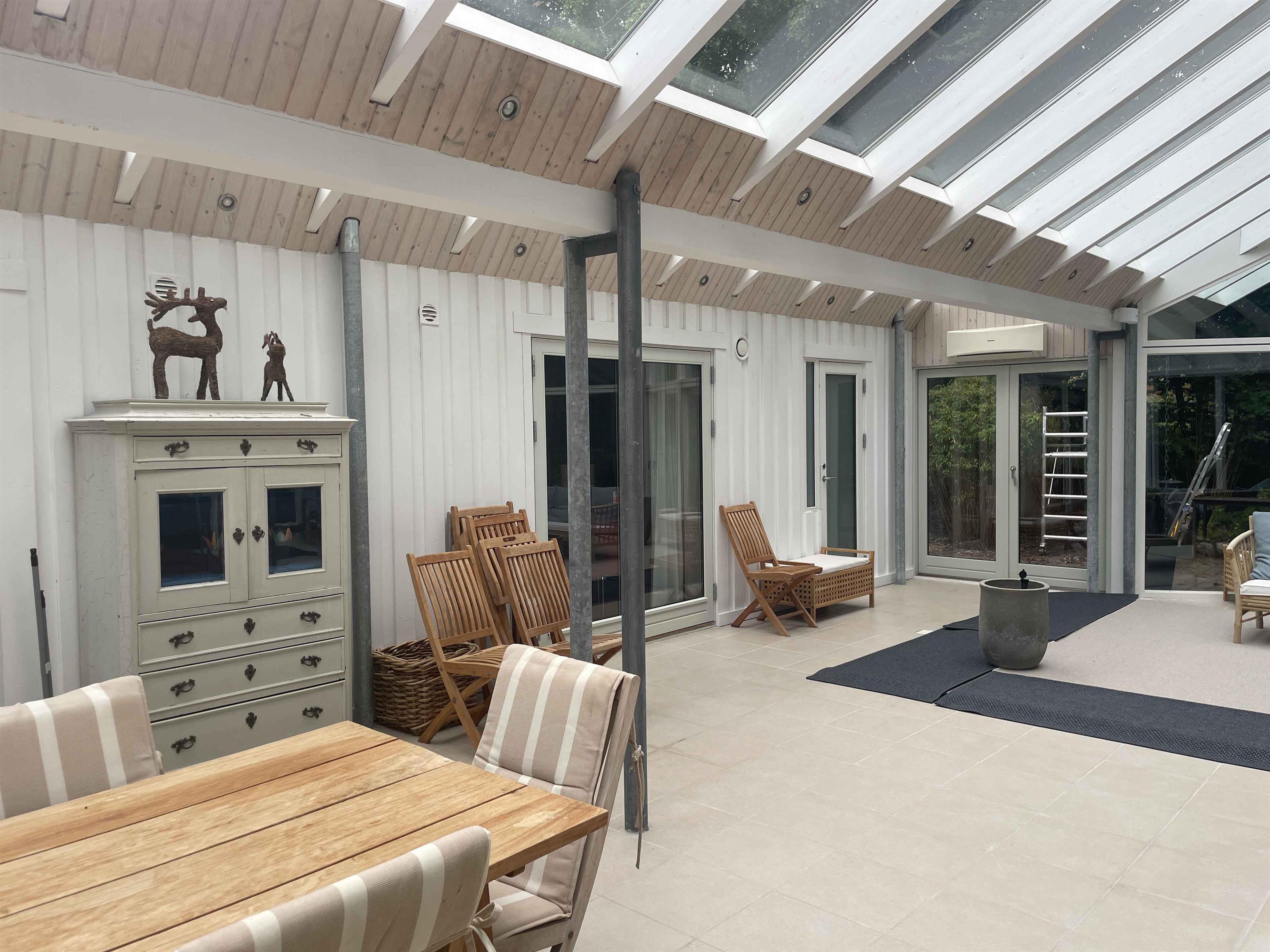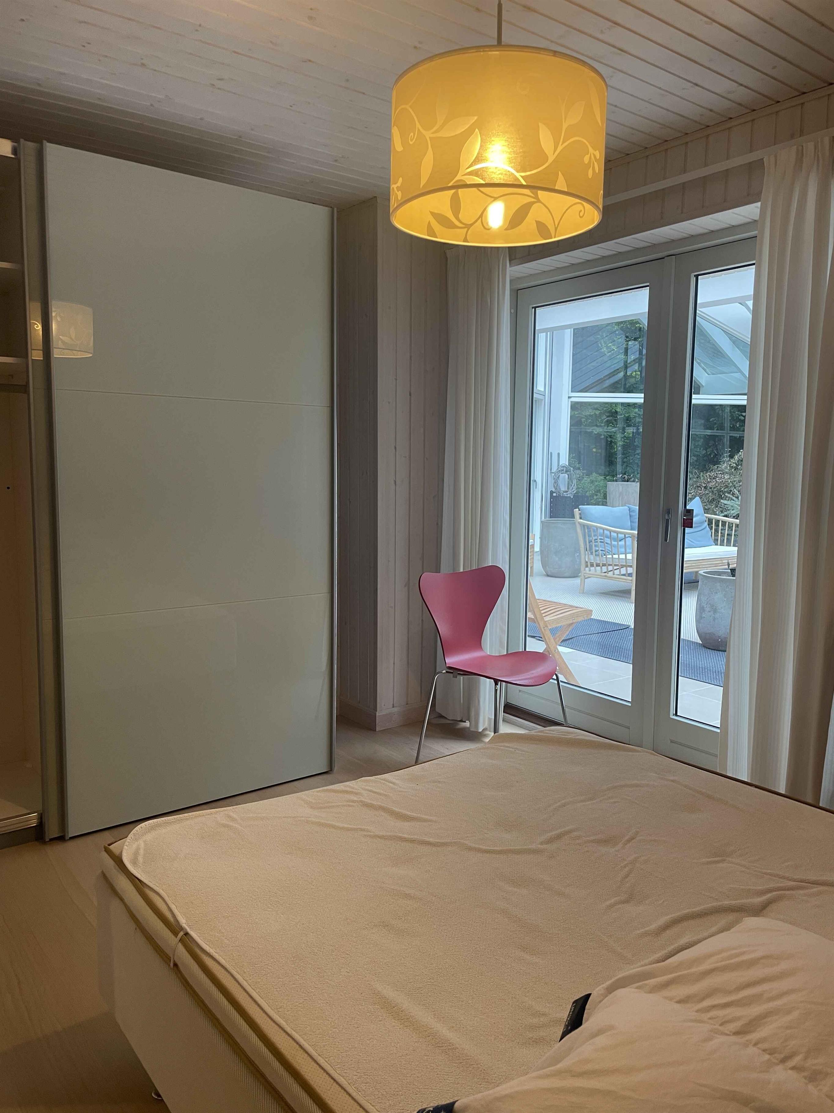 Et dejligt, rummeligt sommerhus med plads til nærvær og afslapning. De 300 m² rummer seks separate soveværelser med i alt seks sovepladser, hvilket gør huset oplagt til to familier, der rejser sammen. Her er tænkt på ro, hygge og samvær frem for skærme og elektronik. Huset ligger i et stille område med fredelige omgivelser og god plads både inde og ude. Den store terrasse, grillplads og den velholdte have indbyder til udendørsliv og lange sommeraftener. En rummelig udestue giver mulighed for at forlænge dagen, også når vejret er skiftende. Indendørs er huset fuldt møbleret med alt, hvad man har brug for. Et stort spisebord samler gæsterne til fælles måltider, mens sofaer og loungestole giver plads til afslapning. Der er tv-rum, wifi og klassiske brætspil til de stille aftener. Området omkring huset er rigt på naturoplevelser. Tæt på finder du skove, stier og en sø, der indbyder til gåture og udsigtspauser. Kysten ligger blot 6 km væk med flere hyggelige strande og småbyer, der er perfekte til en dagsudflugt eller en is i solen. Det er et oplagt sted til ferie, hvor tempoet sænkes, og der er tid til at være sammen. Uanset om du vil udforske naturen eller bare nyde roen hjemme, danner huset og omgivelserne en ideel ramme om en afslappet og indholdsrig ferie. Obs, udlejes ikke til erhversmæssigt brug.