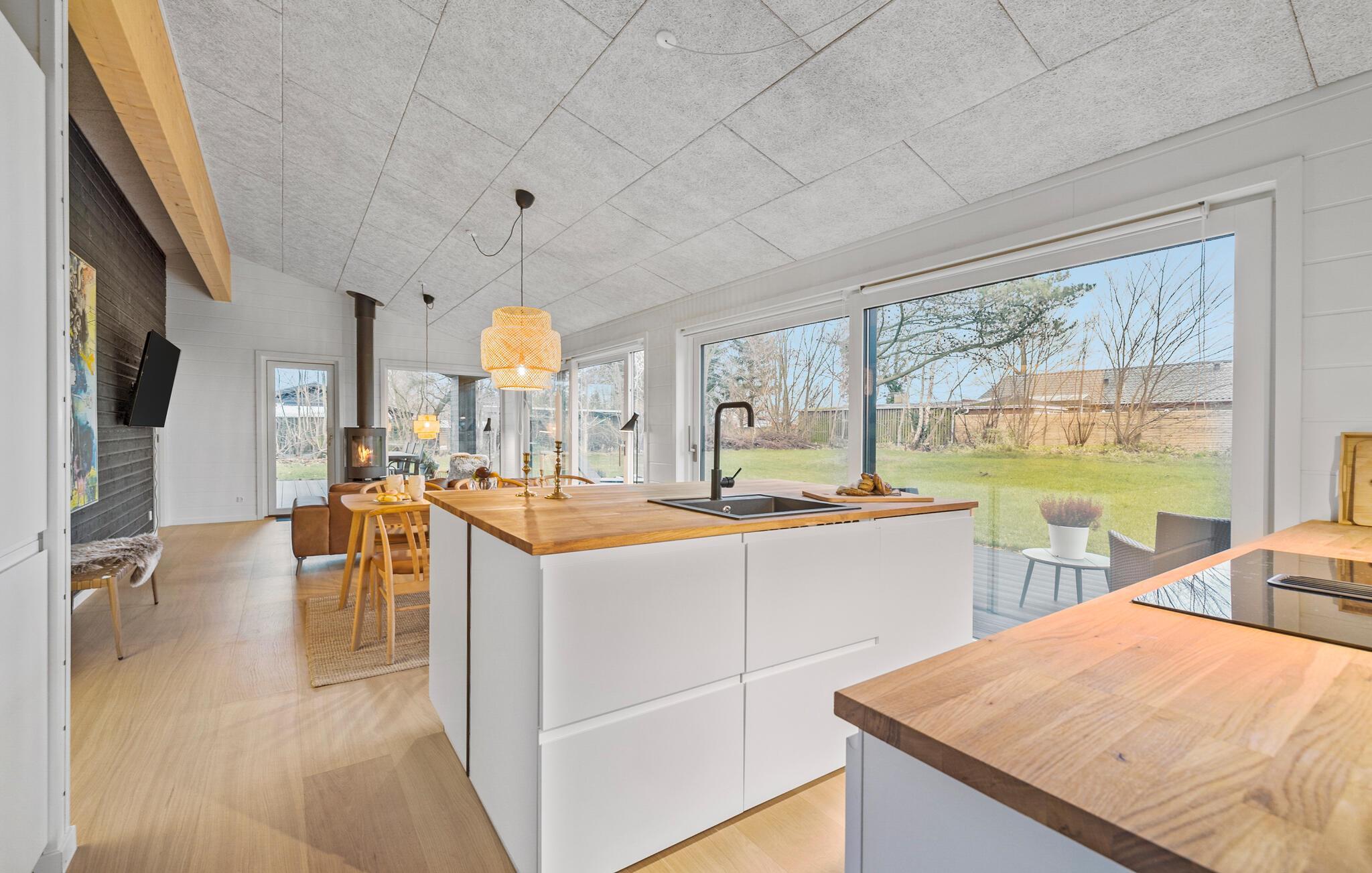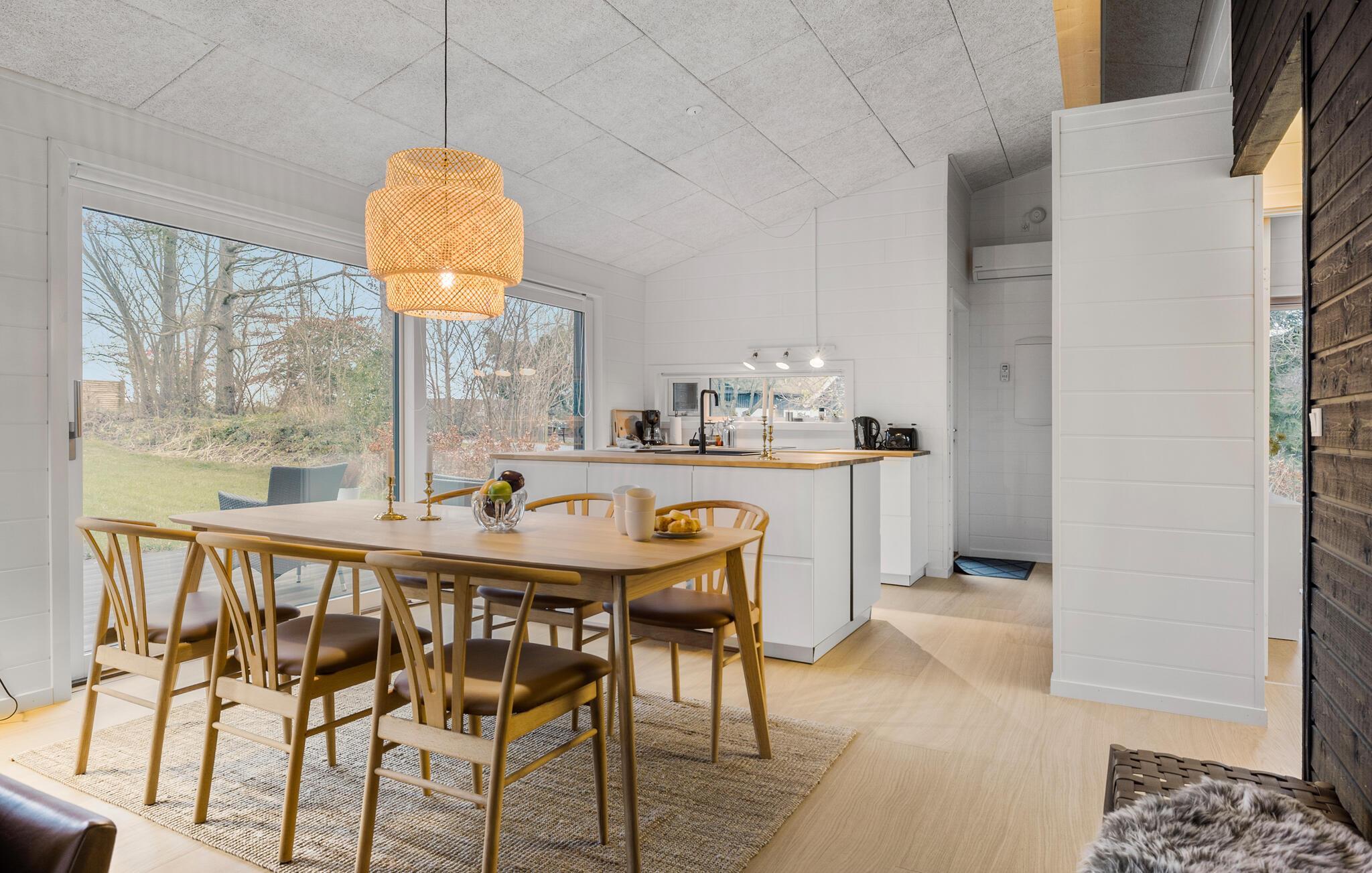 Kom ind og bliv overrasket over den smagfulde indretning i dette moderne sommerhus. Fejr jeres måltider i den åbne spiseplads med udsigt til det grønne og forkæl jer selv med harmoniske aftener ved pejsen i den indbydende stue. Fald ned i de behagelige lænestole og hel jer til en god bog, som I ikke finder tid til i jeres hverdag.