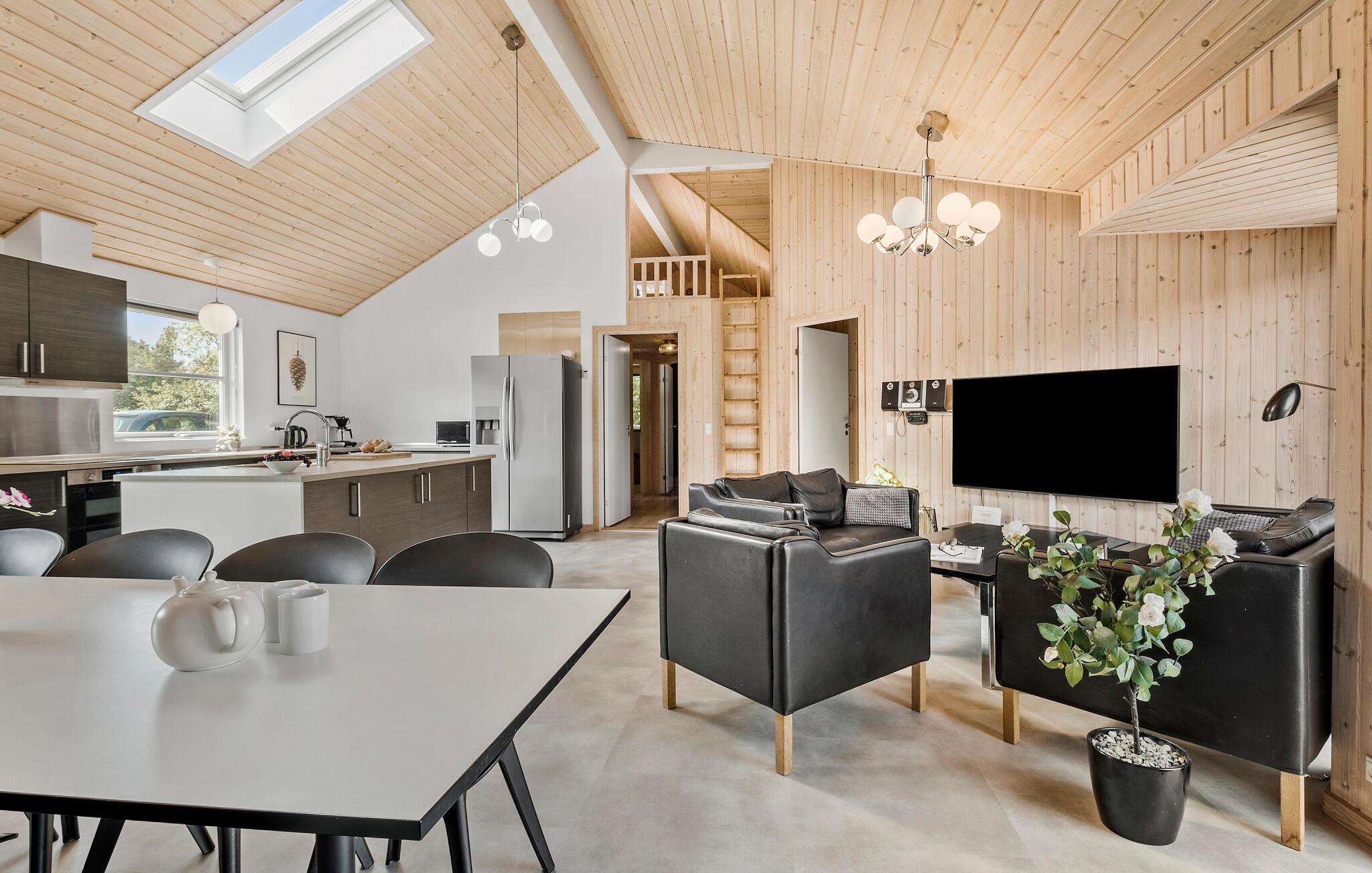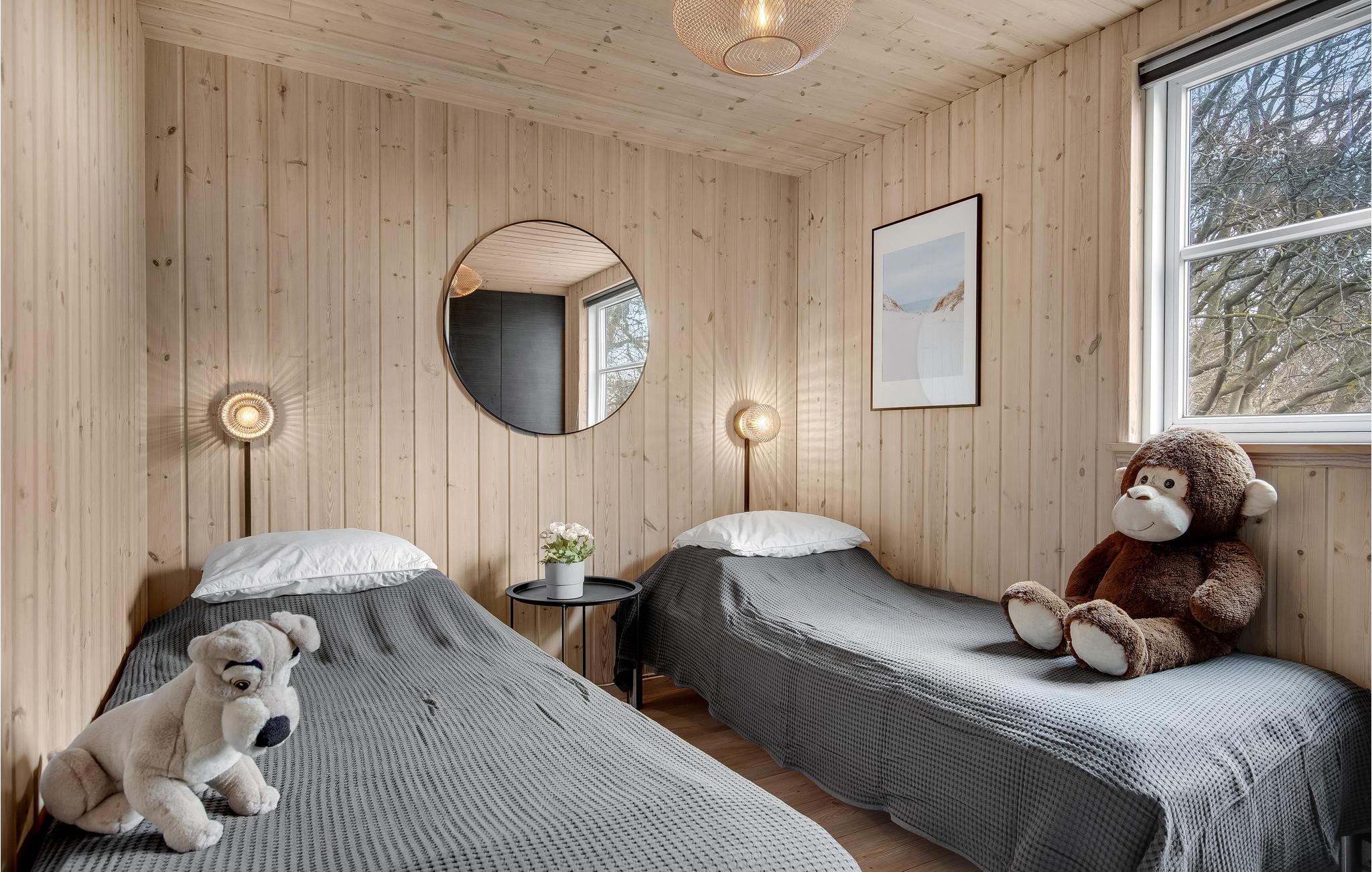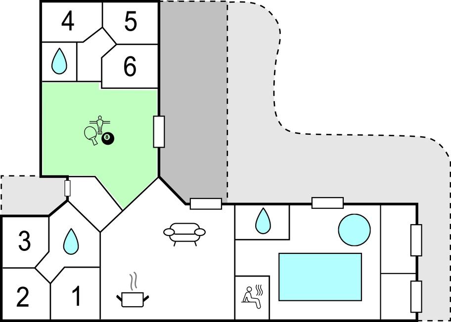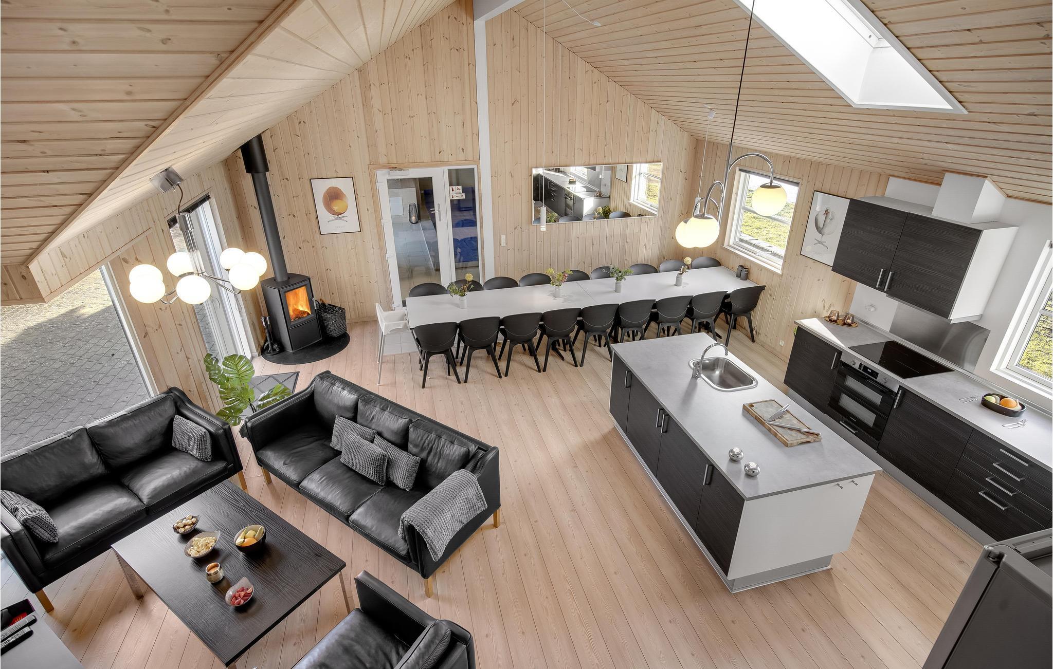 Et fantastisk sommerhus med masser af plads til en eller flere familier. Huset er beliggende ved et af Nordsjællands mest populære ferieområder samt bedste badestrande. I huset er der højt til loftet og et velindrettet åbent køkken/alrum, hvor I kan hygge jer sammen omkring spisebordet med spil eller sidde i den smagfuldt indrettede stue foran brændeovnen med en god bog og en kop kaffe. I aktivitetsrummet kan I dyste mod hinanden i bl.a. billard, bordtennis og bordfodbold, fra den lille sofagruppe kan tilskuerne følge med i kampene. Husets to soveafdelinger ligger på hver side af aktivitetsrummet med henholdsvis tre soverum og et badeværelse i hver afdeling. Desuden findes to hemse med hver to madrasser, på den ene hems står et tv med dvd (det er ikke muligt at se tv-programmer). Poolrummet er rigtig lækkert indrettet med både swimmingpool, spabad og sauna. Grunden er kuperet og på den nederste del er der god mulighed for at spille fodbold og lege. Tisvildeleje er en hyggelig lille by med mange små butikker, caféer og restauranter - hele sommeren summer der af liv i byen og der afholdes mange markeder og festivaler. Der er gode muligheder for gåture i den nærliggende Troldeskov og ved den skønne, brede sandstrand kan børnene fiske efter krabber mens I ligger og solbader. Huset ligger godt for udflugter til omegnens aktiviteter, heriblandt golfbane, veterantog og museer.