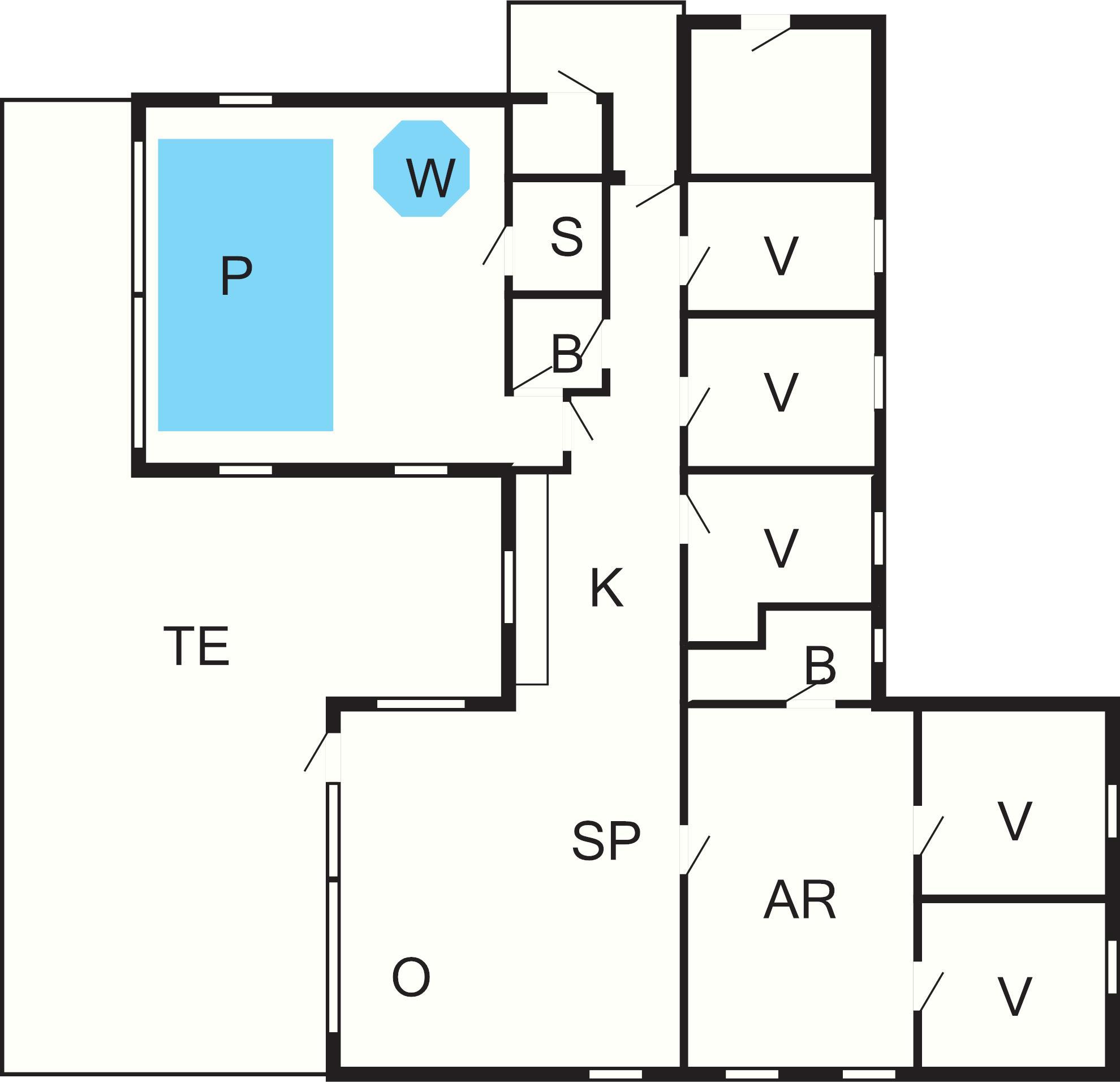 Swimmingpoolen er på 18 m² og med rutschebane til børnene. Der er også svømmetræner (modstrømsanlæg), så hele ugen kan I forbedre konditionen med daglige svømmetag kombineret med ren afslapning i spabadet og saunaen, som befinder sig i poolrummet.