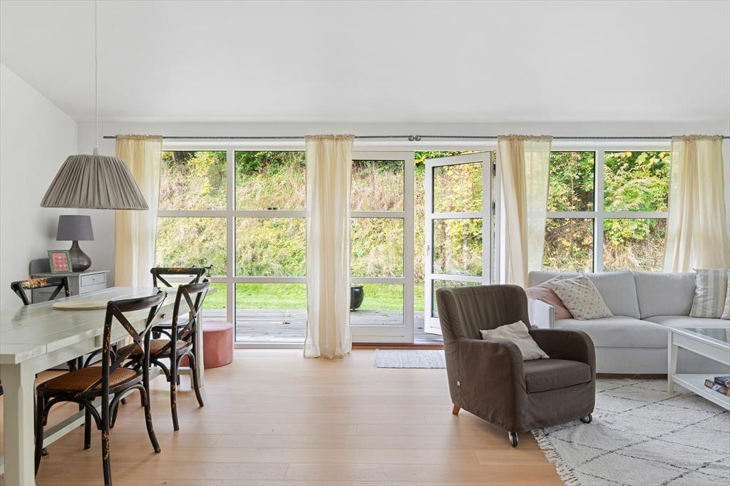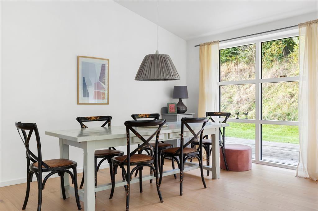Indretningen er enkel og elegant med lyse materialer og små farveaccenter, der giver varme og personlighed. Stuen er indrettet med komfortable møbler, som indbyder til afslapning efter en dag ved vandet, og de tre soveværelser giver god plads til seks personer. Overalt mærkes en følelse af kvalitet og velvære, og den lyse atmosfære gør det let at finde ro – uanset årstiden.
