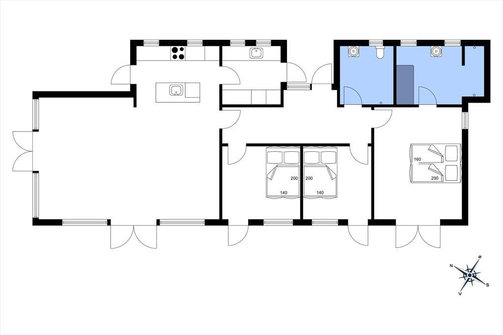 Indenfor mødes du af et moderne og gennemtænkt sommerhus, hvor der er lagt vægt på lys, luft og rummelighed. Huset er bygget i rene linjer med store vinduespartier, der lukker dagslyset ind og skaber en behagelig sammenhæng mellem inde- og udeliv. Det åbne køkken ligger i direkte forbindelse med stuen, så ferielivet kan leves i fællesskab – her kan der kokkereres, mens samtalerne flyder og børnene leger i sofaen.
