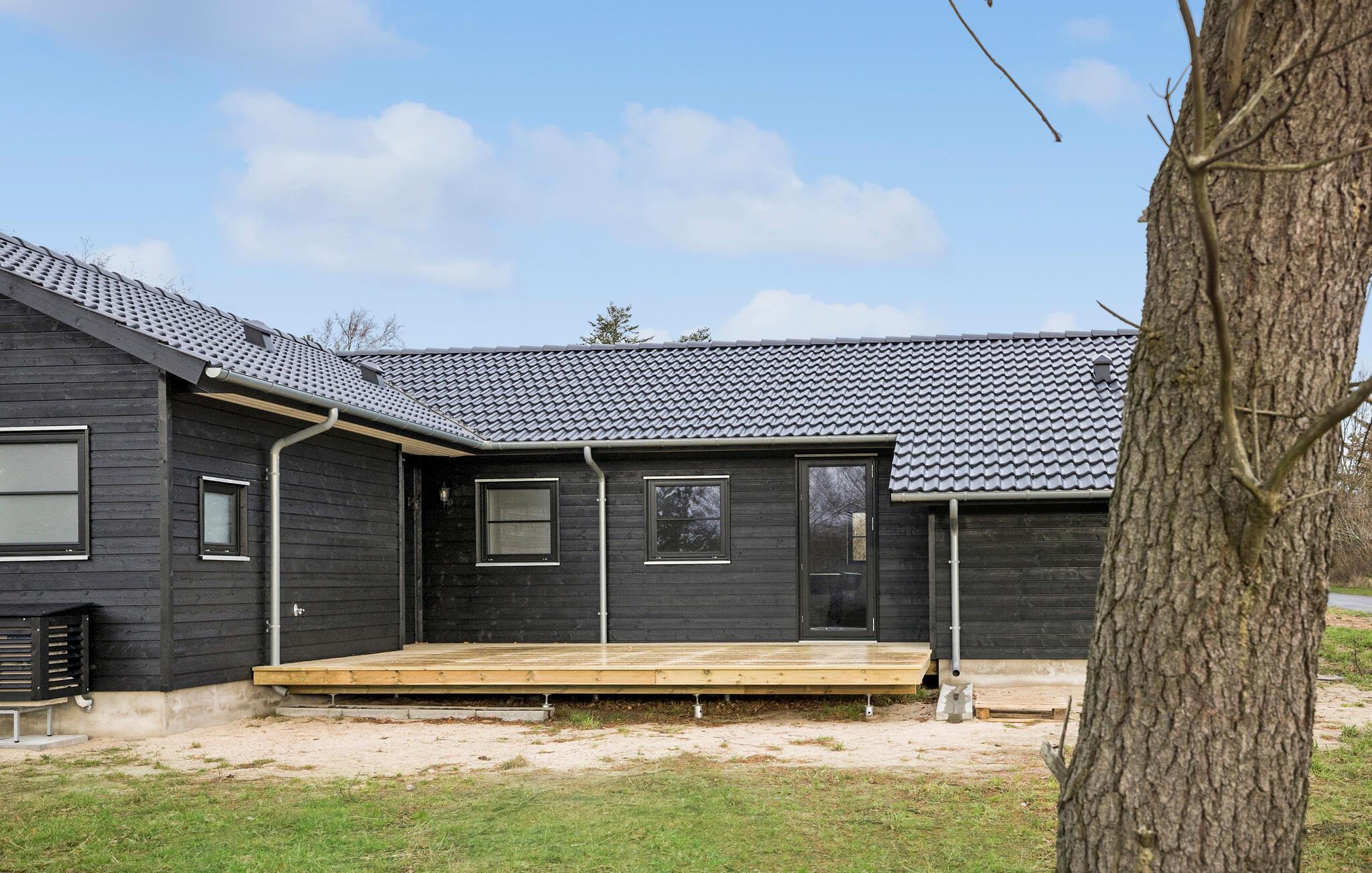Moderne og lyst træhus nær Tisvildeleje Strand med store terrasser og underholdning for hele familien.