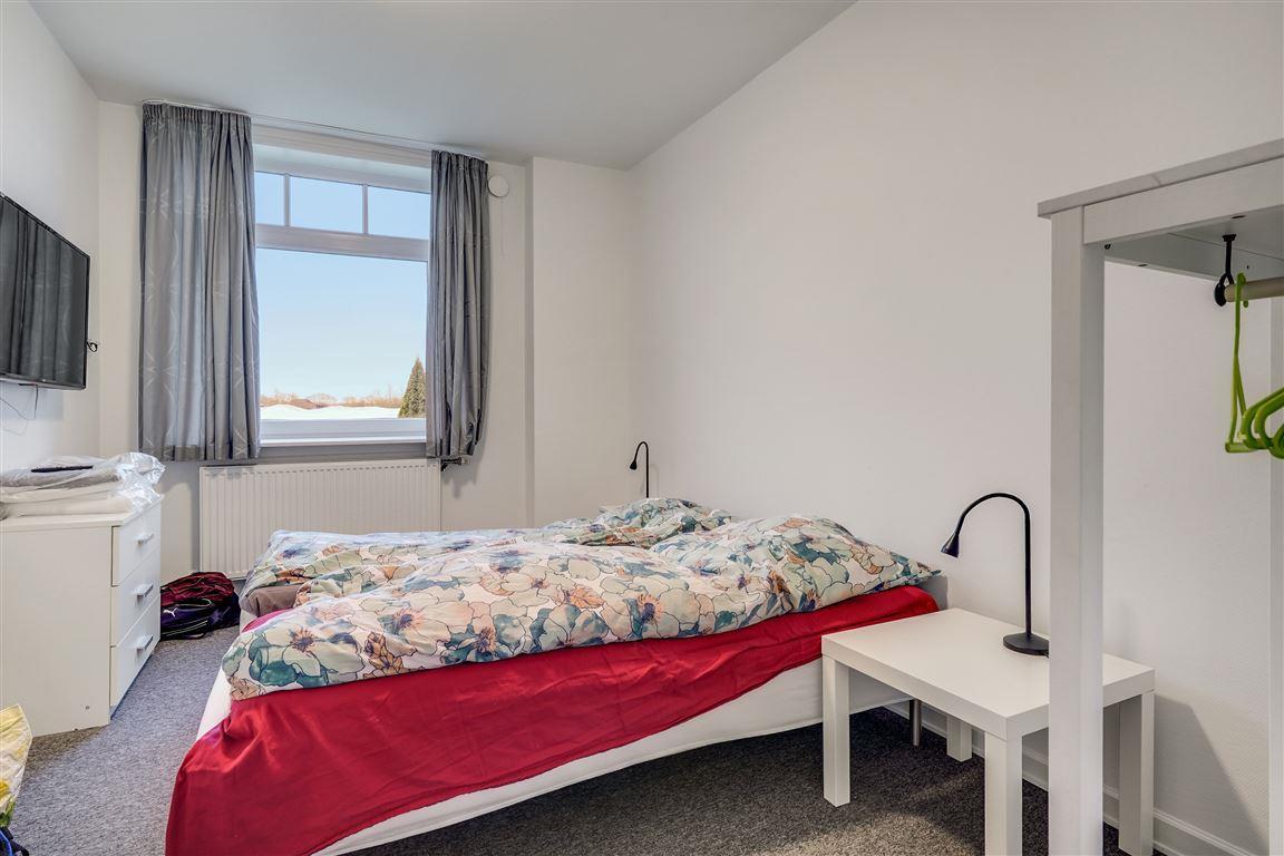 2 Værelses lejlighed med opholdstue, soveværelse med 2 senge og tv.