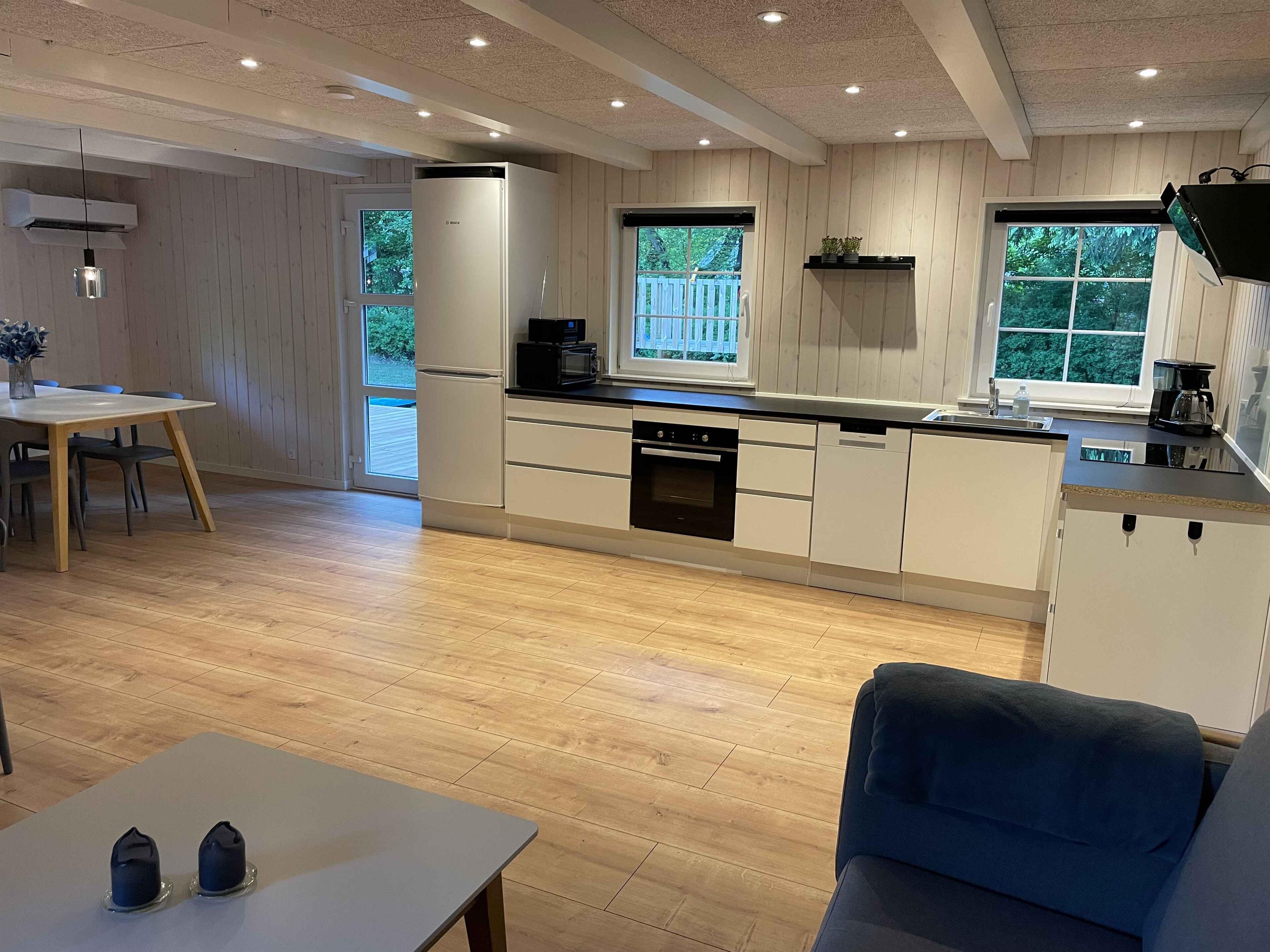 Hyggeligt, nyrenoveret sommerhus i Arrild Ferieby med stor terrasse, trampolin og børnevenlige faciliteter.