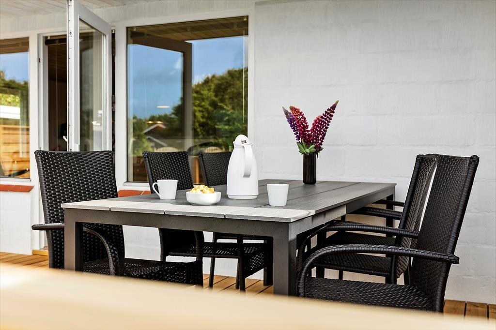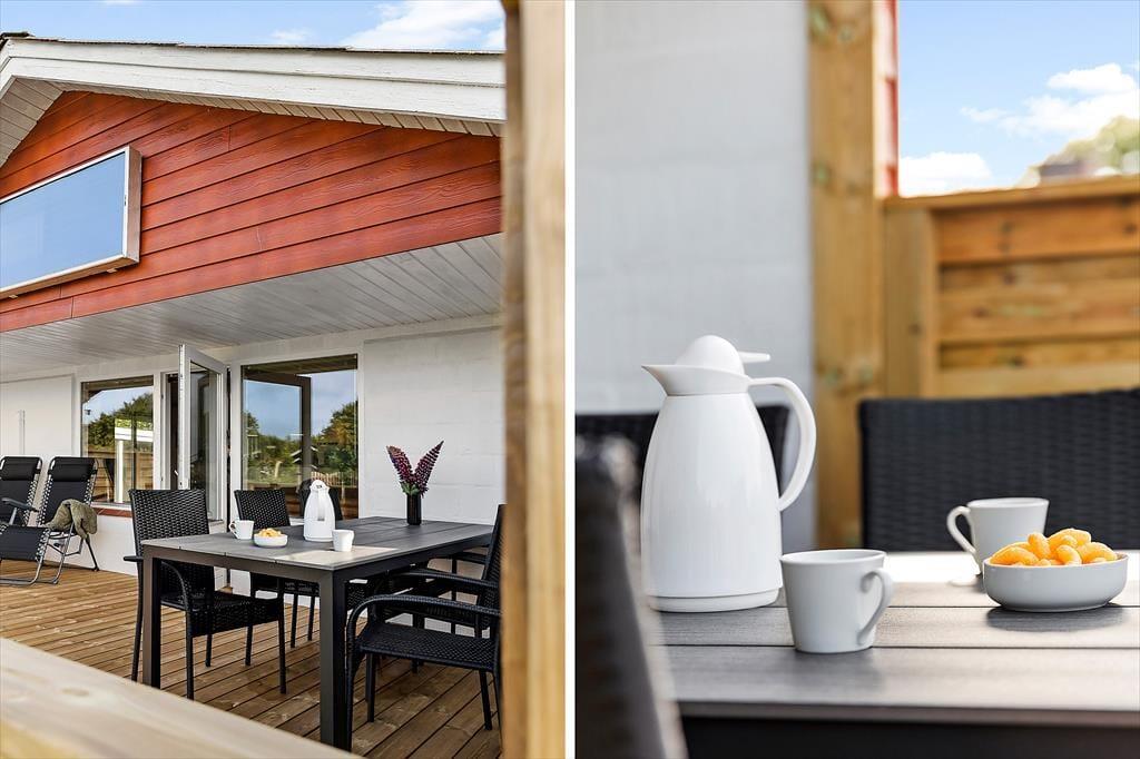 Udendørslivet leves i stor stil på den solrige terrasse og i den rummelige have, der omkranser huset. Her er masser af plads til både leg og afslapning – om det så er boldspil på græsplænen, en lur i solen eller grillmiddag under åben himmel. Terrassen er et oplagt sted at starte dagen med morgenkaffen og lyden af fuglekvidder i baggrunden, og når solen står højt, er det rart at kunne søge skygge under parasollen med en god bog. De mindste gæster vil elske at tumle rundt i haven, mens de voksne nyder udsigten til bølgende grønne omgivelser og feriestemning i fuldt flor.