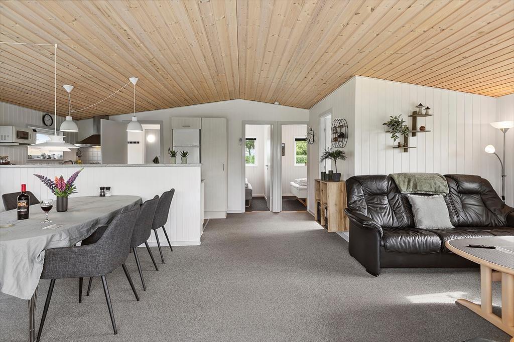 Toftum Bjerge er kendt for sine imponerende skrænter og flotte udsigter over Limfjorden – og stranden, som kun ligger 900 meter fra sommerhuset, inviterer til både badeture og afslappede gåture i vandkanten. Blot en kort spadseretur fra huset finder I også Toftum Bjerge Camping, hvor børnene kan boltre sig på legepladsen, og hele familien kan nyde is fra campingpladsens ishus eller tage et slag minigolf. Her er også mulighed for at benytte campingpladsens faciliteter og deltage i små aktiviteter i højsæsonen. I området finder I flere fine vandreruter, og det kuperede landskab byder på udsigtspunkter, der gør hver tur til noget særligt. Hvis I har lyst til en udflugt, er både Lemvig og Struer inden for kort køreafstand – to hyggelige byer med lokale butikker, caféer og havneområder, hvor I kan slentre og lade feriestemningen folde sig ud.