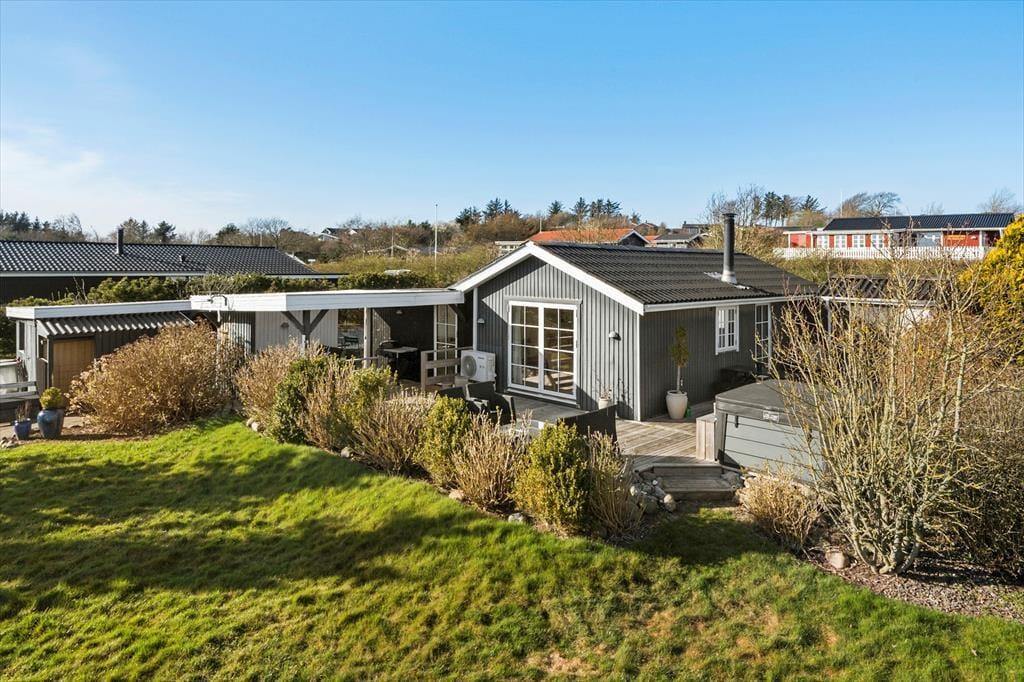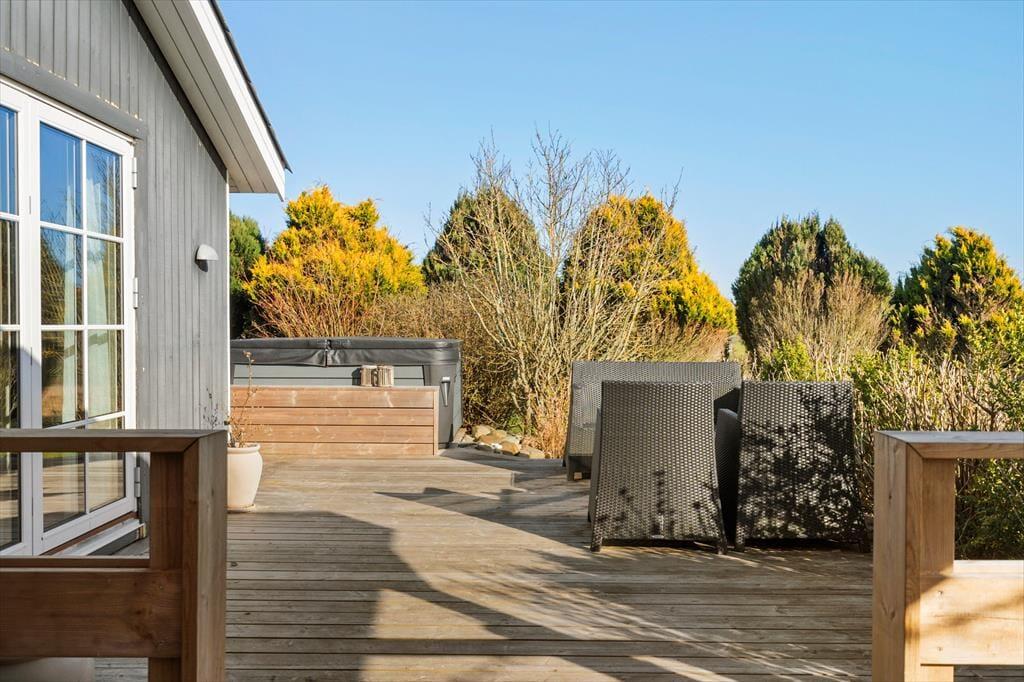 Når solen står højt på himlen, er det tid til at tage udendørs og nyde livet i haven. Den store terrasse og den dejlige grønne grund giver masser af plads til både afslapning og leg. Du kan starte dagen med en kop kaffe i det fri og senere tage et vildmarksbad, mens du nyder den friske luft og lyden af naturen omkring dig. Efter en dag på stranden kan du slappe af på terrassen, måske med en kold forfriskning i hånden, mens solen går ned over området. Der er også rig mulighed for at nyde en lækker middag udendørs, grillet til perfektion og serveret under åben himmel. Uanset om du er til afslapning i solen eller hyggeligt samvær under åben himmel, tilbyder sommerhuset de perfekte rammer.