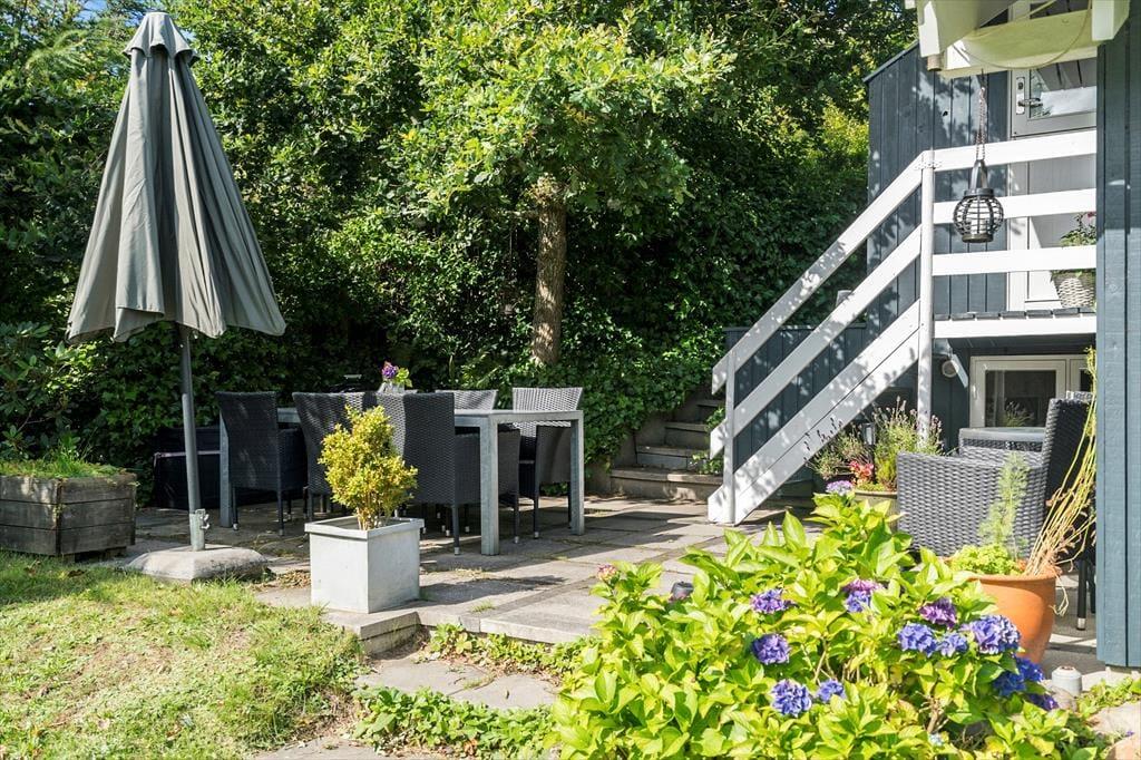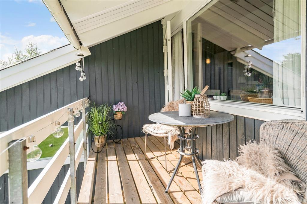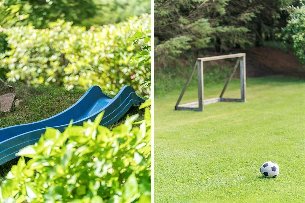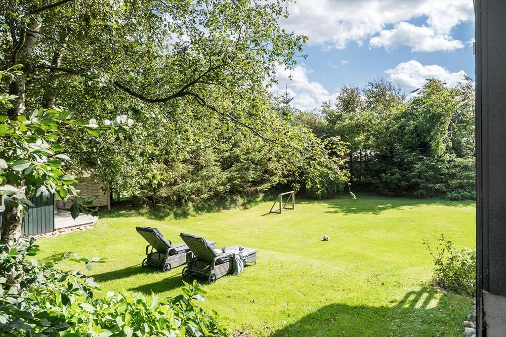 Den lukkede have er stor og skærmet af tæt randbeplantning, så I får en flot og ugeneret ramme om det udendørs ferieliv. Grunden skråner – nogle steder dog mindre end andre, så det er ingen hindring for at spille bold og lege på græsplænen. Der er rutsjebane og gynger til børnene, og hele familien kan benytte sig af den udendørs bruser, hvis I trænger til at blive frisket op i sommervarmen. Nær huset har I flere terrasser at vælge imellem foruden en solrig altan, så hvis I mest af alt drømmer om bruge ferien i roligt tempo, kan det sagtens foregå her på den grønne grund.