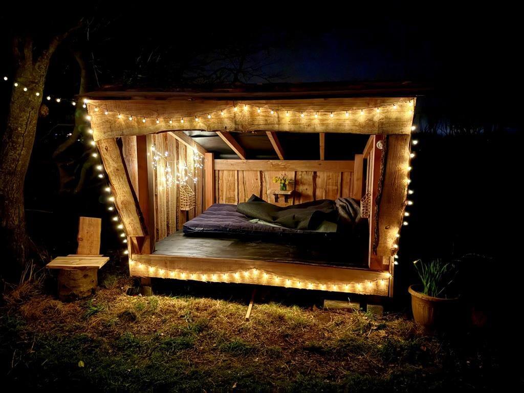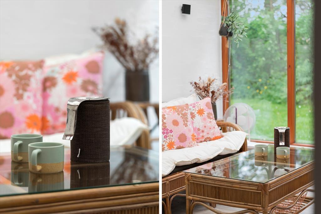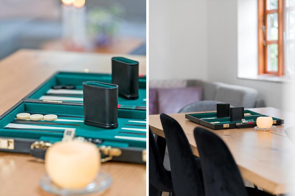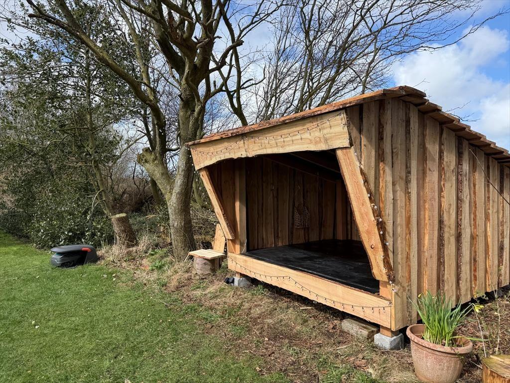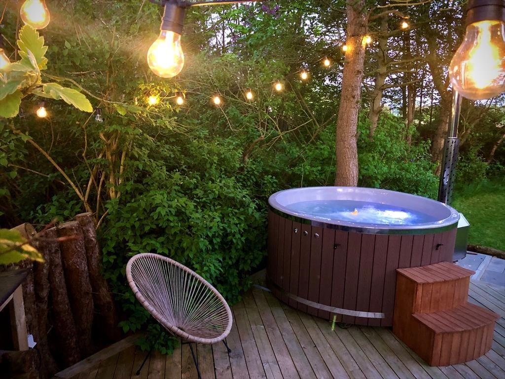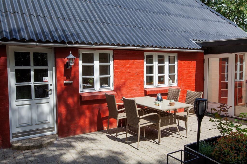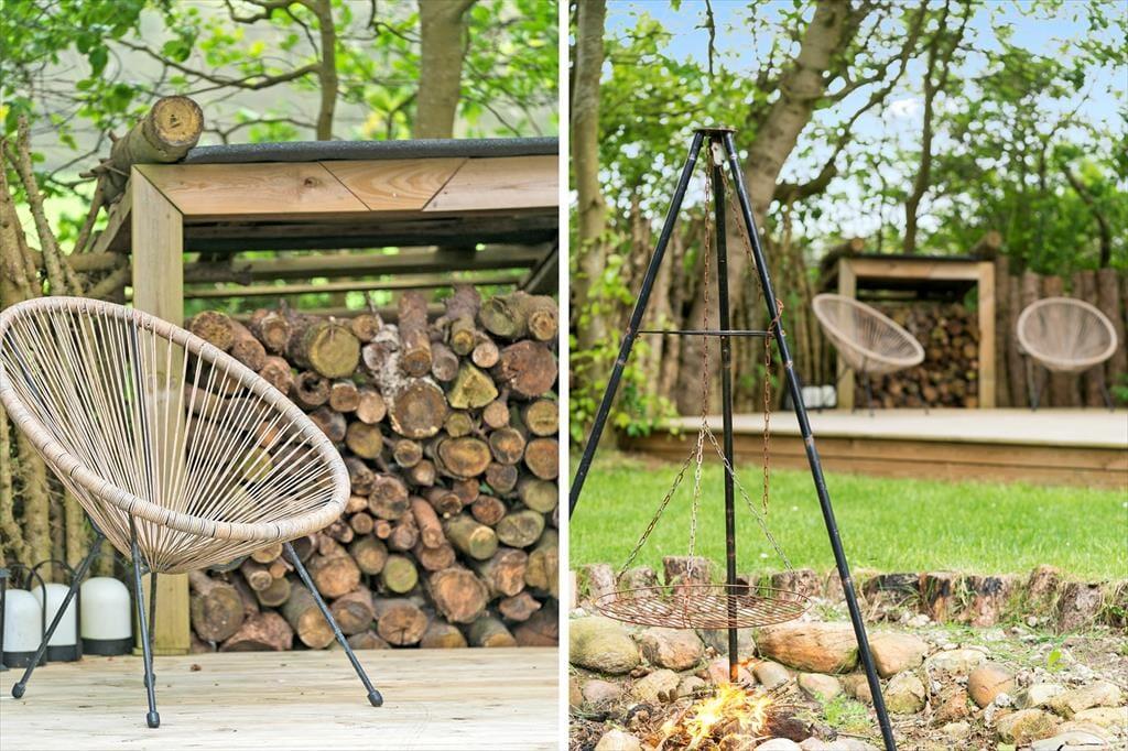 Sommerhusets udestue er et skønt opholdssted, hvis du vil have udsigt til den grønne have – men når vejret er lunt og sommerligt, vil du måske hellere sidde helt ude i det fri. Her kan du lytte til fuglesang og vindens susen i granerne, mens du slapper fuldstændig af i solen på terrassen. På græsplænen er der god plads til leg og boldspil, og med bålsted og trampolin er der flere hyggelige ting at tage sig til i de grønne omgivelser. Og takket være vildmarksbadet er det muligt at fylde eftermiddagen eller aftenen med varme bade og fuldendt livsnyderi, når dagens udflugter er ovre.
