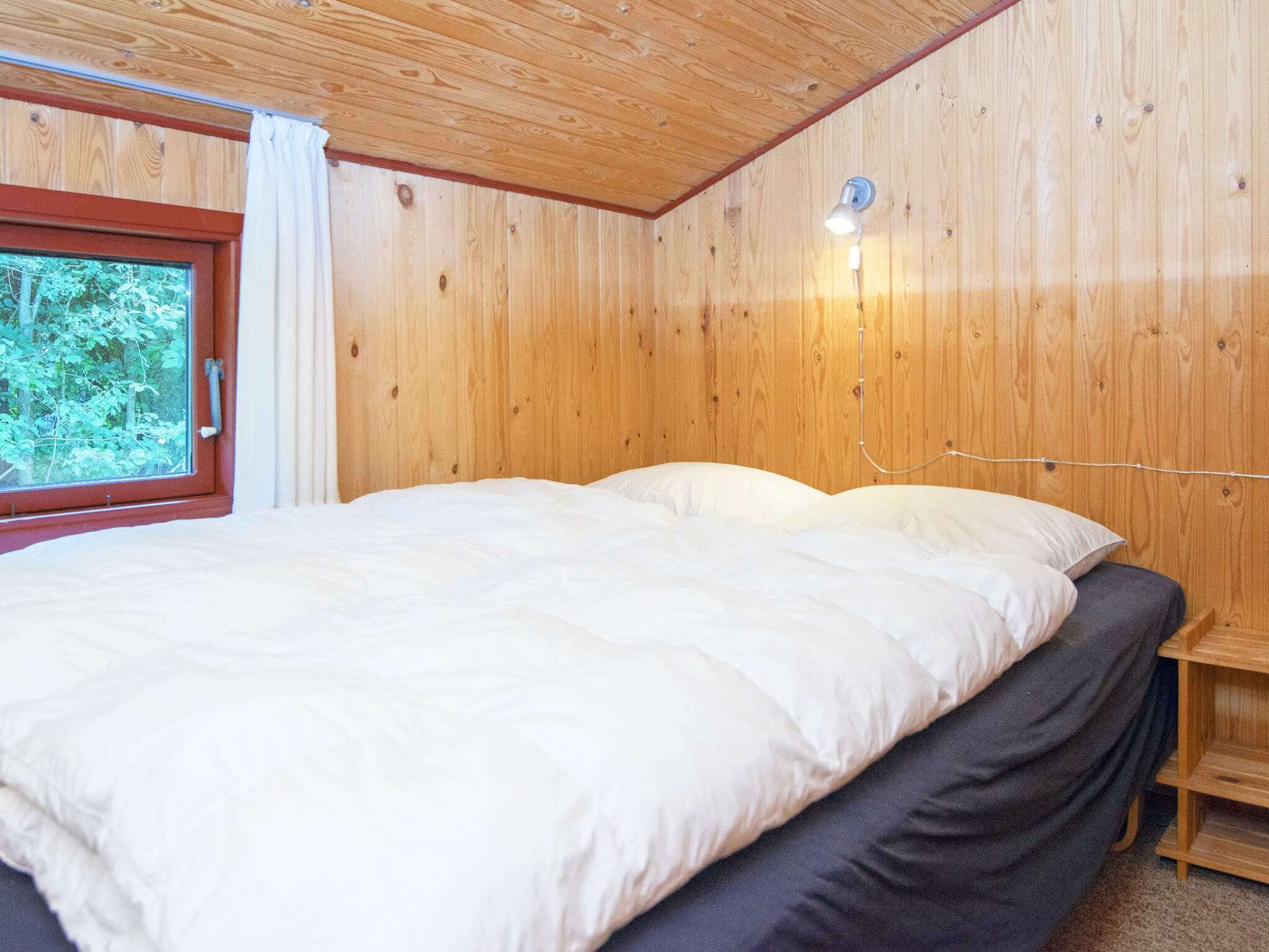 Sommerhus med tæpper på gulvene. Huset er beliggende på ugenert, lukket grund med græsplæne ca. 300 m fra vandet. Der er en stor, delvist overdækket terrasse mod syd samt terrasse mod øst. Legeplads på campingpladsen må benyttes.