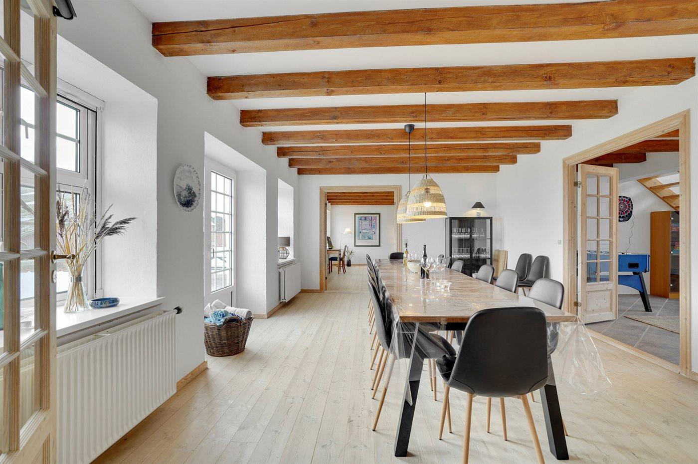 Denne tidligere landejendom egner sig til 18 personer samt 1 barn op til 3 år. 1 af sovepladserne er kun egnet til større børn (4-11 år). Ferieboligen er på 260 m², er i 2 plan, og er bygget i 1680. I 2021 gennemgik ferieboligen en delvis renovering. Det er ikke tilladt at medbringe husdyr. Der er gulvvarme i alle klinkegulve. Ferieboligen har vaskemaskine. Tørretumbler. Frysekapacitet på 60 liter. Der er desuden brændeovn. Til de små er der 2 stk. barnestole. Puslebord.