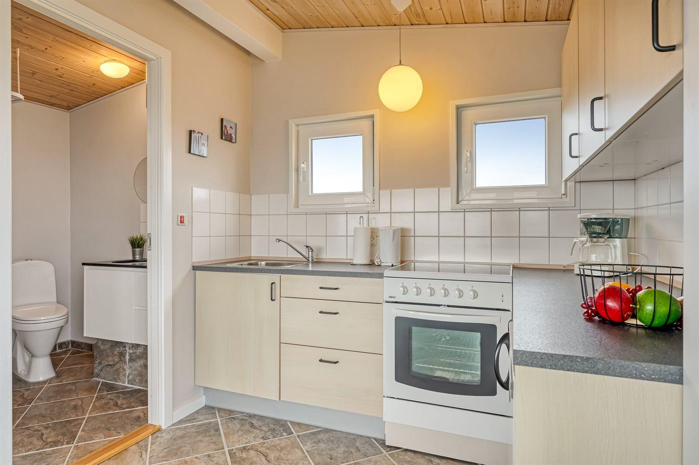 Køkkenet er udstyret med 1 køleskab. Der er 4 keramiske kogeplader, varmluftovn.