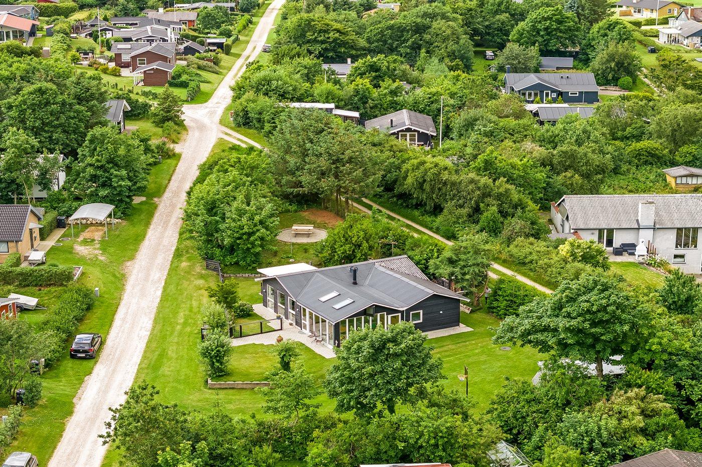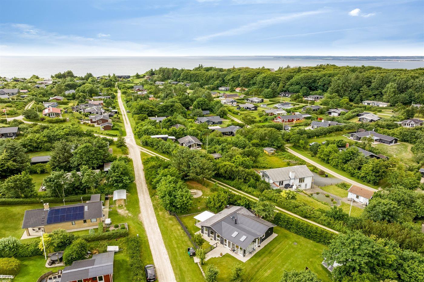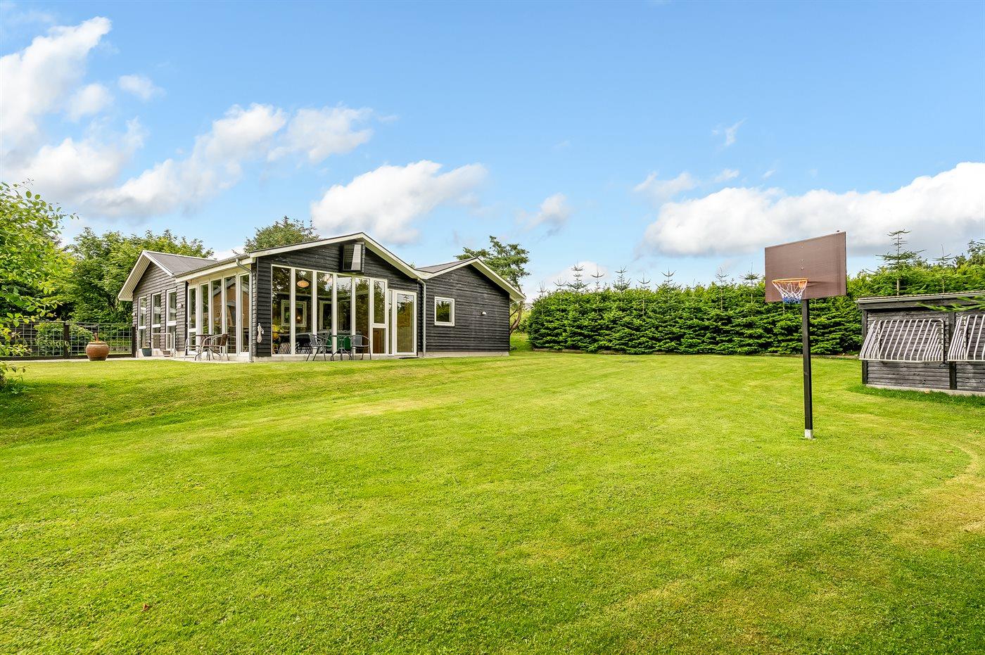 Ferieboligen er beliggende på en 1300 m² stor naturgrund. Der er 400 m til fjorden. Nærmeste forretning er beliggende i en afstand af 400 m. Der er en golfbane i en afstand af 400 m. Desuden er der 16 m² overdækket terrasse. Ligeledes er der adgang til udestue. Bålsted. Grill til rådighed. Parkering ved ferieboligen.