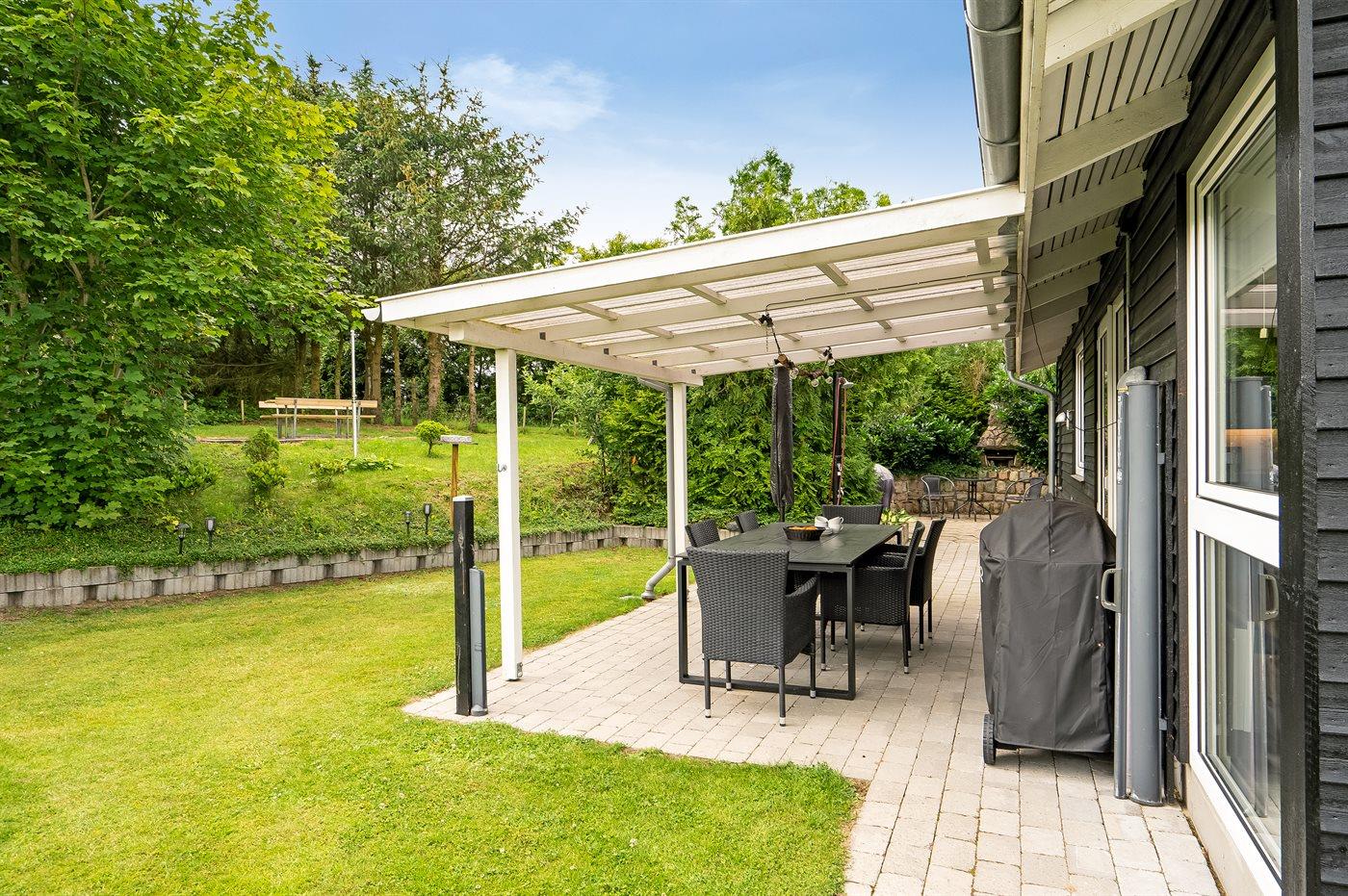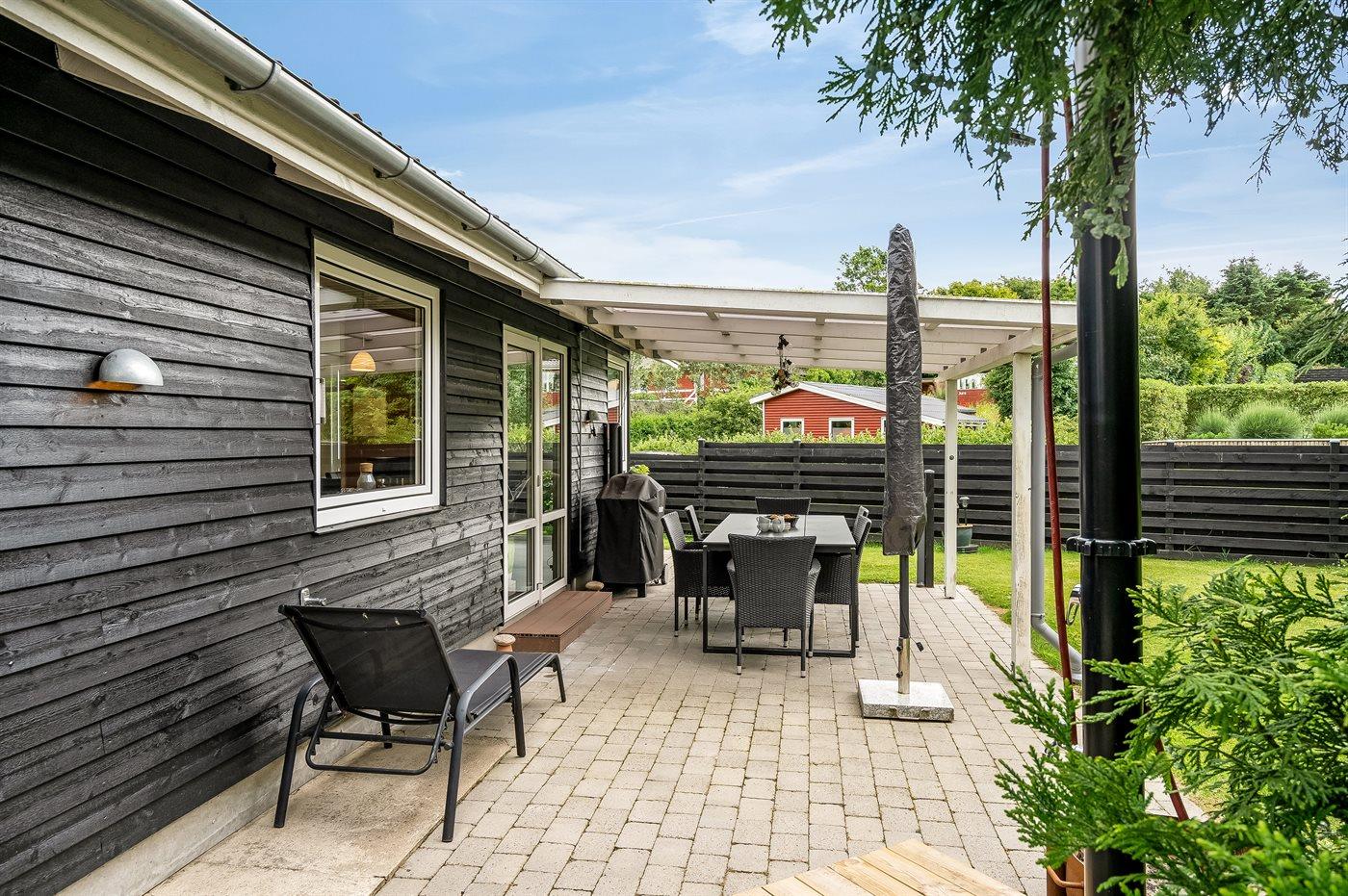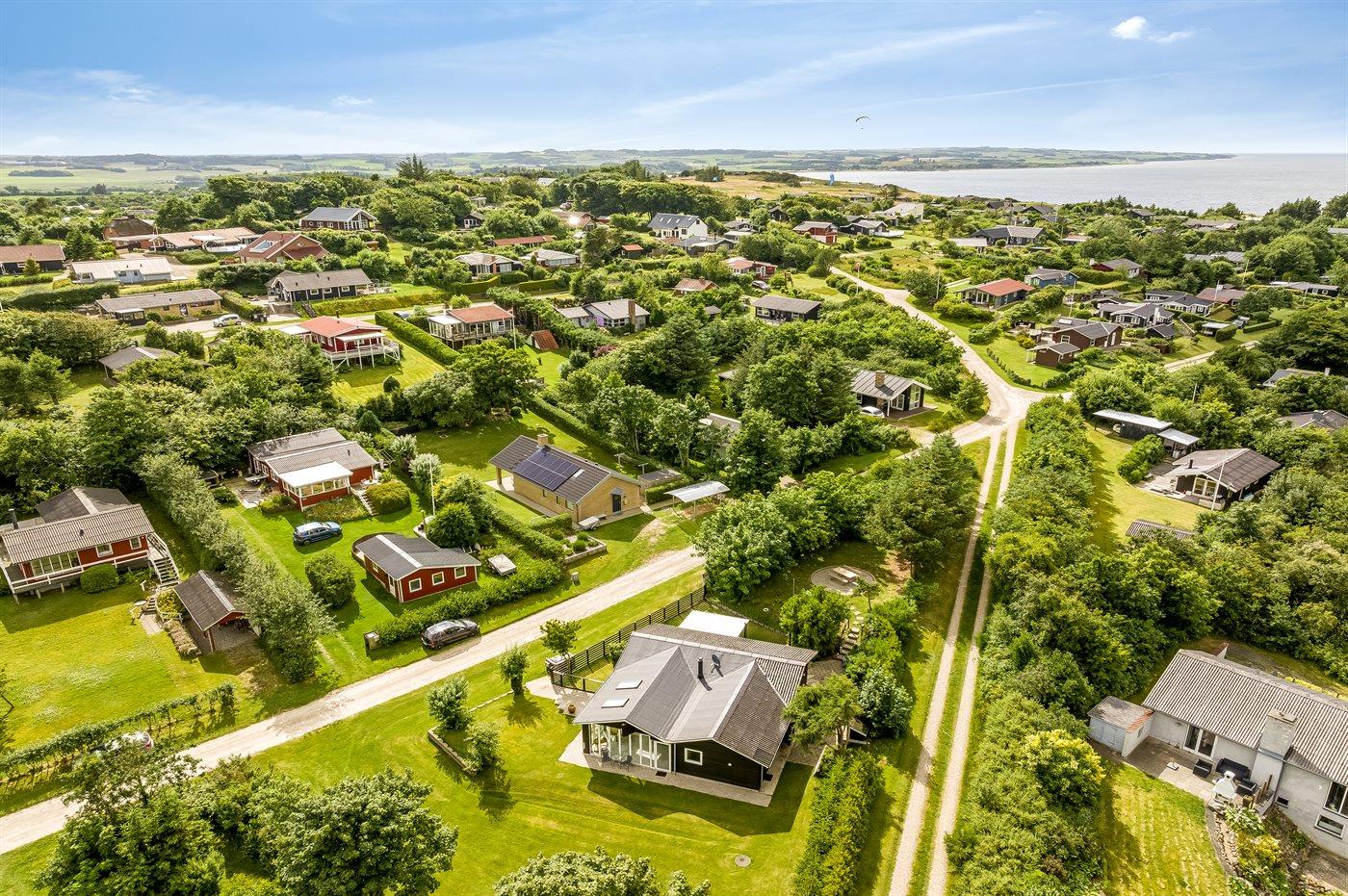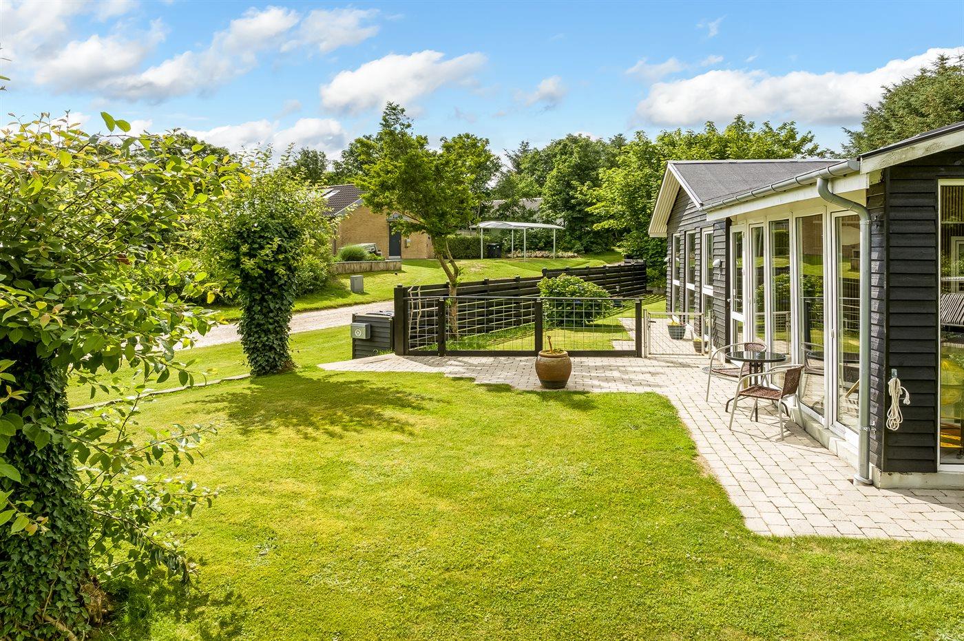 Ferieboligen er beliggende på en 1300 m² stor naturgrund. Der er 400 m til fjorden. Nærmeste forretning er beliggende i en afstand af 400 m. Der er en golfbane i en afstand af 400 m. Desuden er der 16 m² overdækket terrasse. Ligeledes er der adgang til udestue. Bålsted. Grill til rådighed. Parkering ved ferieboligen.