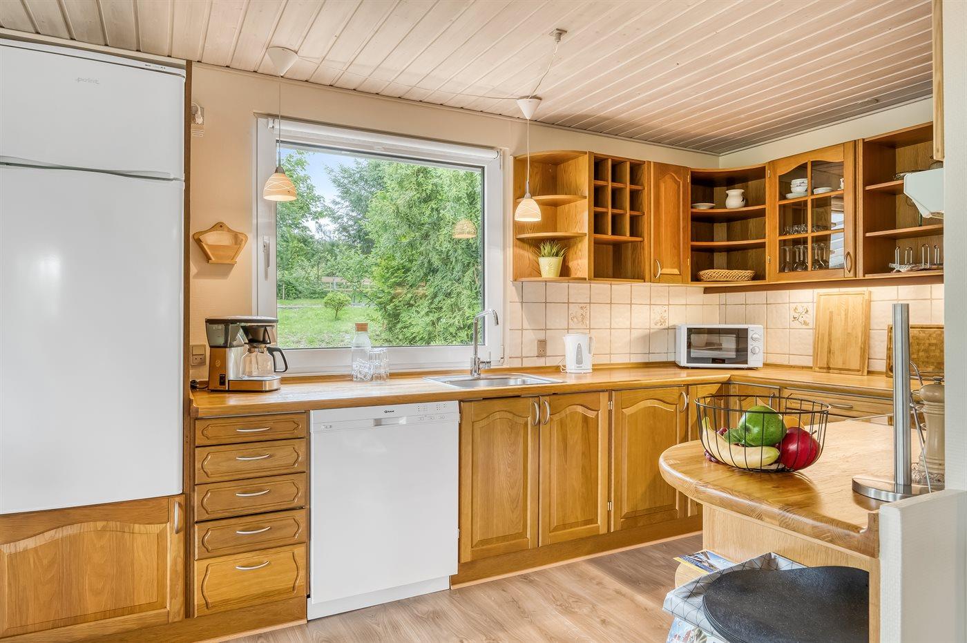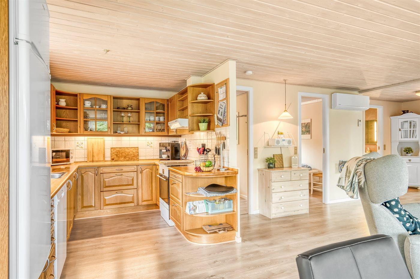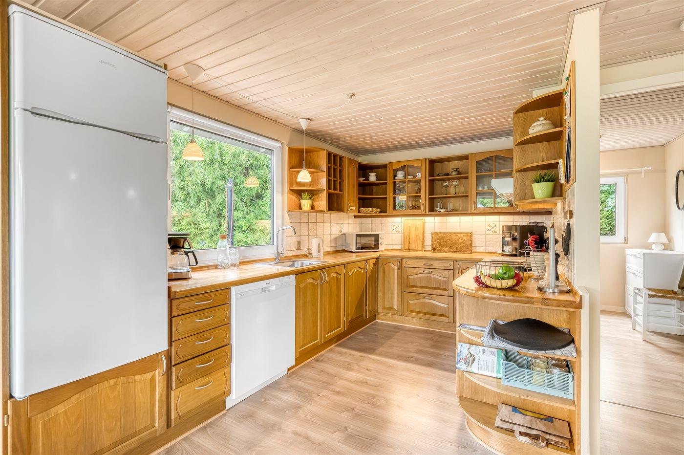 Køkkenet er udstyret med 1 køleskab. Der er 4 keramiske kogeplader, varmluftovn, mikrobølgeovn samt opvaskemaskine.