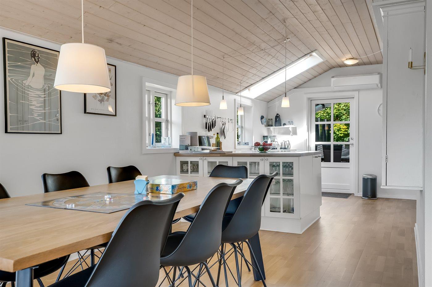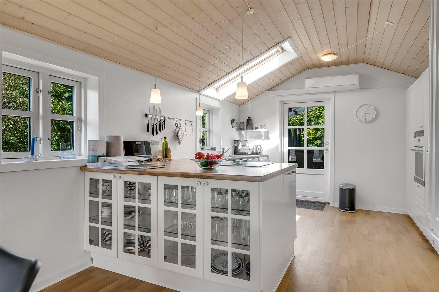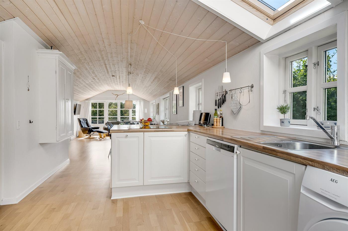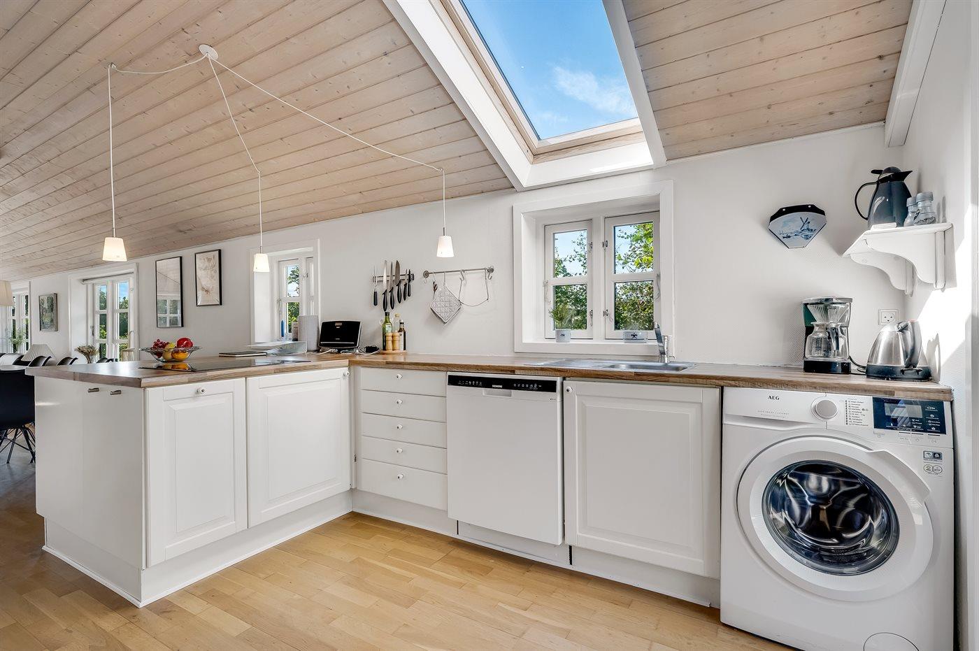 Køkkenet er udstyret med 1 køleskab. Der er 4 induktionskogeplader, varmluftovn samt opvaskemaskine.