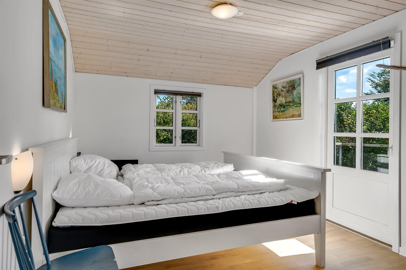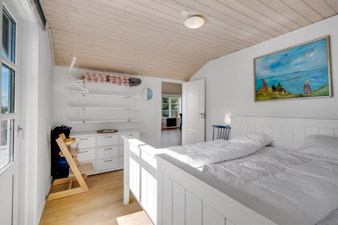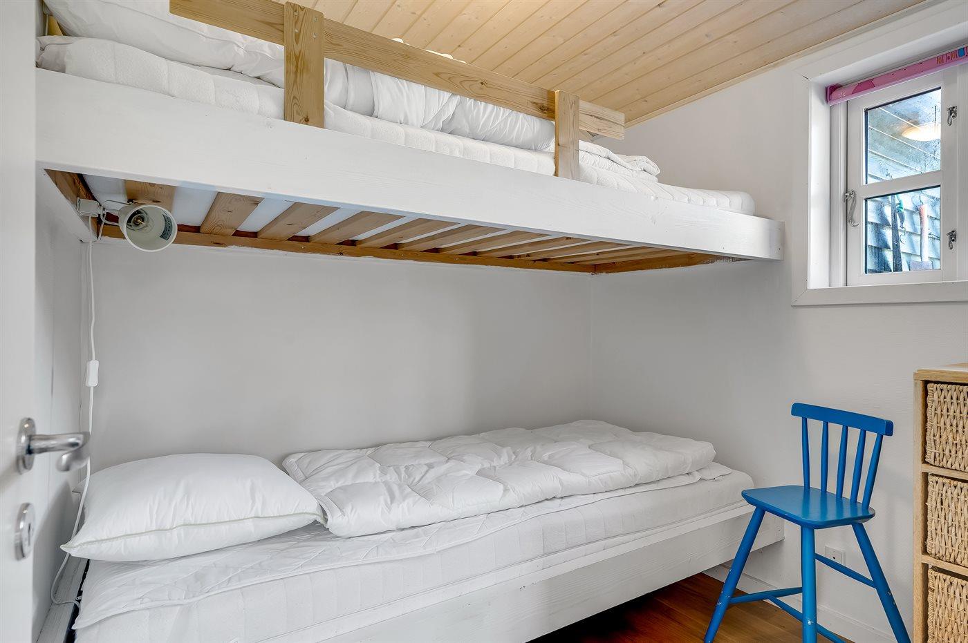Der er i alt 3 soveværelser. Sovepladserne fordeler sig på: 2 sovepladser i dobbeltseng. 2 sovepladser i enkeltsenge. 2 sovepladser i køjeseng. Derudover er der 1 stk. barneseng.