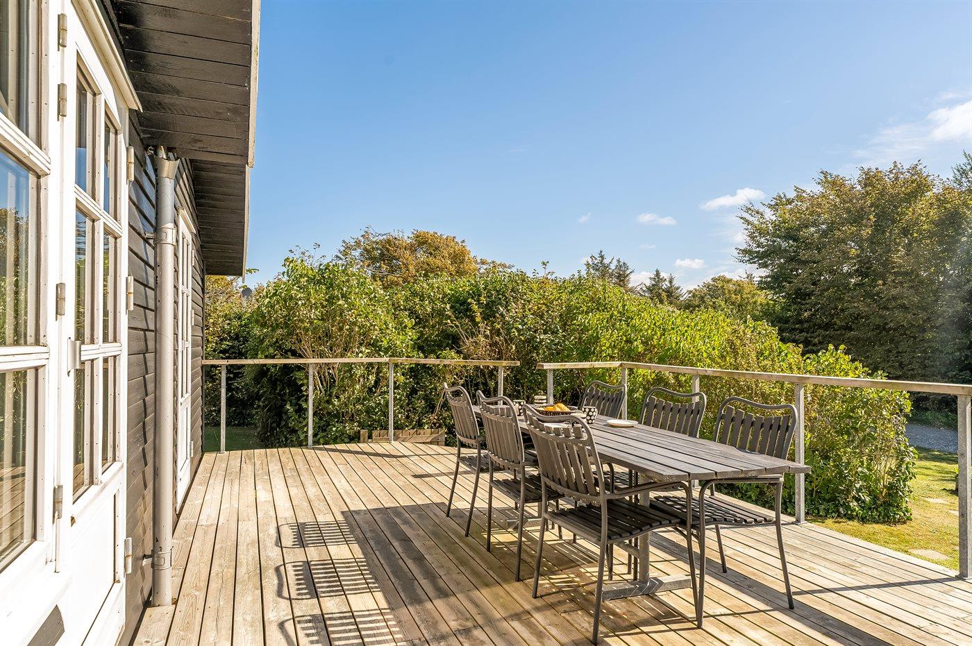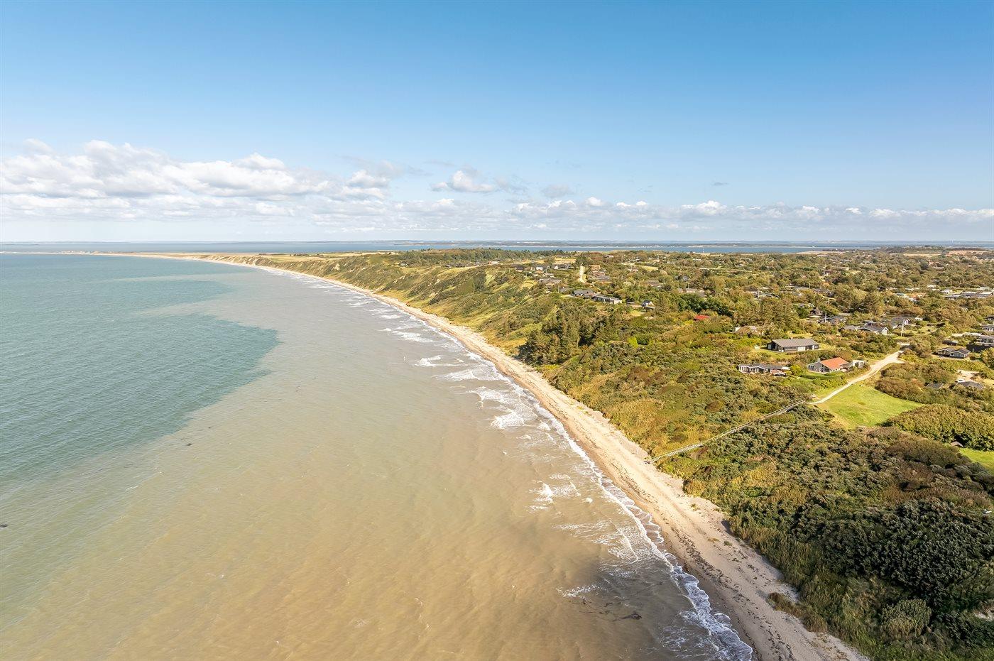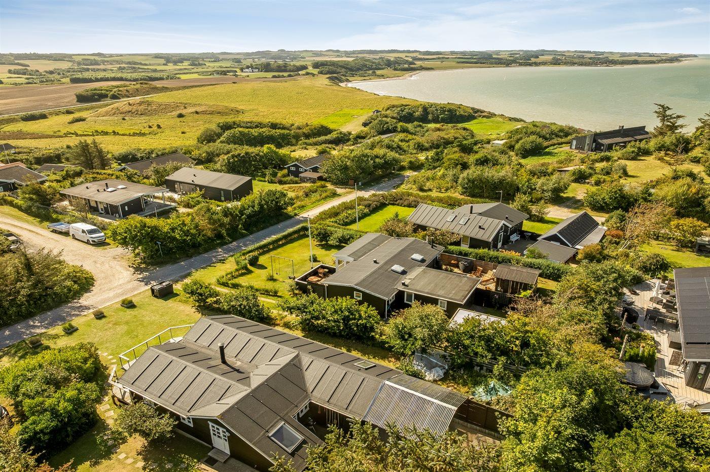 Ferieboligen er beliggende på en 702 m² stor naturgrund. Der er 210 m til fjorden. Nærmeste forretning er beliggende i en afstand af 3000 m. Der er en golfbane i en afstand af 2000 m. Til ferieboligen hører åbent terrasseareal. Desuden er der overdækket terrasse. Sandkasse. Parkering ved ferieboligen.