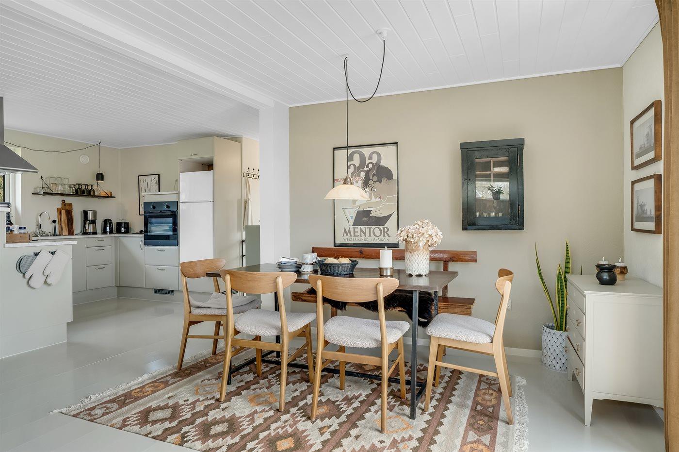 Køkkenet er udstyret med 1 køleskab. Frysekapacitet på 40 liter. Der er 4 induktionskogeplader, varmluftovn samt opvaskemaskine.