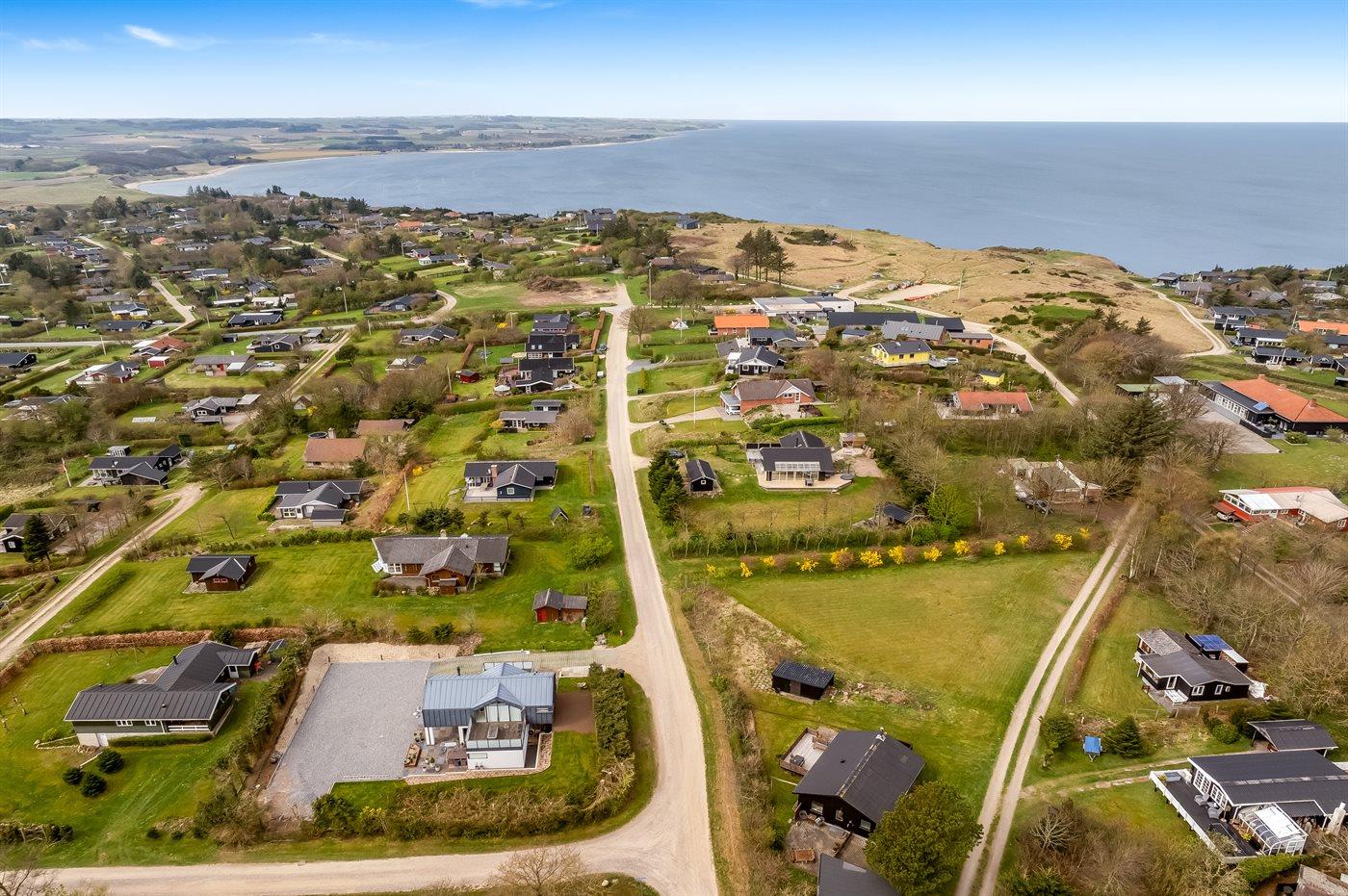 Ferieboligen er beliggende på en 1059 m² stor naturgrund. Der er 300 m til fjorden. Nærmeste forretning er beliggende i en afstand af 1500 m. Der er en golfbane i en afstand af 1500 m. Til ferieboligen hører åbent terrasseareal. Grill til rådighed. Der er carport til rådighed. Der er installeret stik til opladning af elbil. CEE stik. Med 11 kW ladeeffekt. Parkering ved ferieboligen.